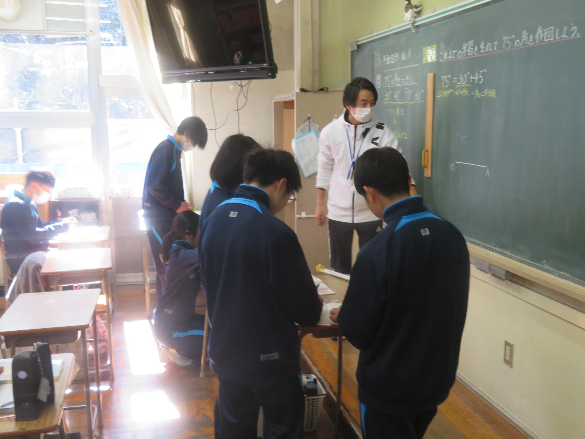 仲間と数学の授業で考え合う1年生