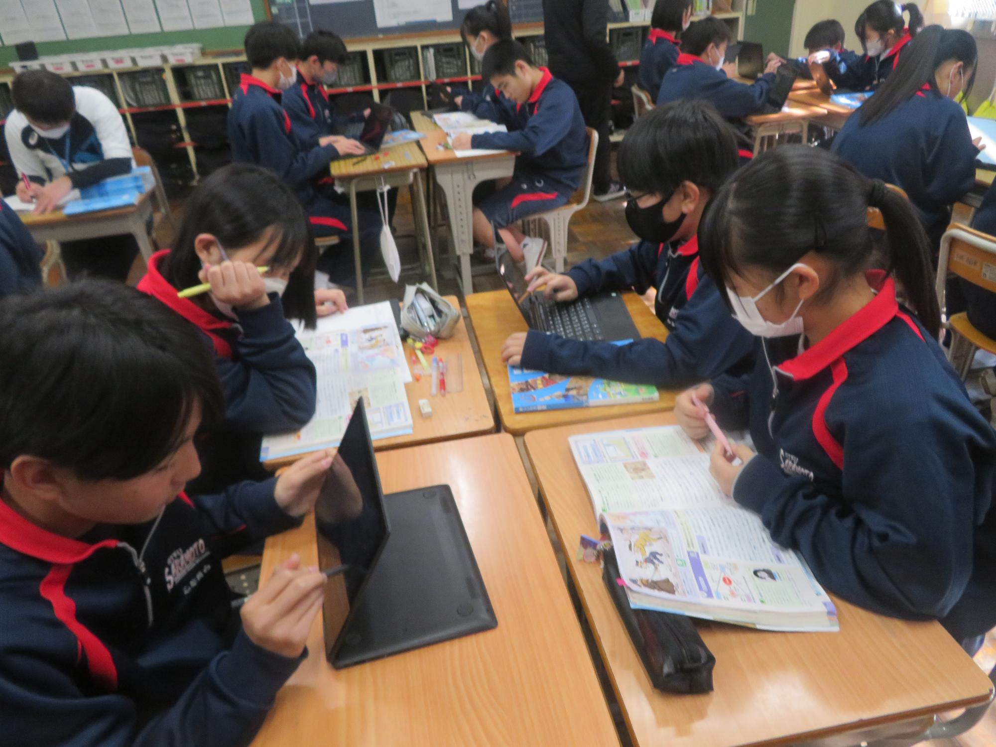 授業で仲間と考え合う2年生