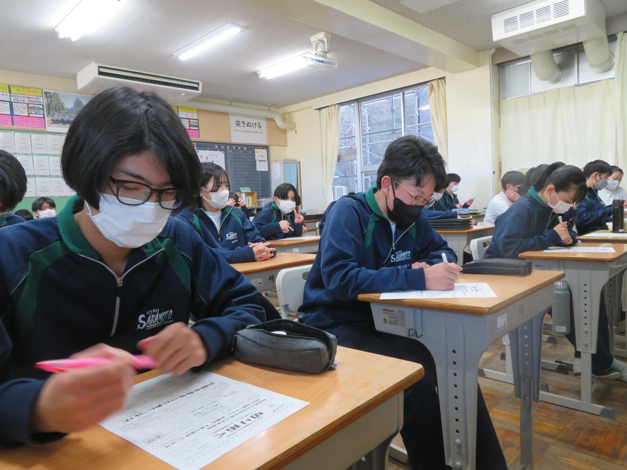 入試に向けての学年通信を蛍光ペンでチェック