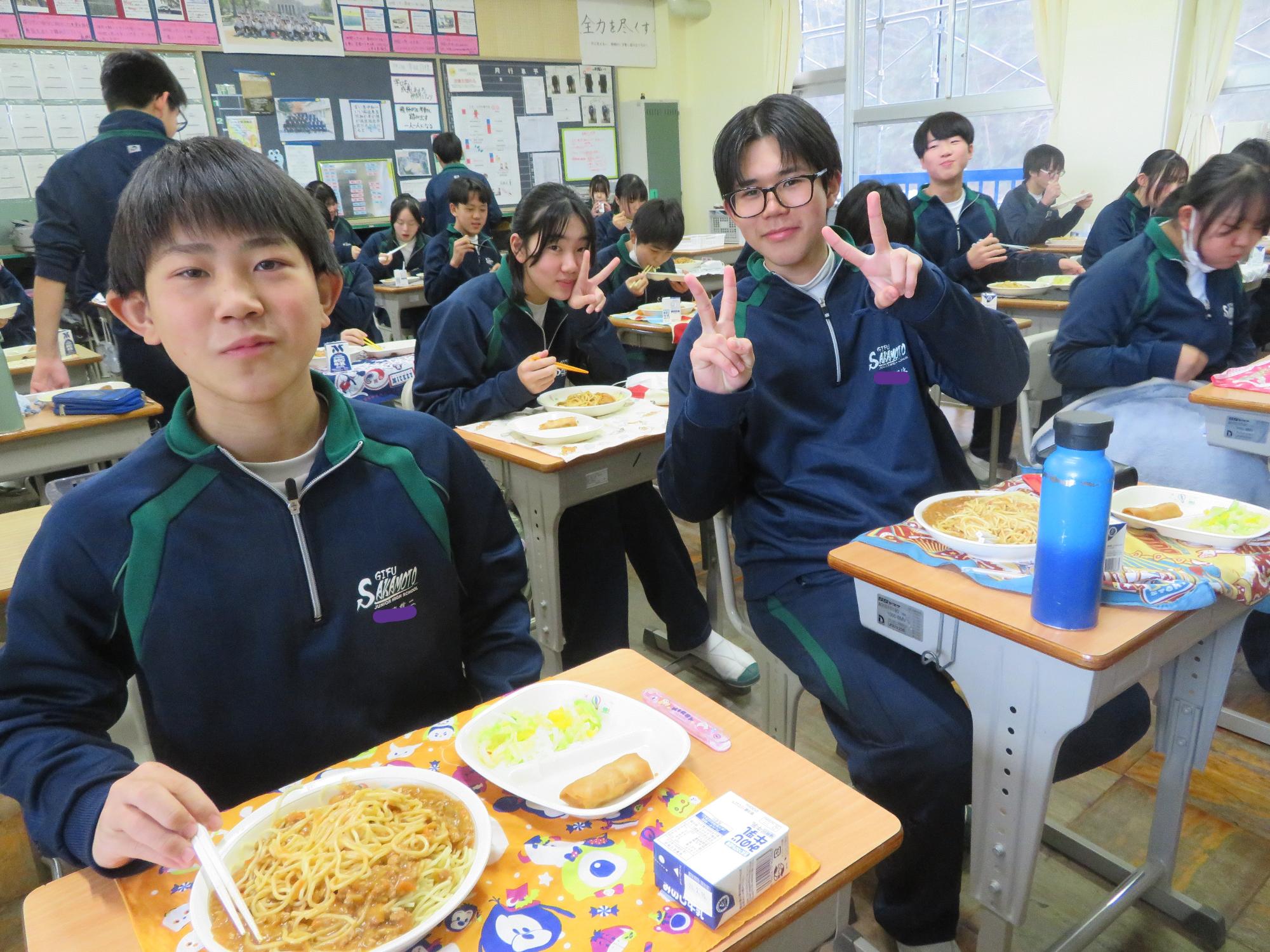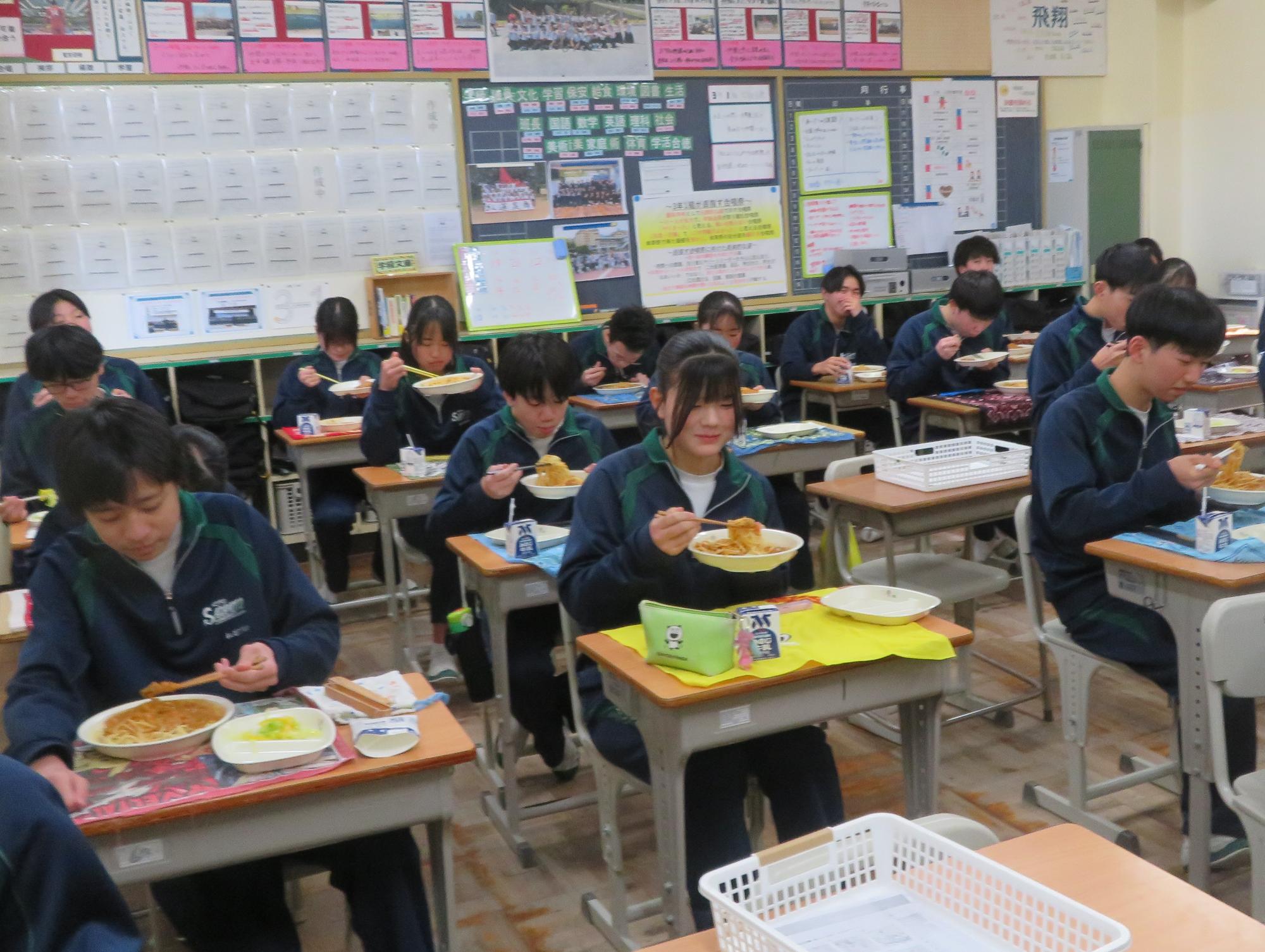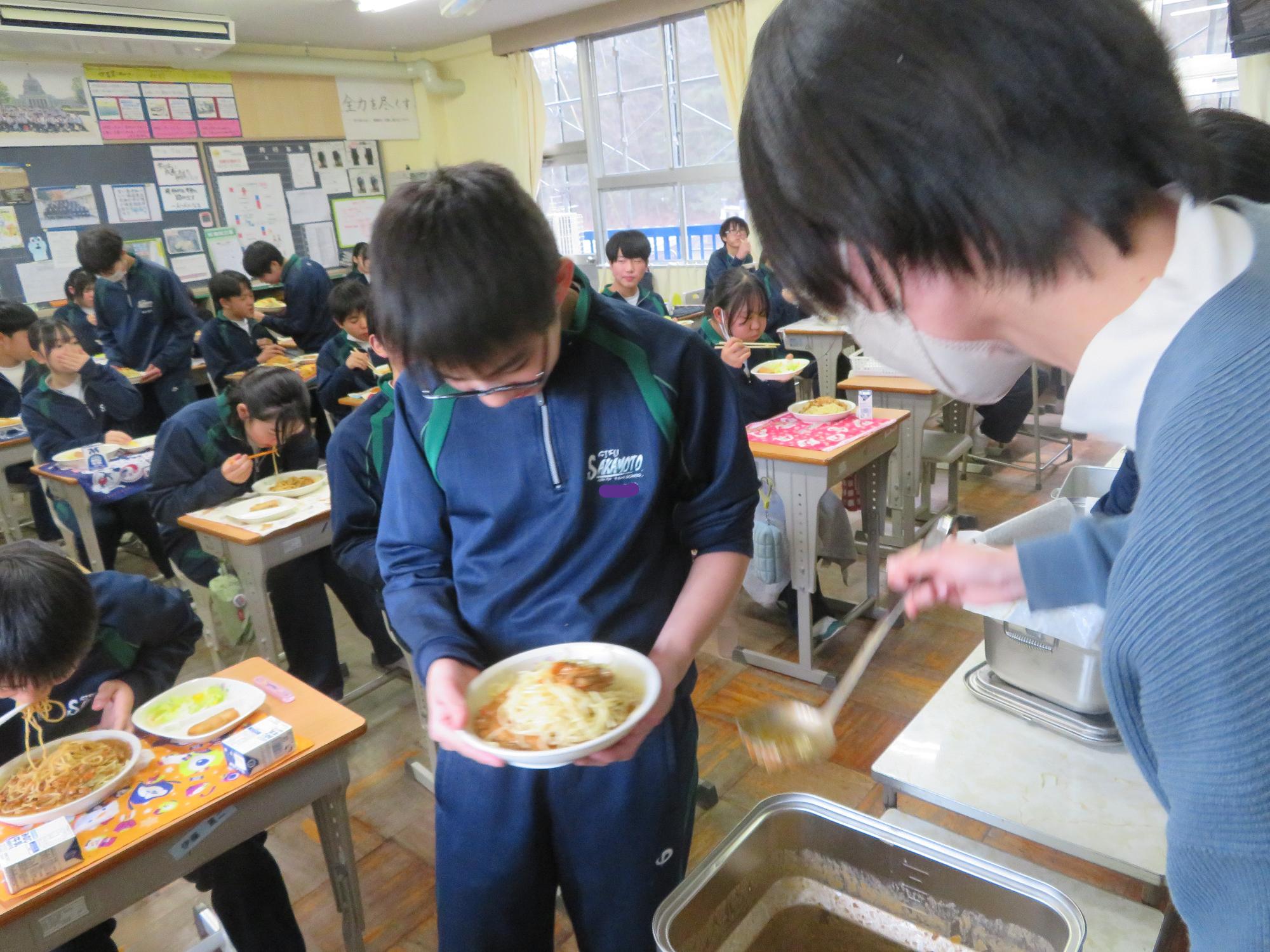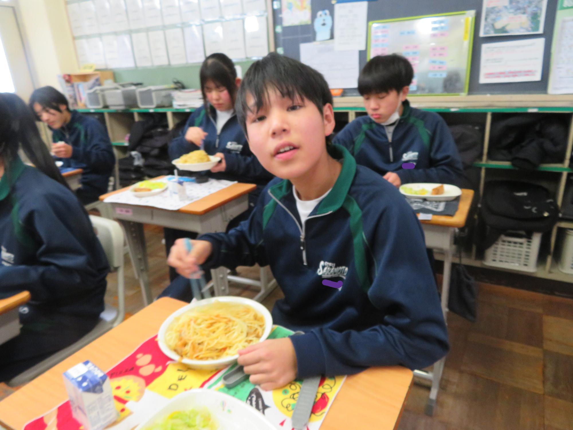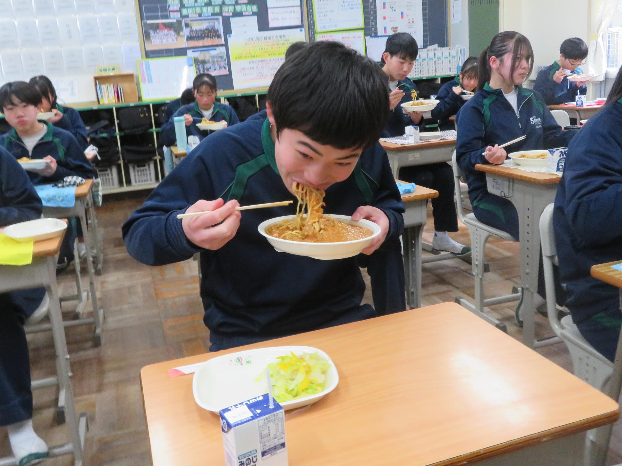 もりもり給食を食べ栄養を付ける生徒その2