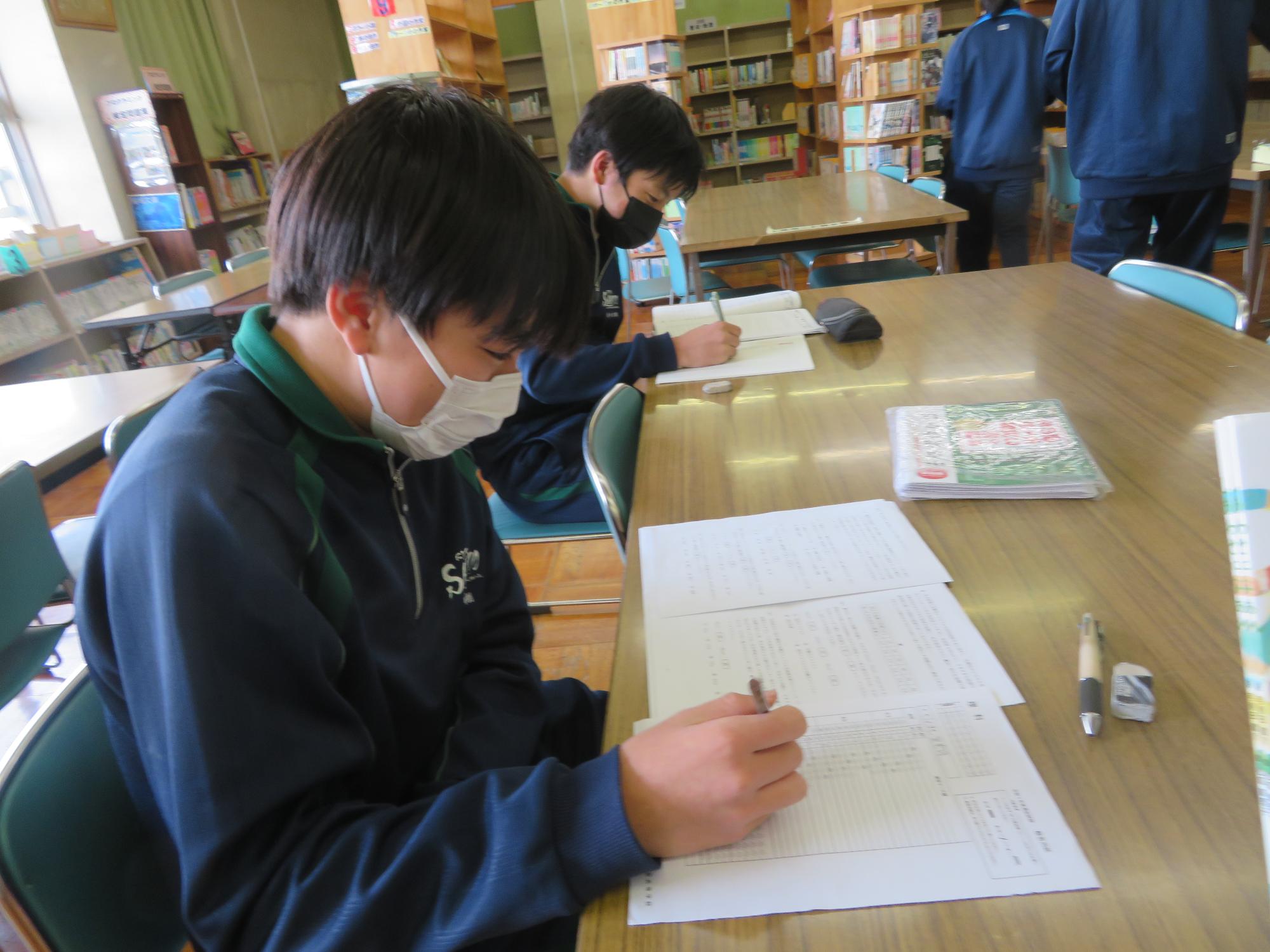 昼休みの図書館で学習に励む生徒その3