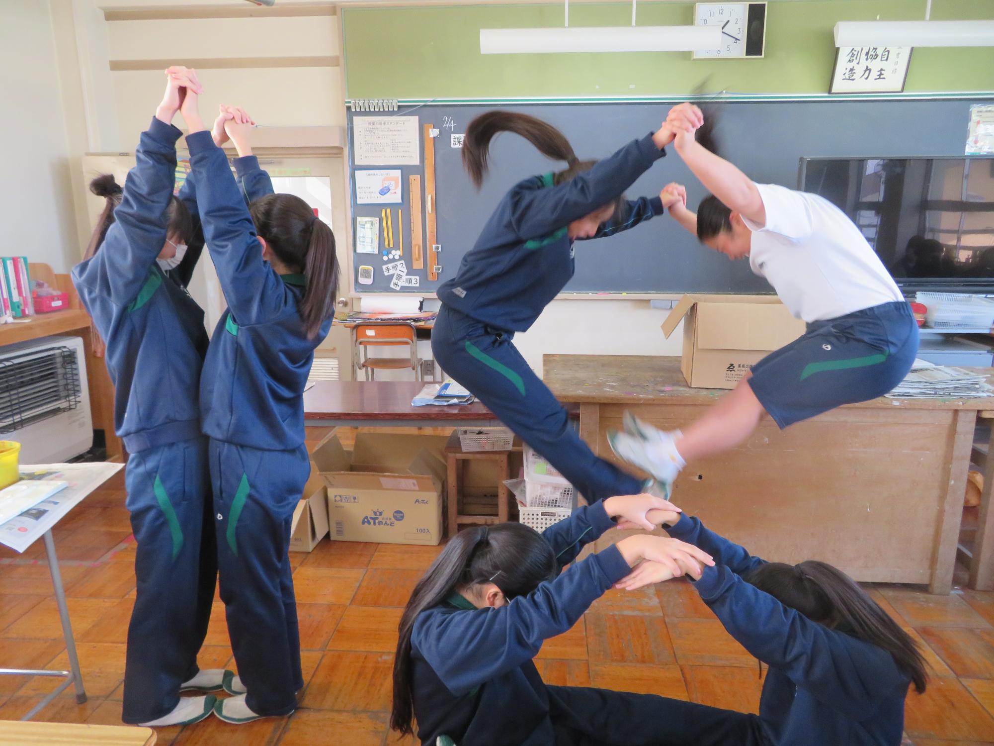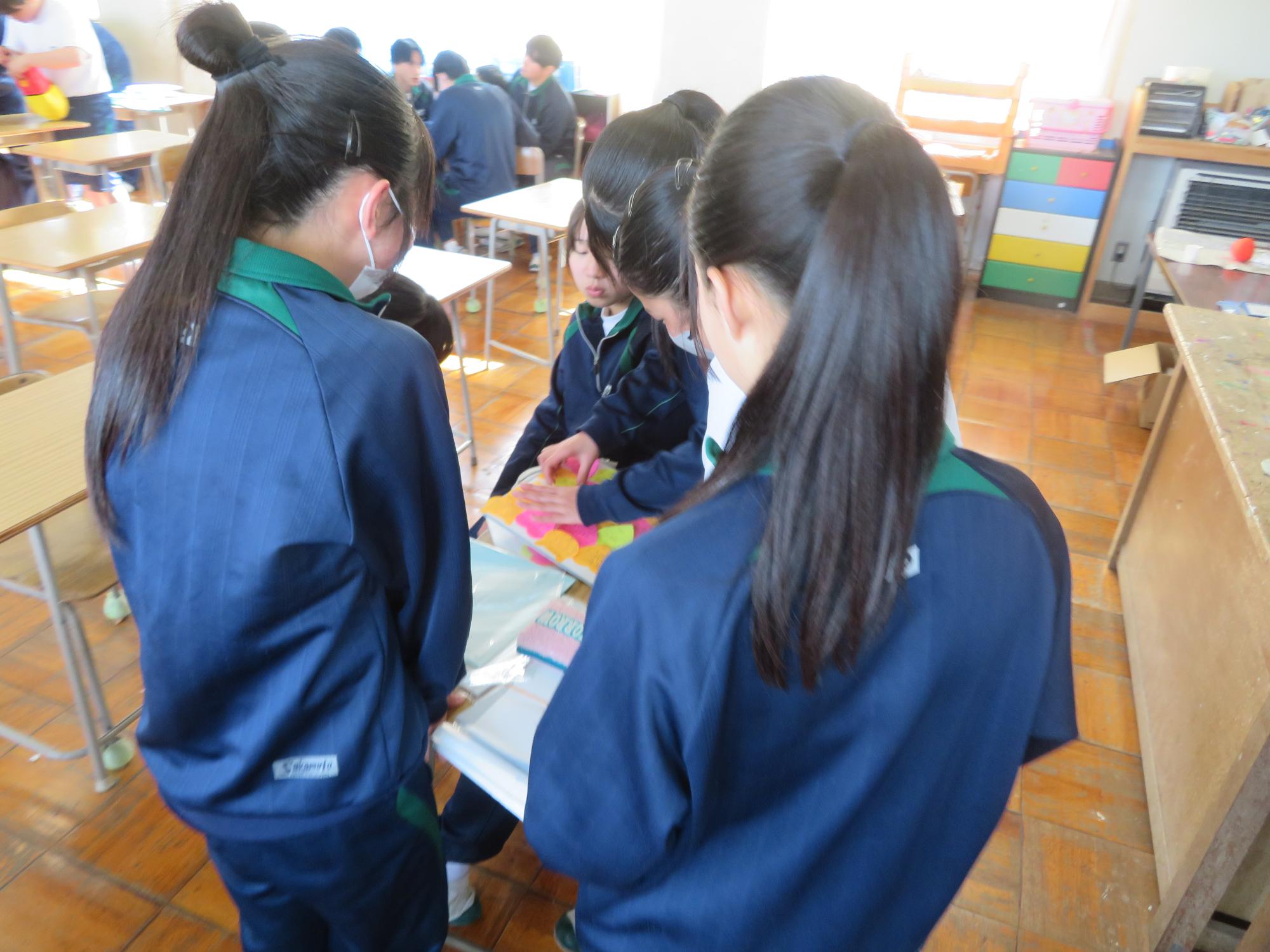 家庭科の福祉の授業で高齢者疑似体験をする生徒その3