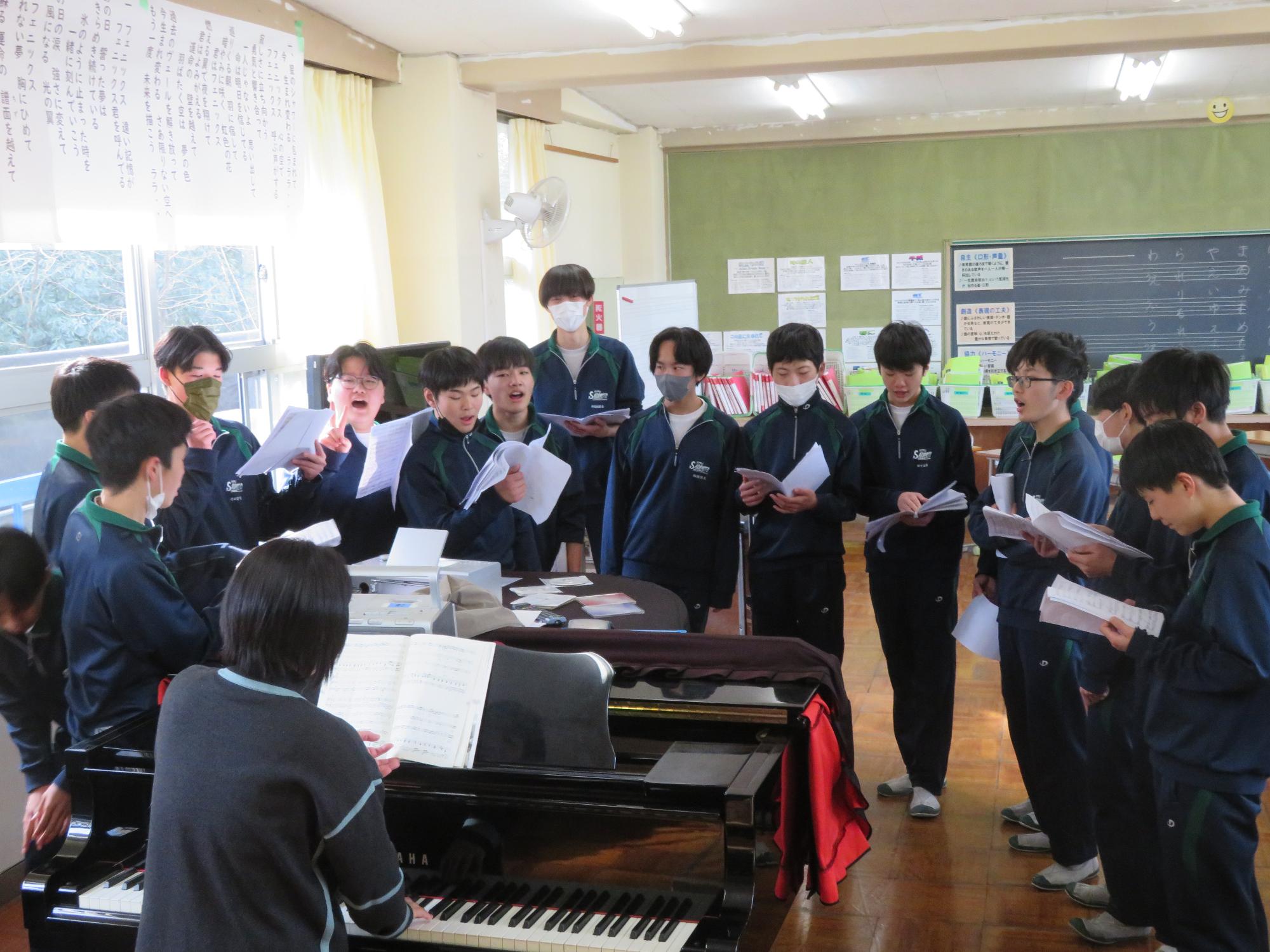 卒業式の合唱練習に力が入ってきた生徒