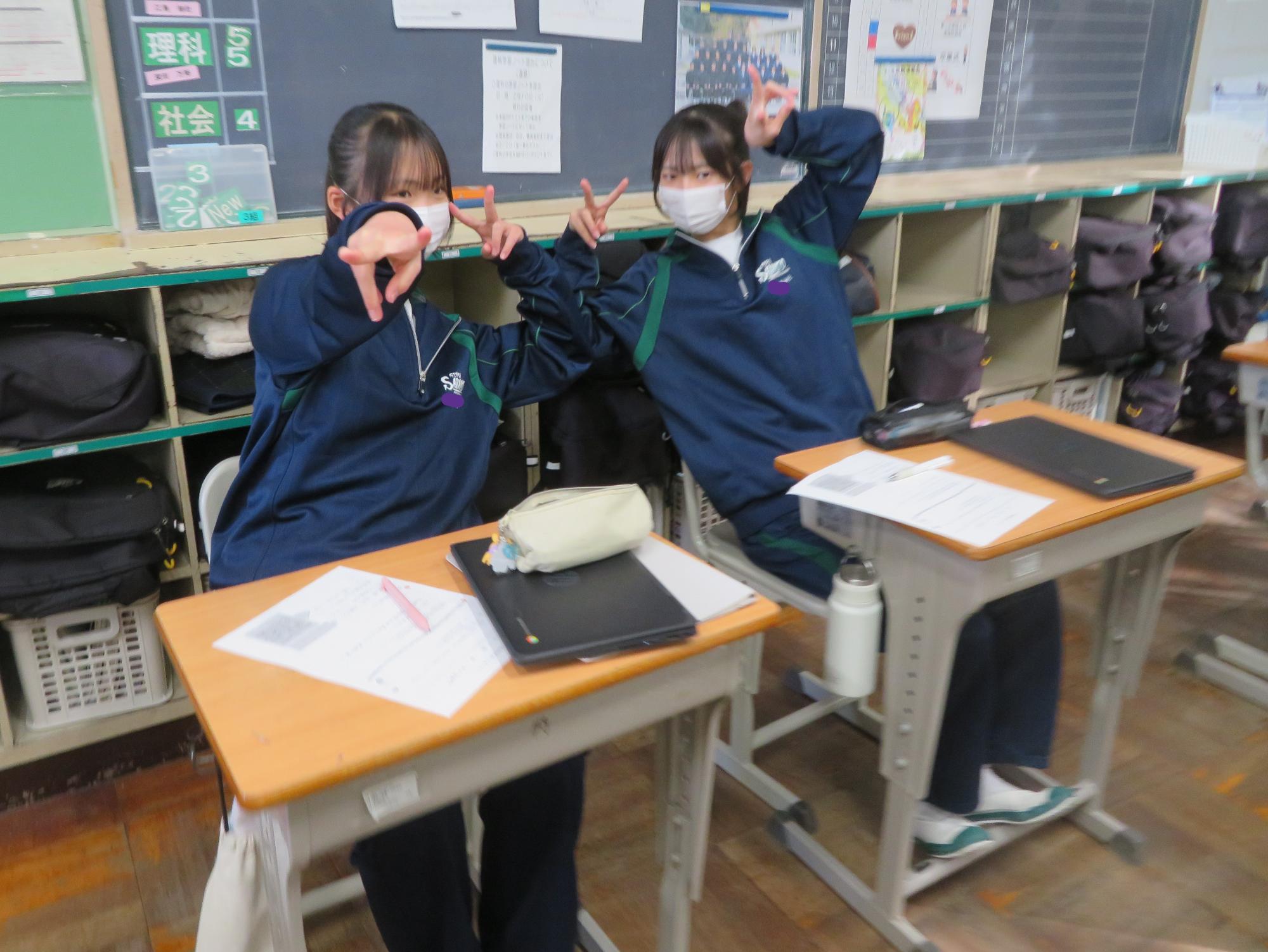 教室で励ましながら学習を進める生徒