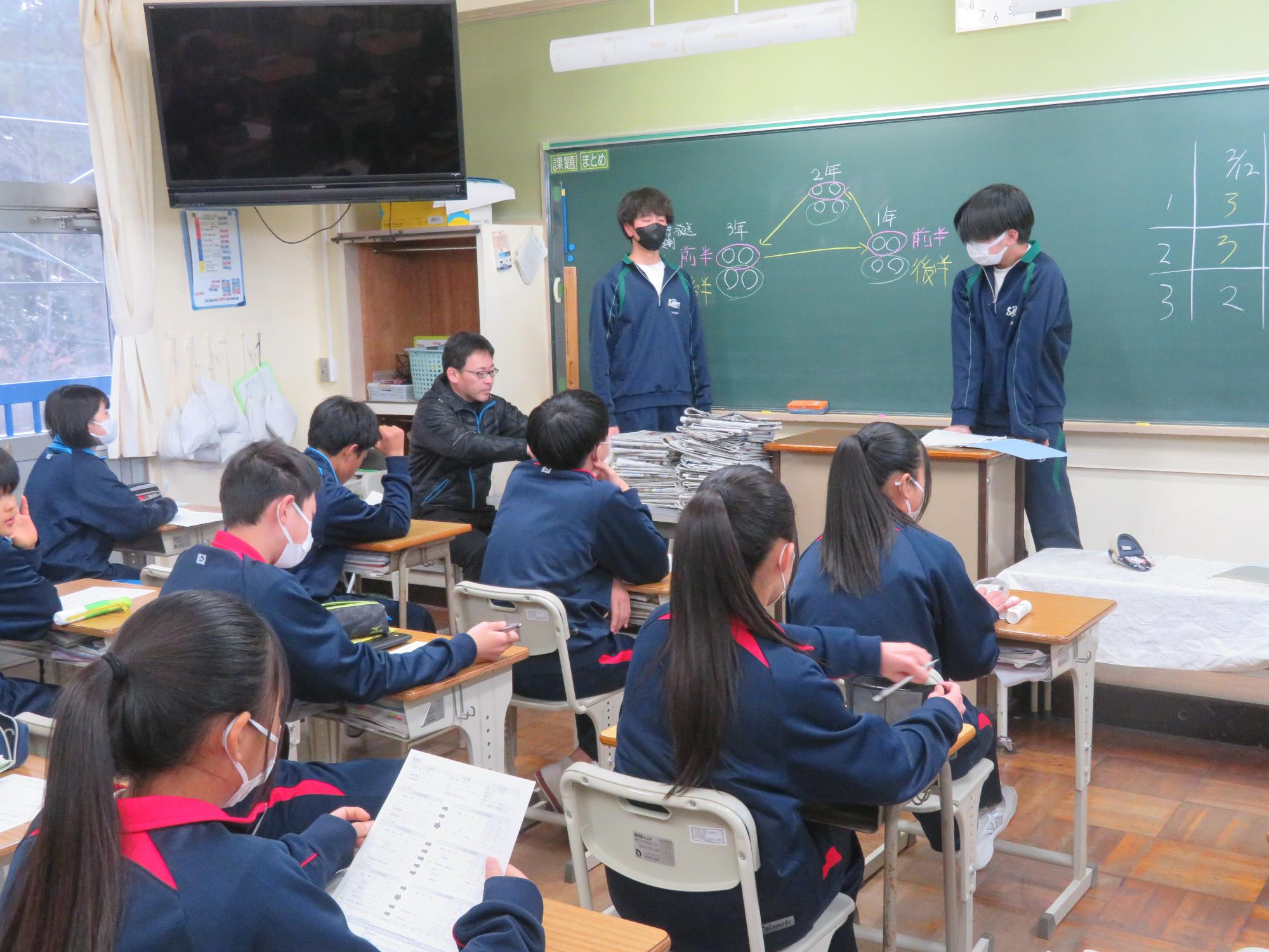 委員会活動でBRUSH UP! 更新日:2026年02月06日 1年生~3年生までの委員会活動も残り2回。木曜日の委員会では、今までの成果と課題を出し合い、さらなる学校生活の向上に向けた活動づくりを行いました。そして本日。色々な場面で委員会活動に意欲的に向かう姿が多々見られました。3年生が残していく生徒会活動の成果を1年生と2年生が引き継いでいくことで、坂中の伝統がさらに深まっていくことを願っています。