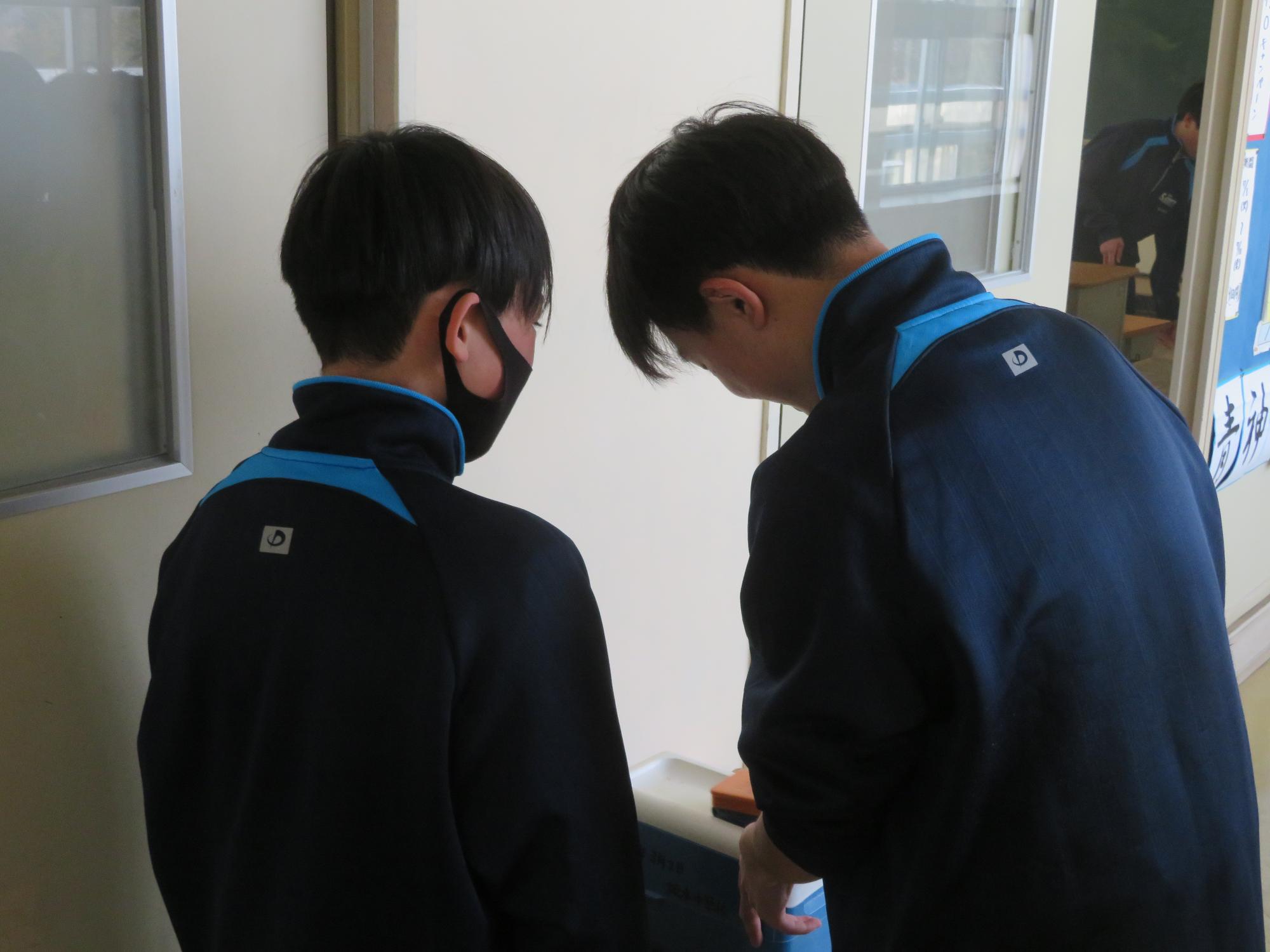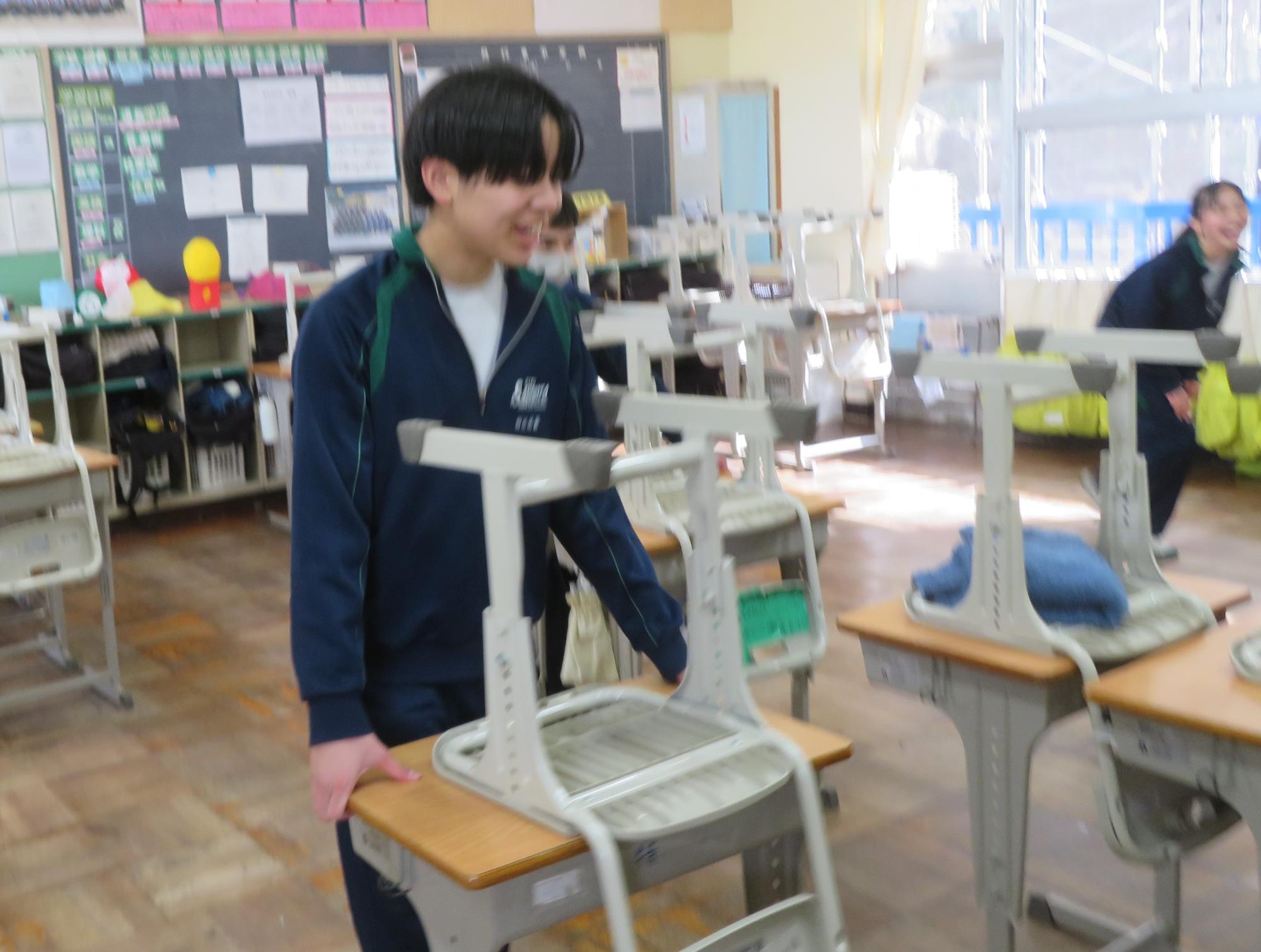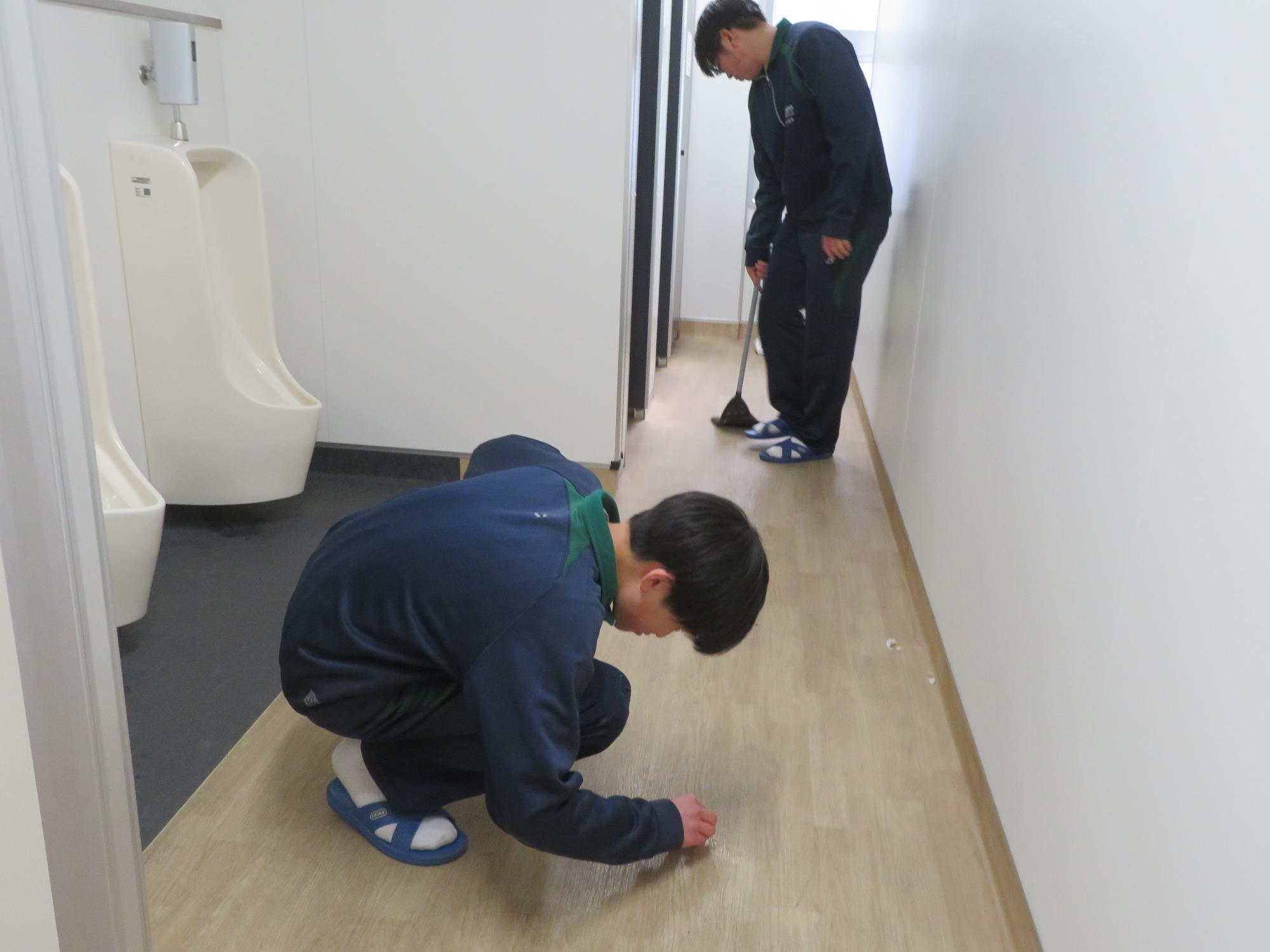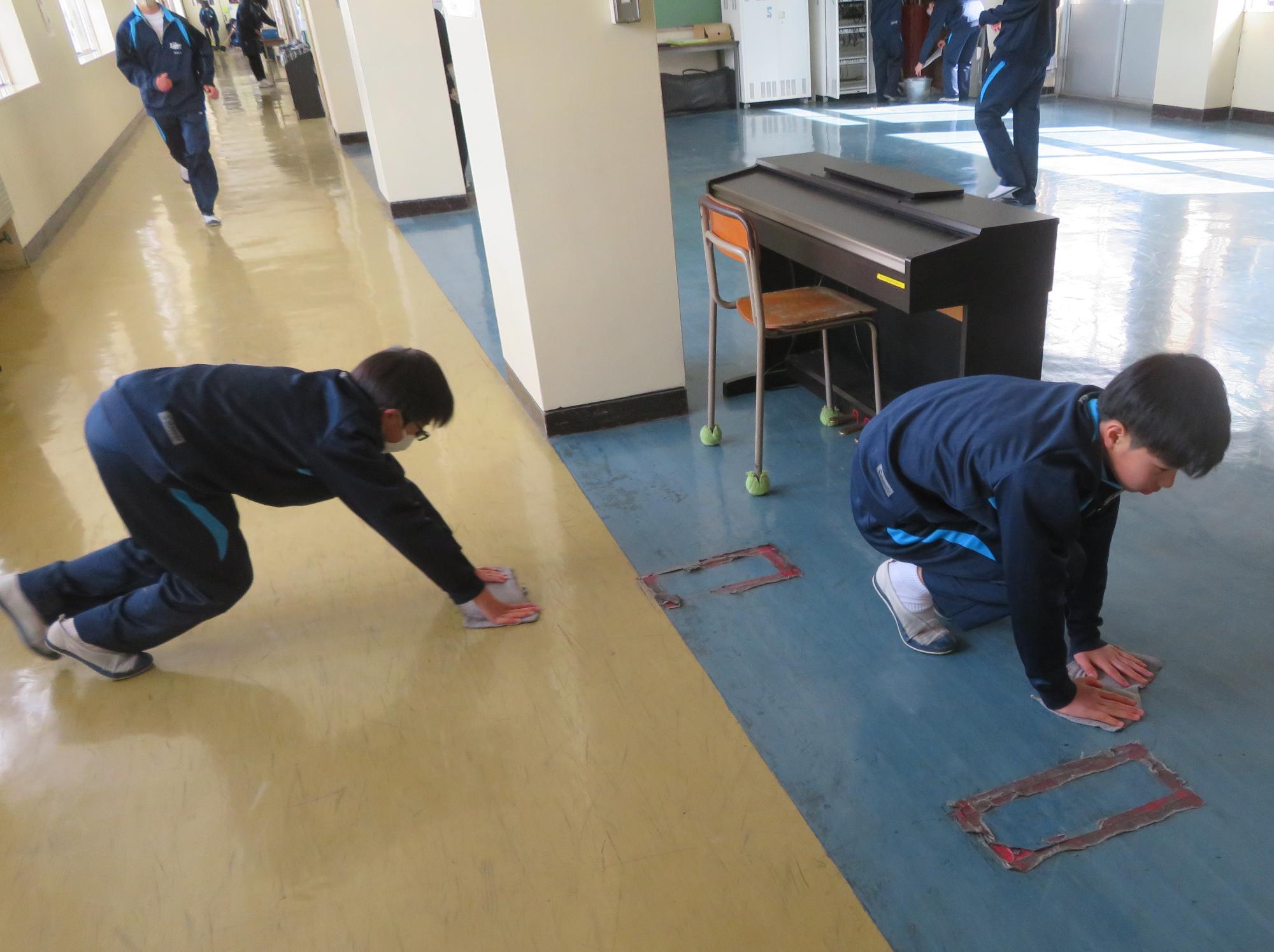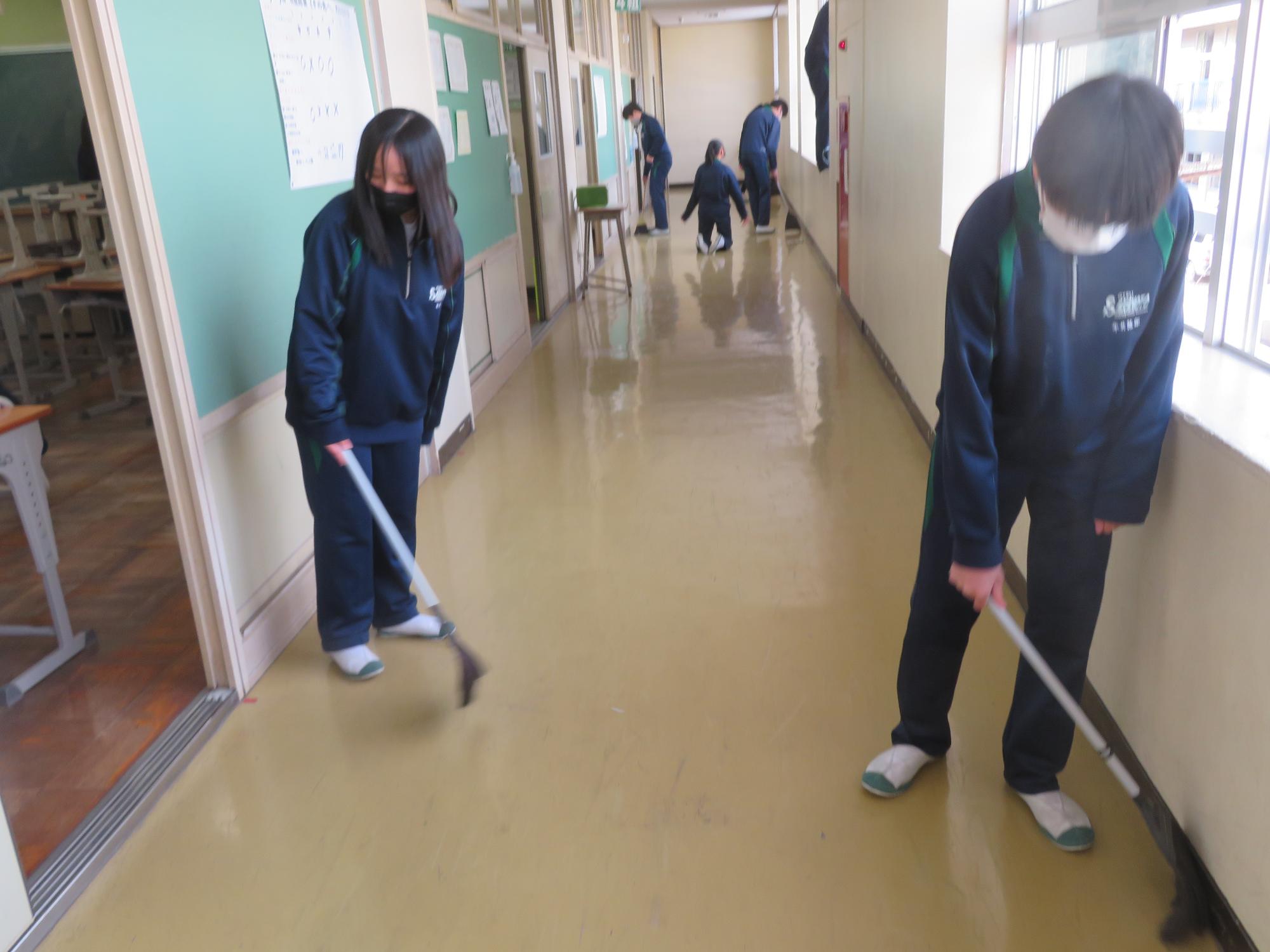 「掃除の時間は集中力を高める時間だ!」 更新日:2026年02月10日 「掃除の時間は集中力を高める時間だ」。井戸澤環境委員長の言葉です。「後世まできれいな場所を引き継ぐために掃除をすることはもちろん、自分の集中力を高める時間でもある」。井戸澤環境委員長はその言葉を発しながら黙々と集中して掃除に取り組んでいます。まさに有言実行。坂中3本柱の1つ「掃除」を高めていくことで、集中力を高め、自らの可能性をより開花させていく坂中生になることを願っています。