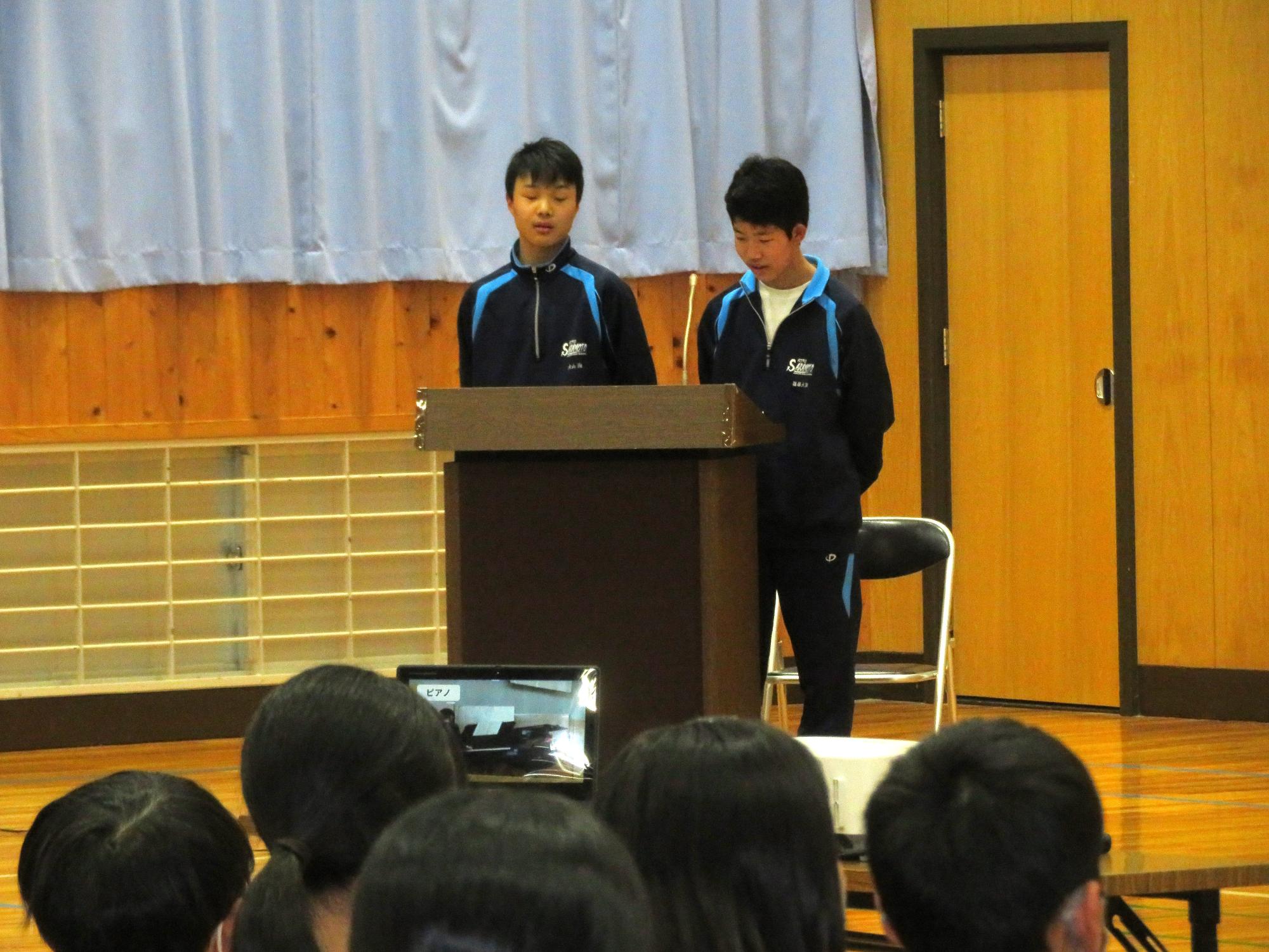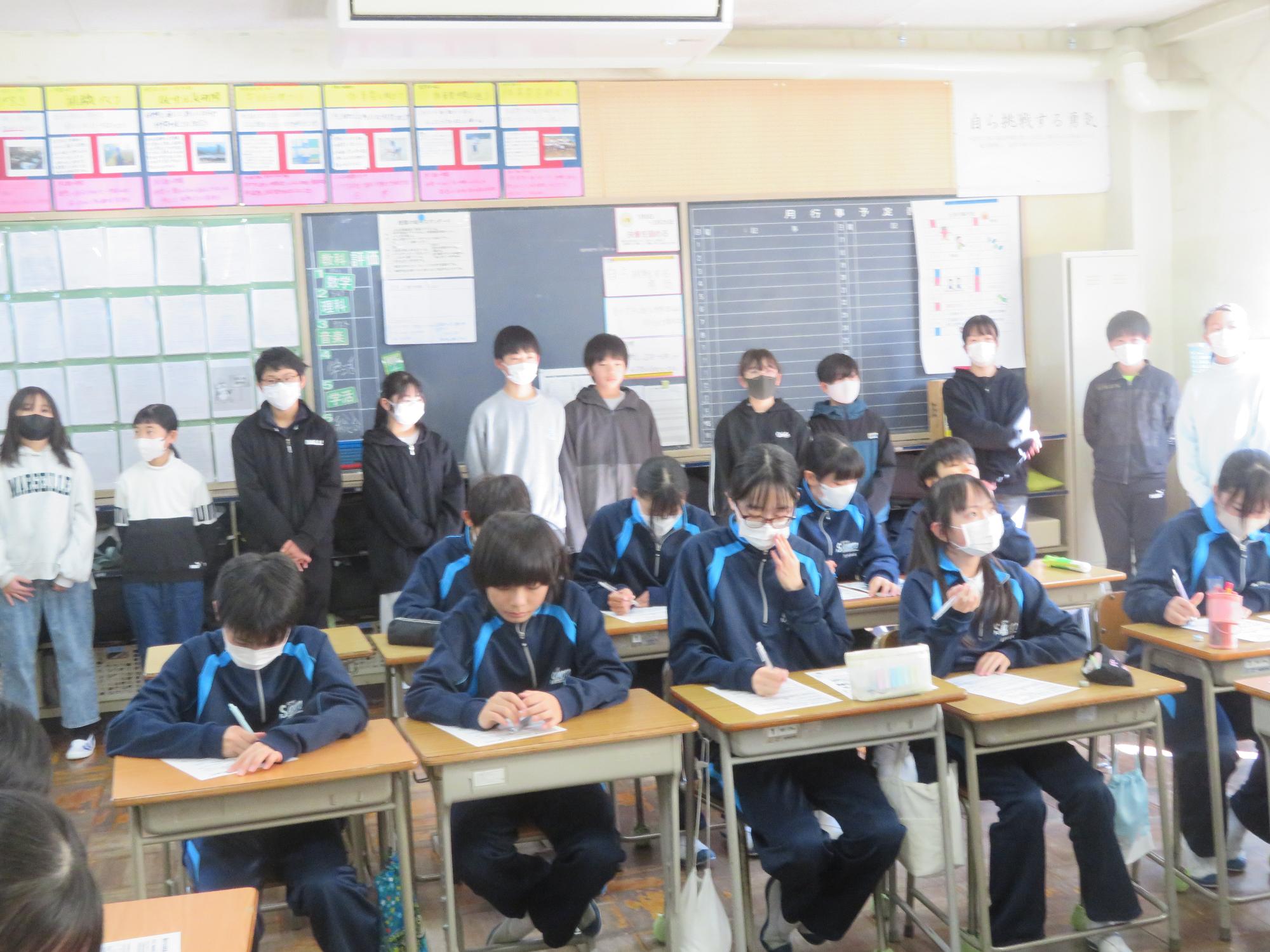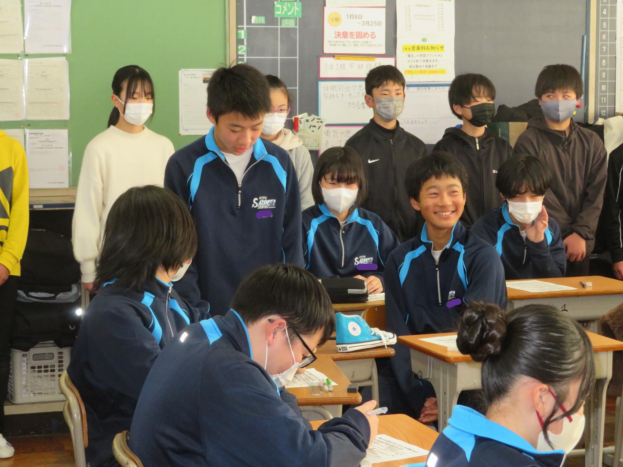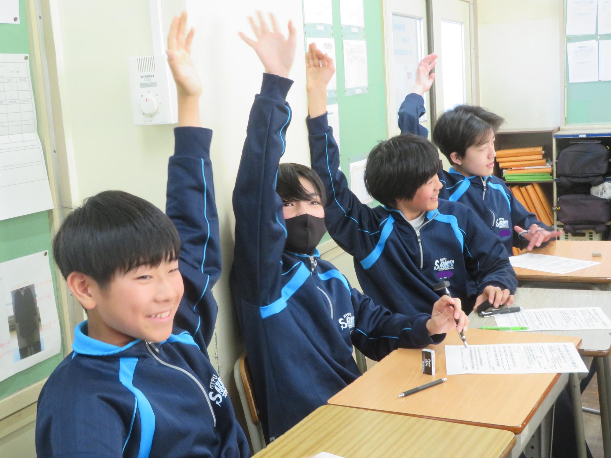 憧れられるかっこいい先輩に自分もなる! 更新日:2026年02月13日 “憧れられるかっこいい先輩に自分もなる”。1年生の進級プロジェクトに向けての言葉です。その言葉を意識し、本日、新入生説明会が行われました。来年度、新入生になる坂本小6年生に1年生と2年生は授業を公開し、その後、1年生はパネルメッセージ、合唱、そして学校紹介をアイデア豊富に行いました。特に1年生の合唱は、きれいな歌声とともに一生懸命さが強く伝わってくる感動的なものでした。確実に憧れられるかっこいい先輩を示していけた坂中生でした。