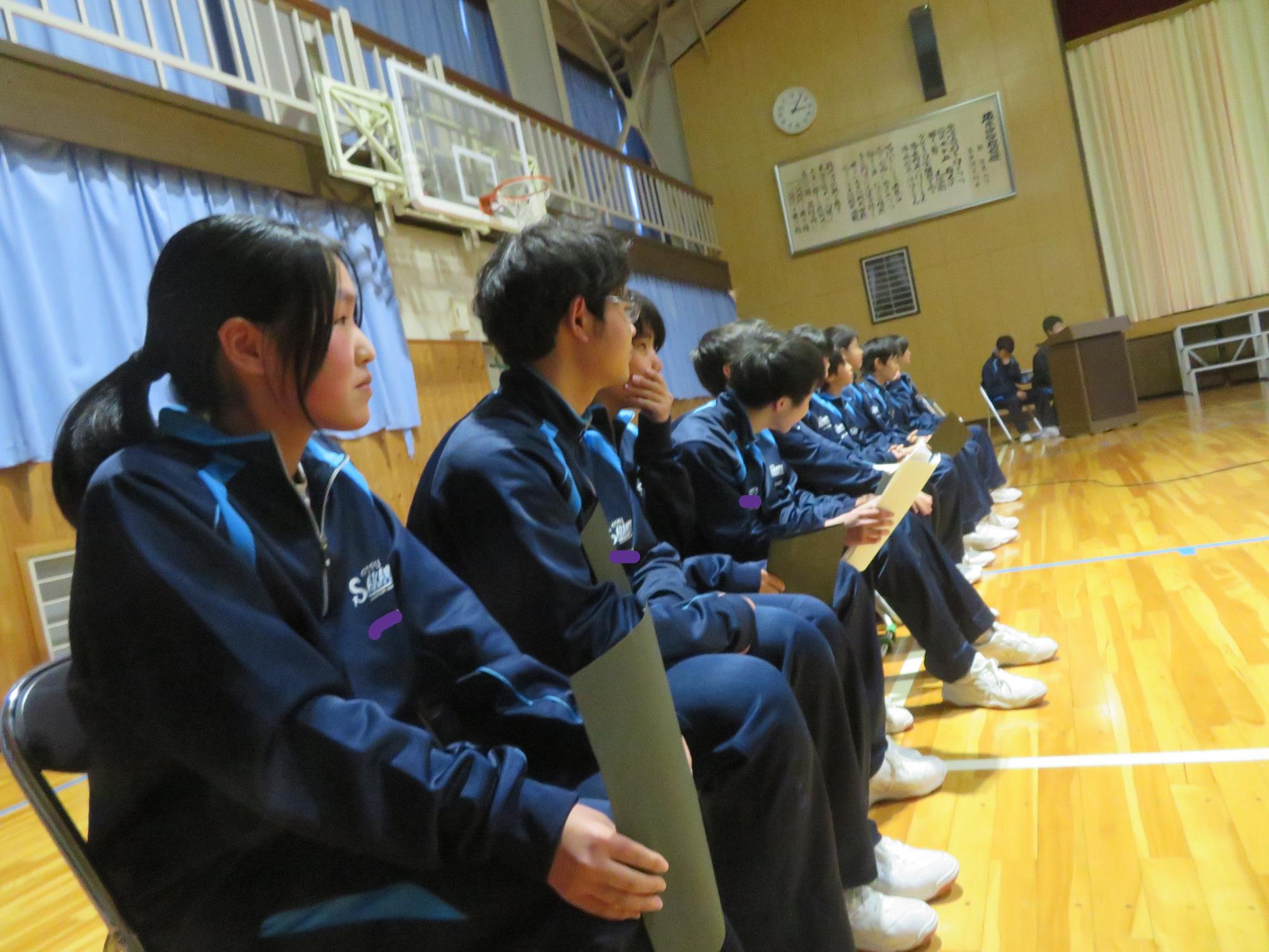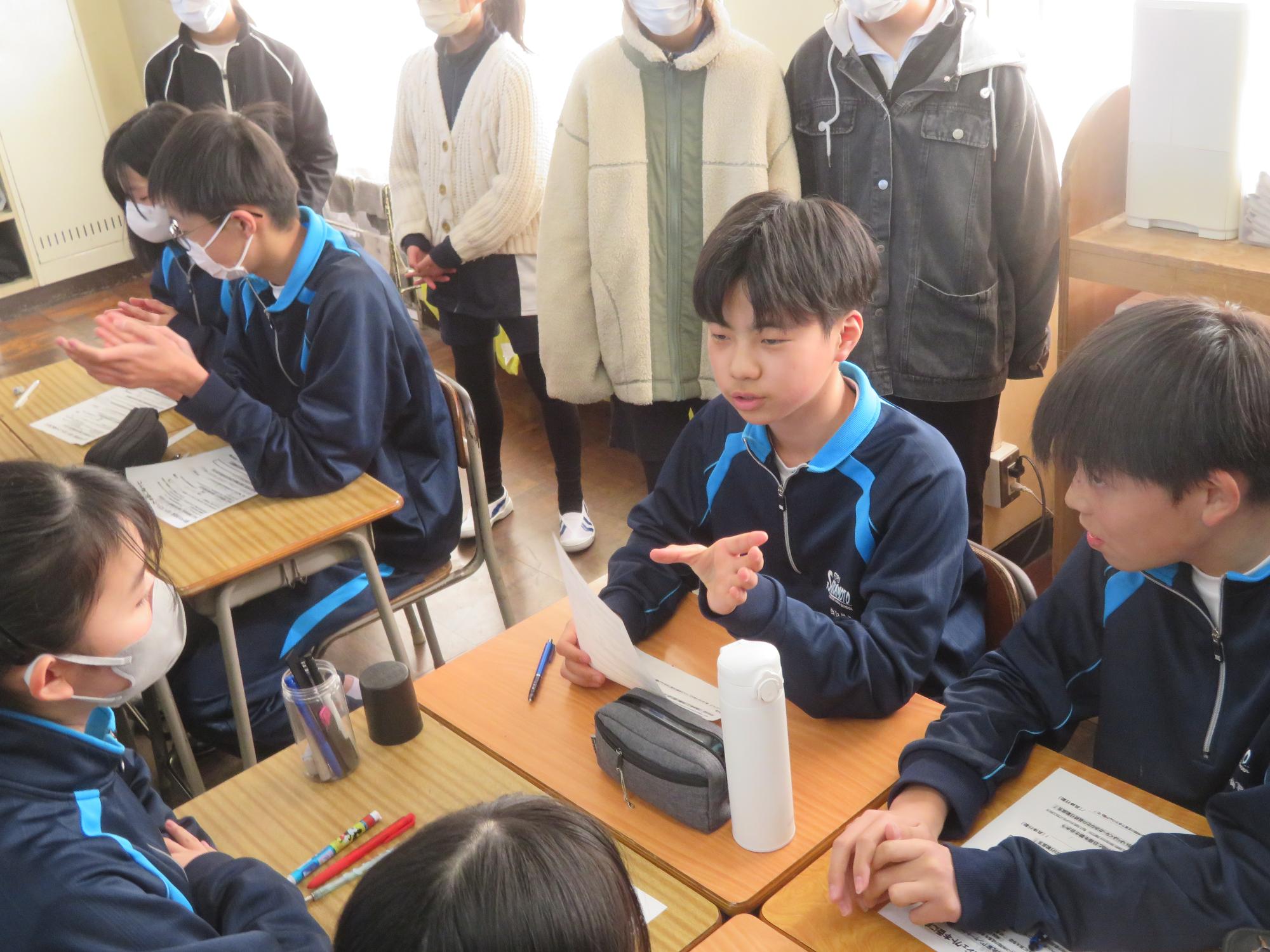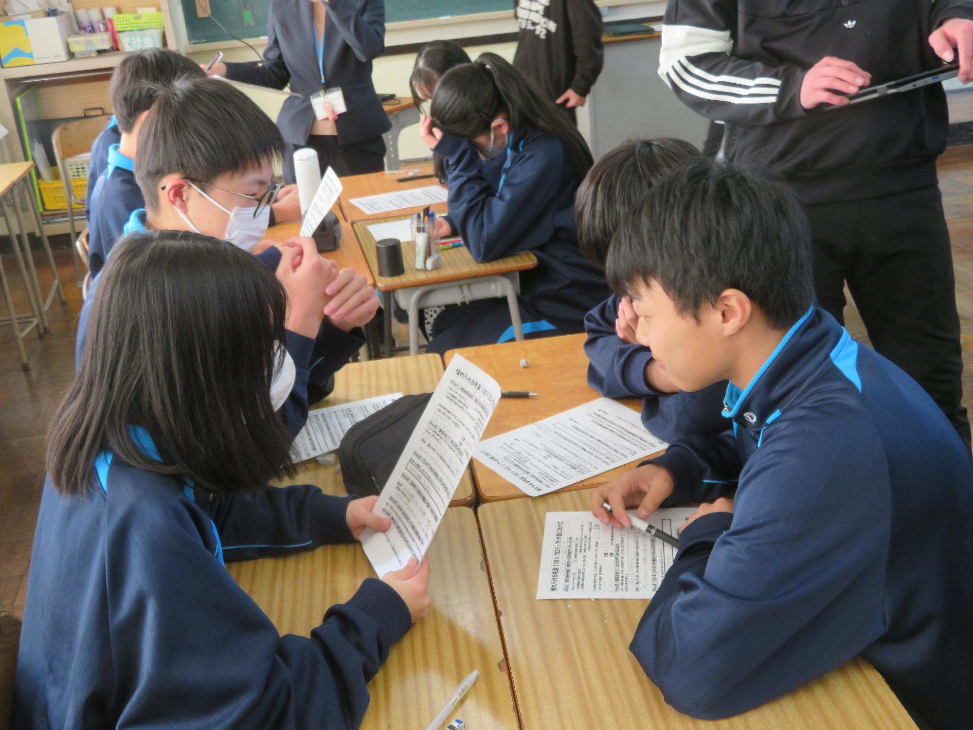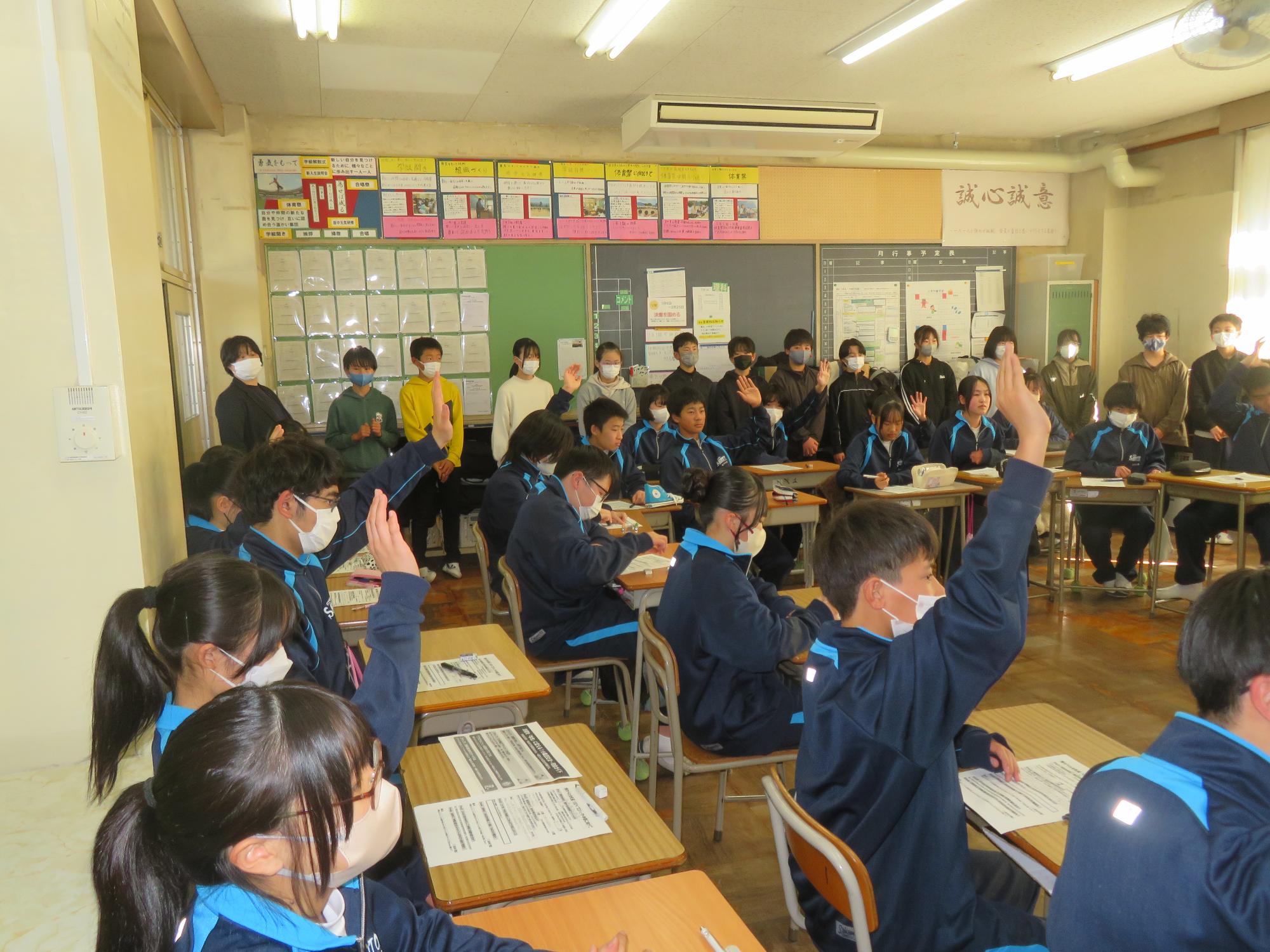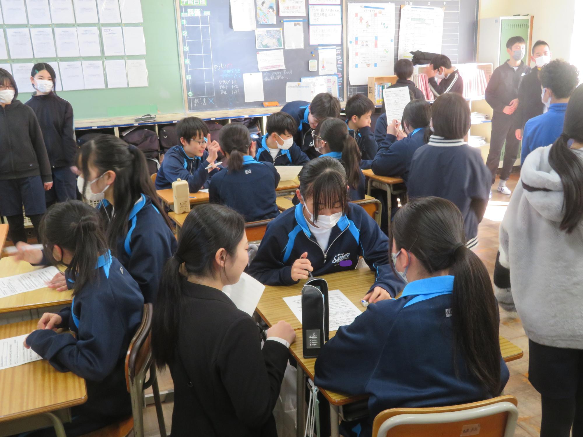 憧れられるかっこいい先輩に自分もなる! 更新日:2026年02月13日 “憧れられるかっこいい先輩に自分もなる”。1年生の進級プロジェクトに向けての言葉です。その言葉を意識し、本日、新入生説明会が行われました。来年度、新入生になる坂本小6年生に1年生と2年生は授業を公開し、その後、1年生はパネルメッセージ、合唱、そして学校紹介をアイデア豊富に行いました。特に1年生の合唱は、きれいな歌声とともに一生懸命さが強く伝わってくる感動的なものでした。確実に憧れられるかっこいい先輩を示していけた坂中生でした。