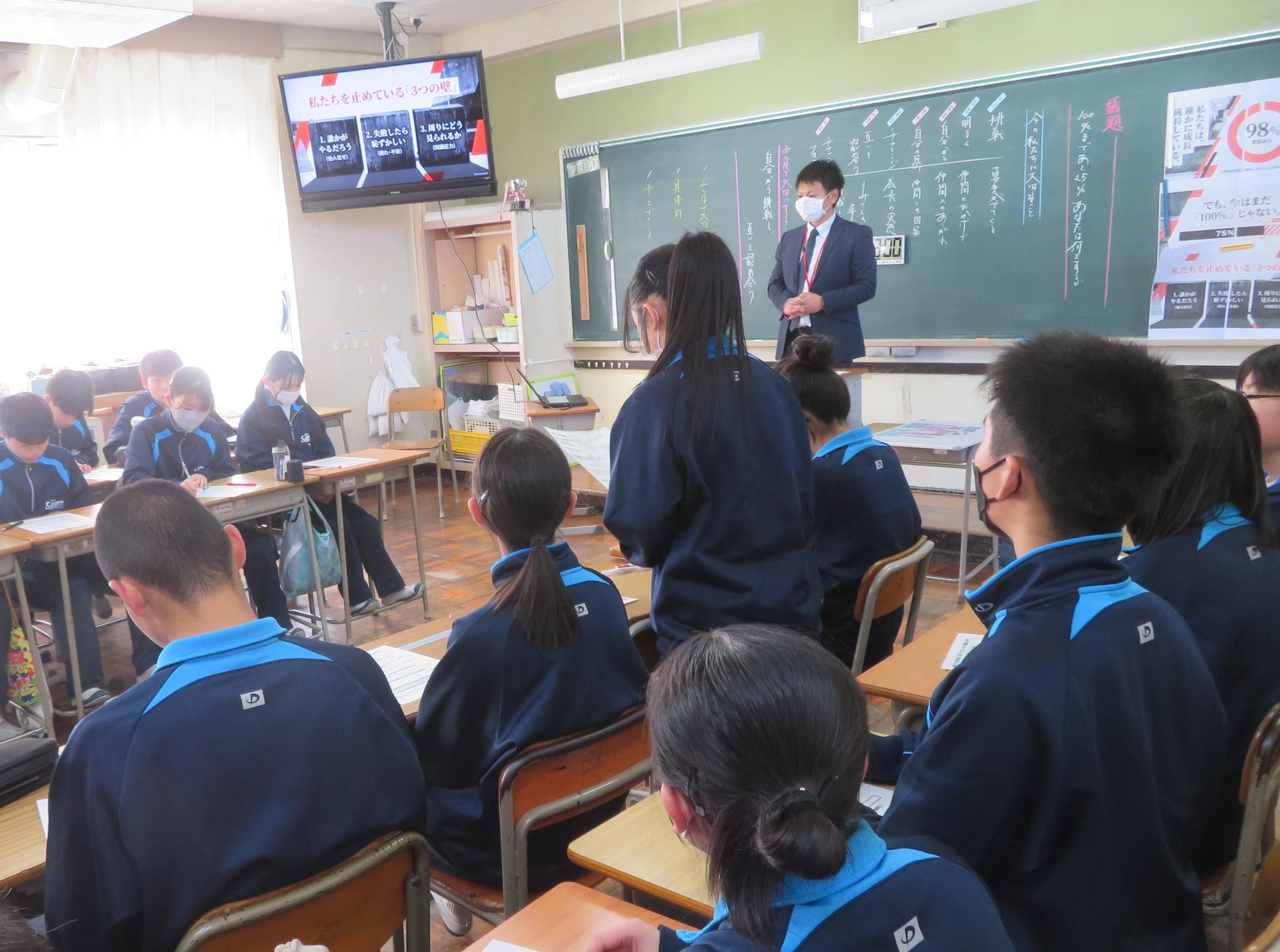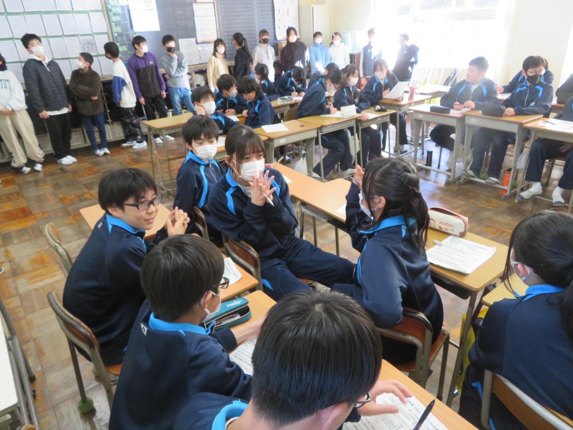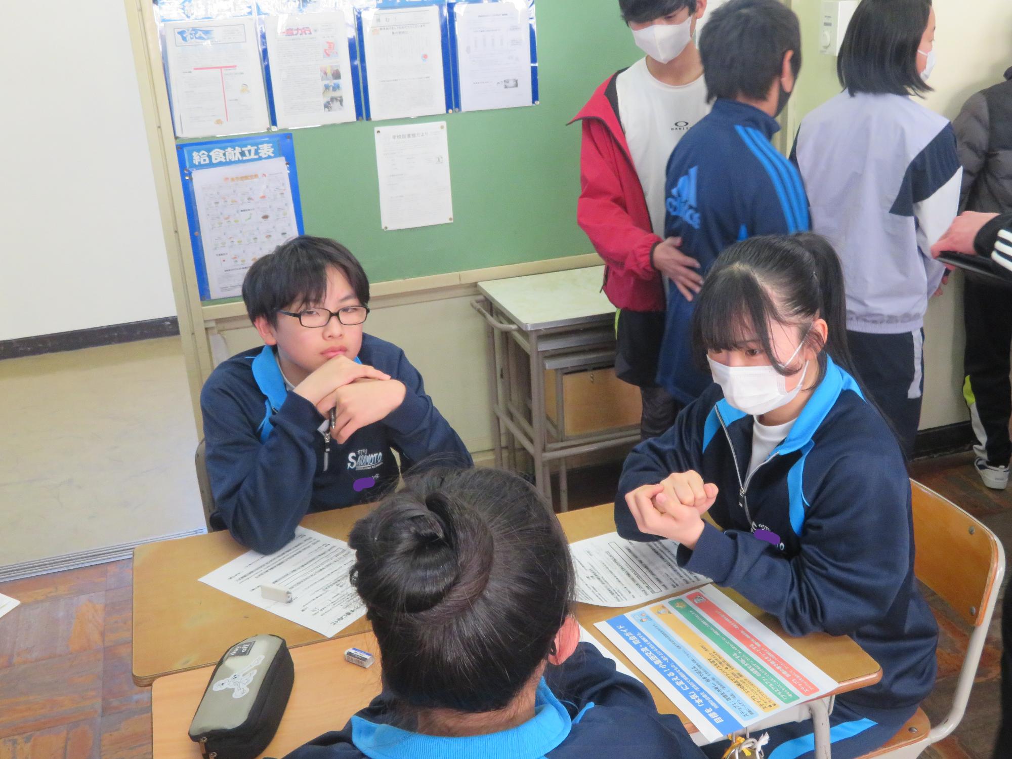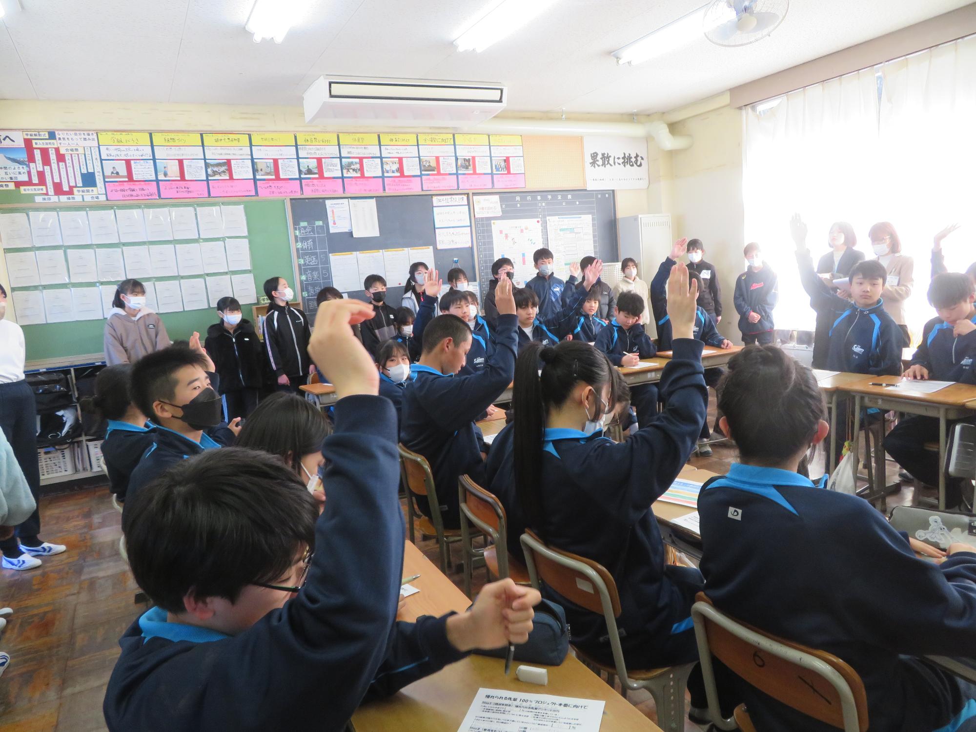 憧れられるかっこいい先輩に自分もなる! 更新日:2026年02月13日 “憧れられるかっこいい先輩に自分もなる”。1年生の進級プロジェクトに向けての言葉です。その言葉を意識し、本日、新入生説明会が行われました。来年度、新入生になる坂本小6年生に1年生と2年生は授業を公開し、その後、1年生はパネルメッセージ、合唱、そして学校紹介をアイデア豊富に行いました。特に1年生の合唱は、きれいな歌声とともに一生懸命さが強く伝わってくる感動的なものでした。確実に憧れられるかっこいい先輩を示していけた坂中生でした。
