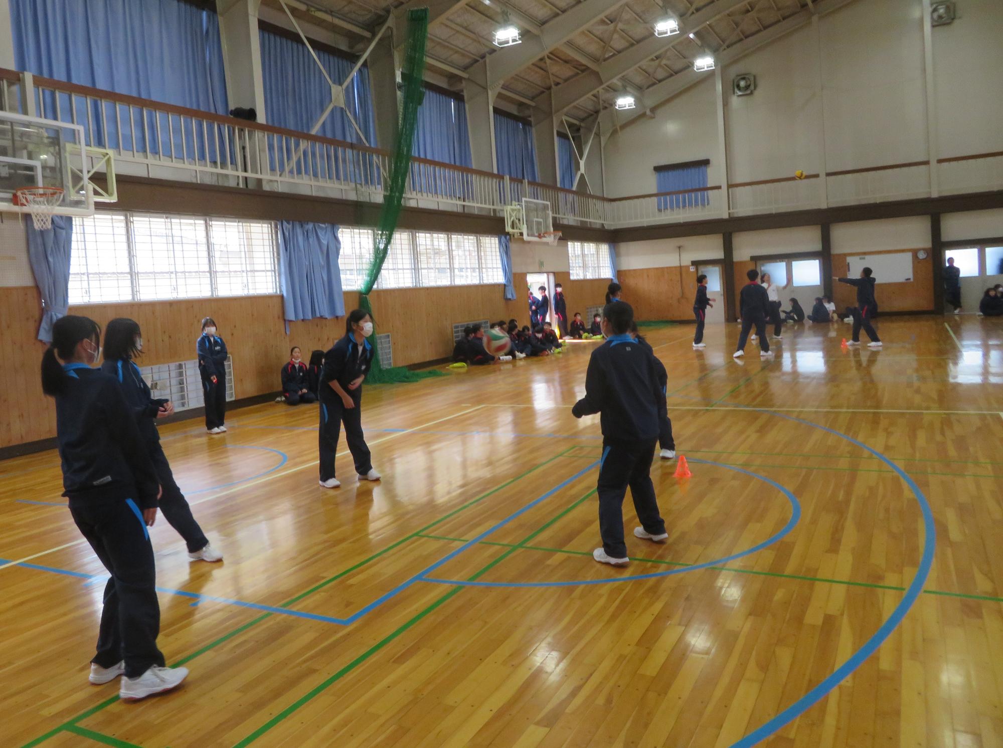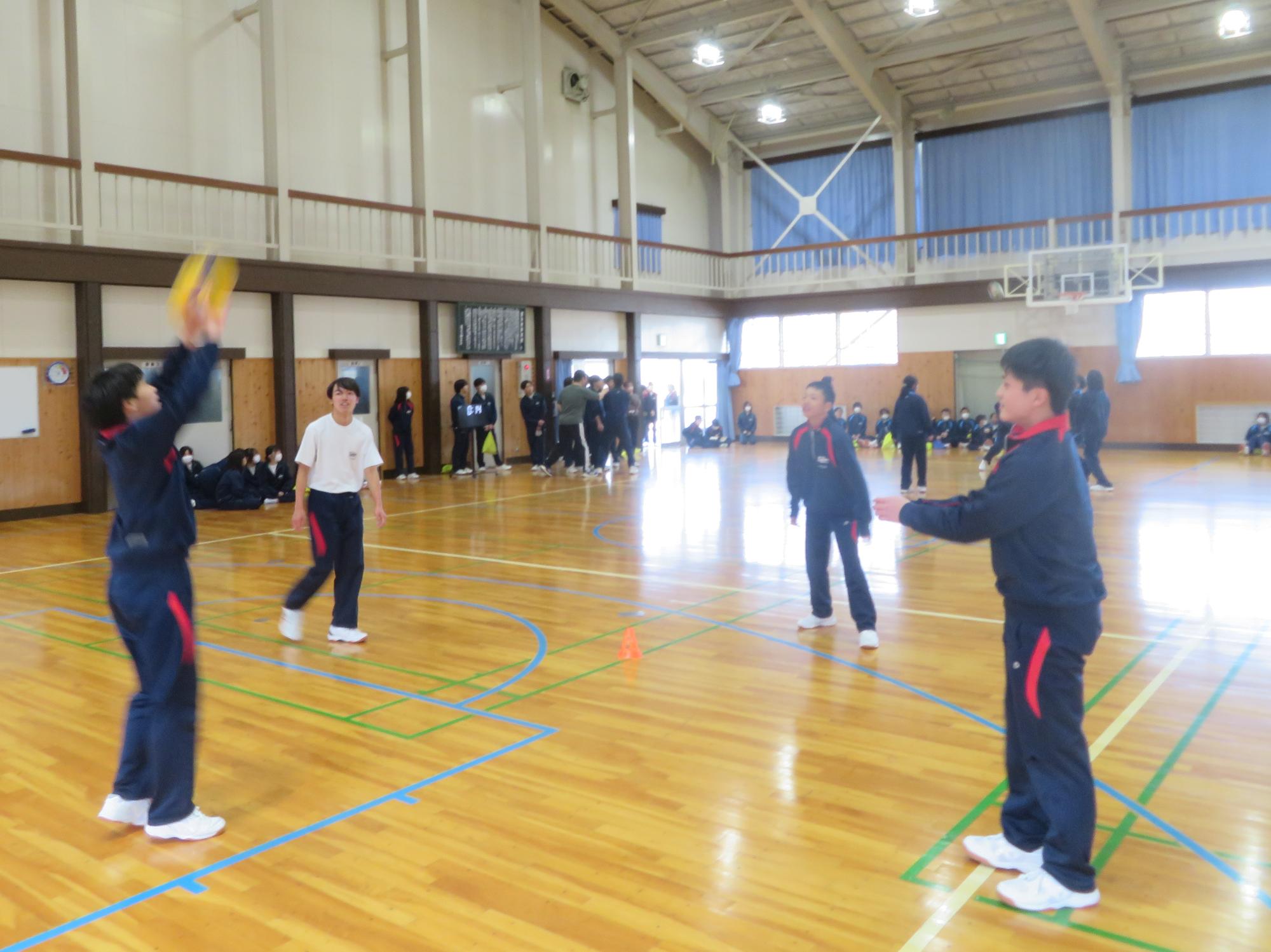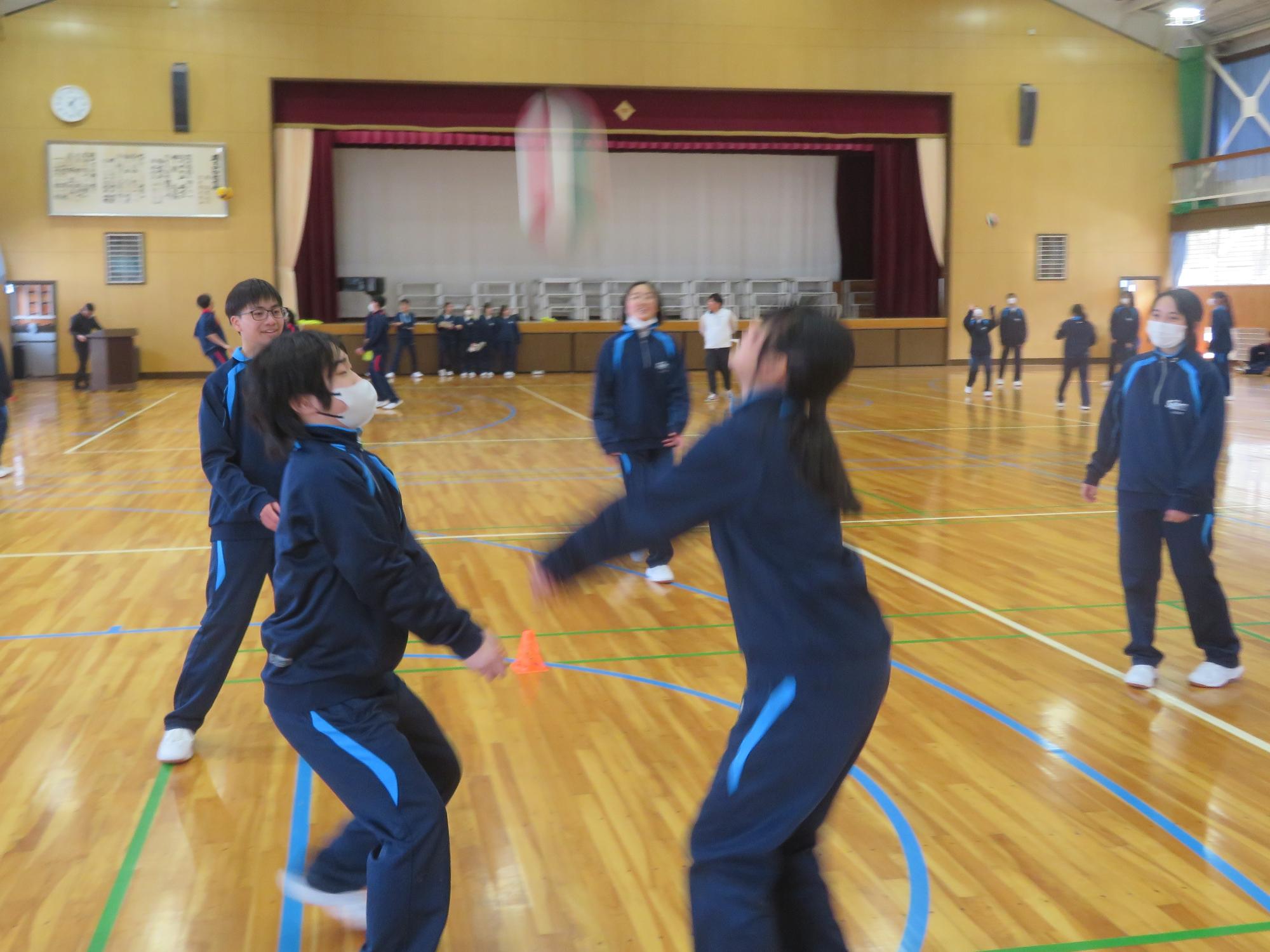 オリンピックに負けない盛り上がりの全校レク大会 更新日:2026年02月16日 保健安全委員会が企画する全校レク大会も今週で最後です。今回はバレーボールの円陣パス競技を企画し、全校生徒に参加を呼びかけました。1年生から3年生までたくさんのチームがエントリーし、本日昼休み、1回戦の競技が行われていました。現在、連日冬季オリンピックがニュースになっていますが、坂中体育館はオリンピックに負けない盛り上がりの昼休みでした。