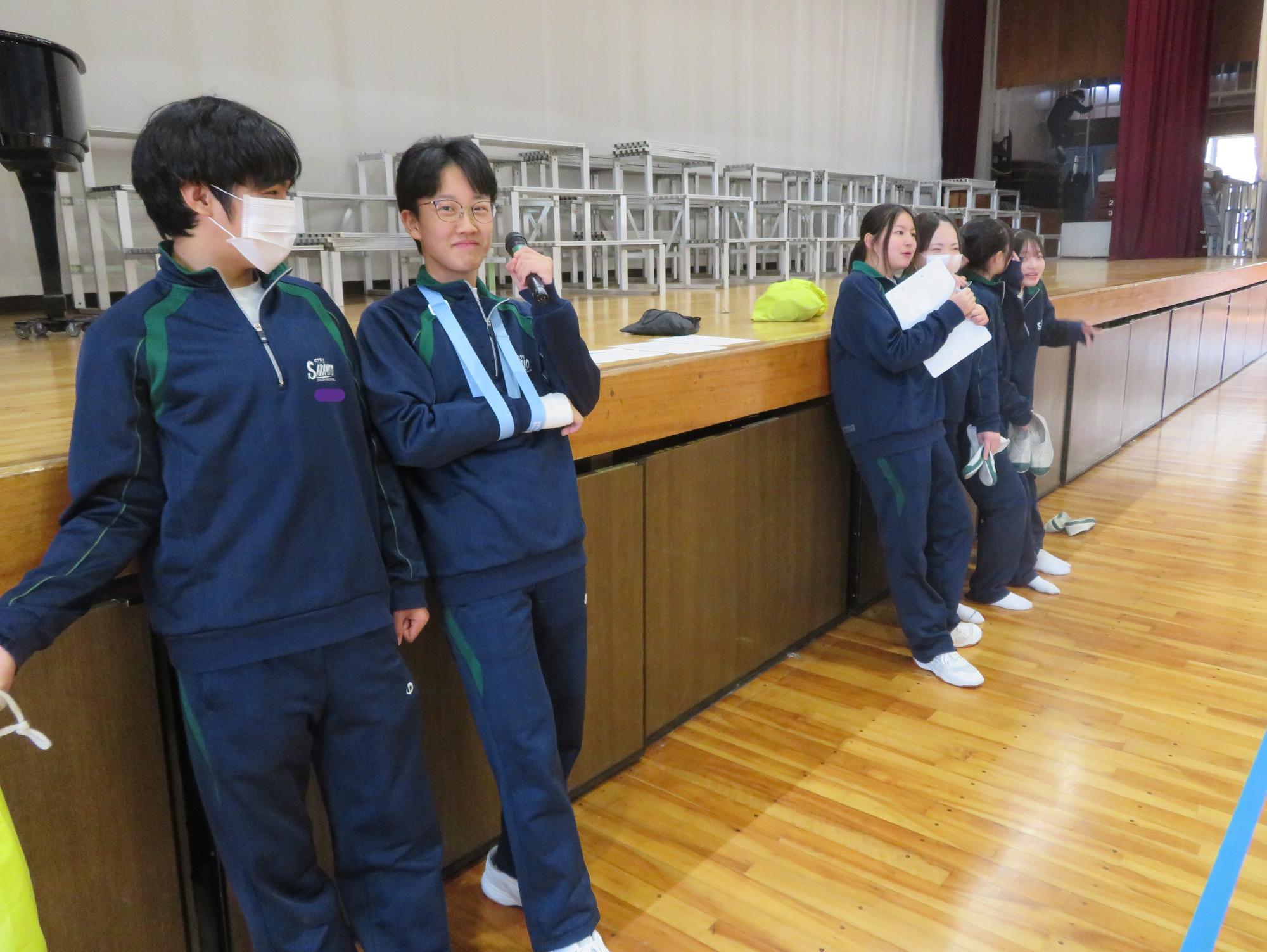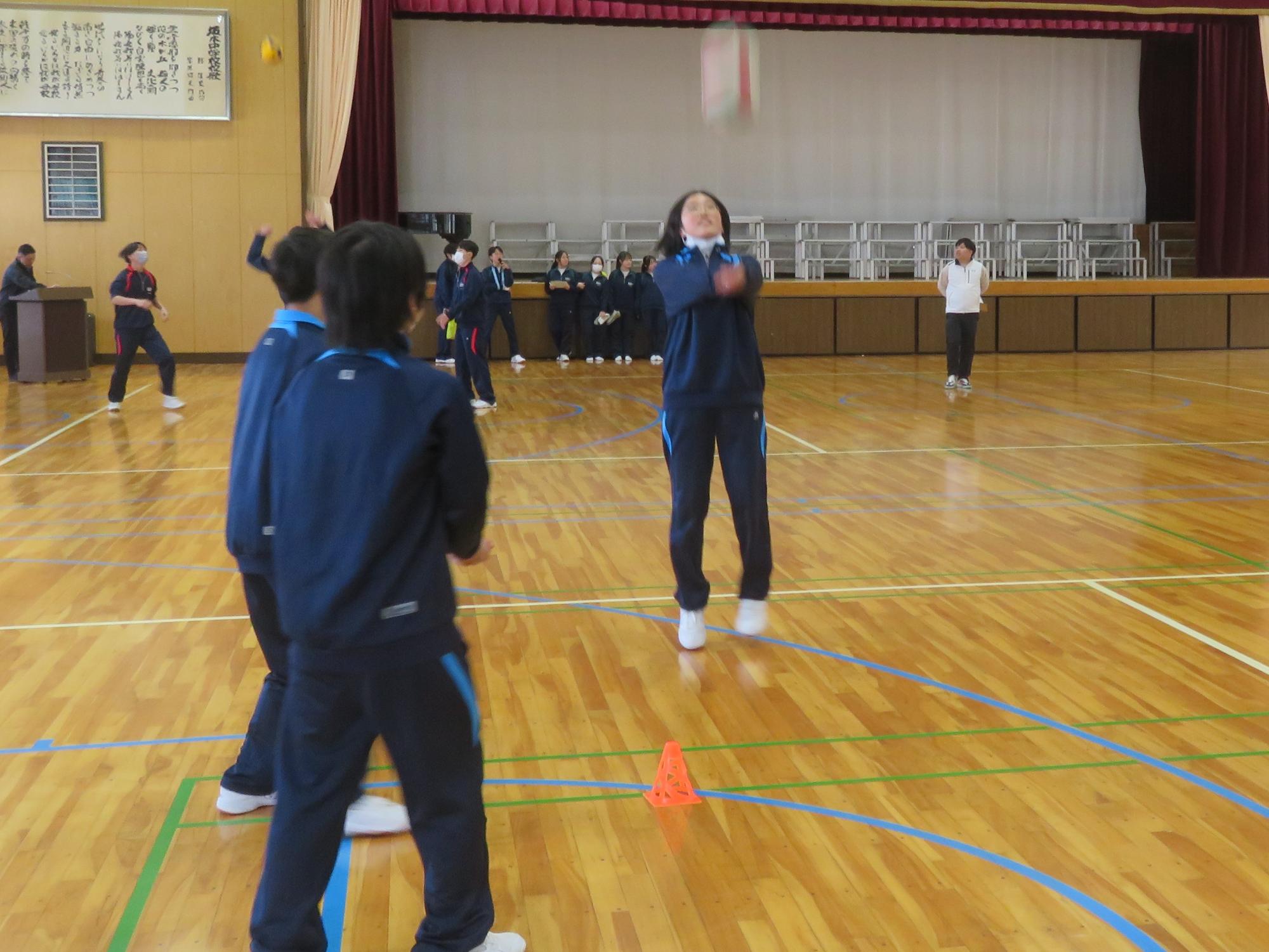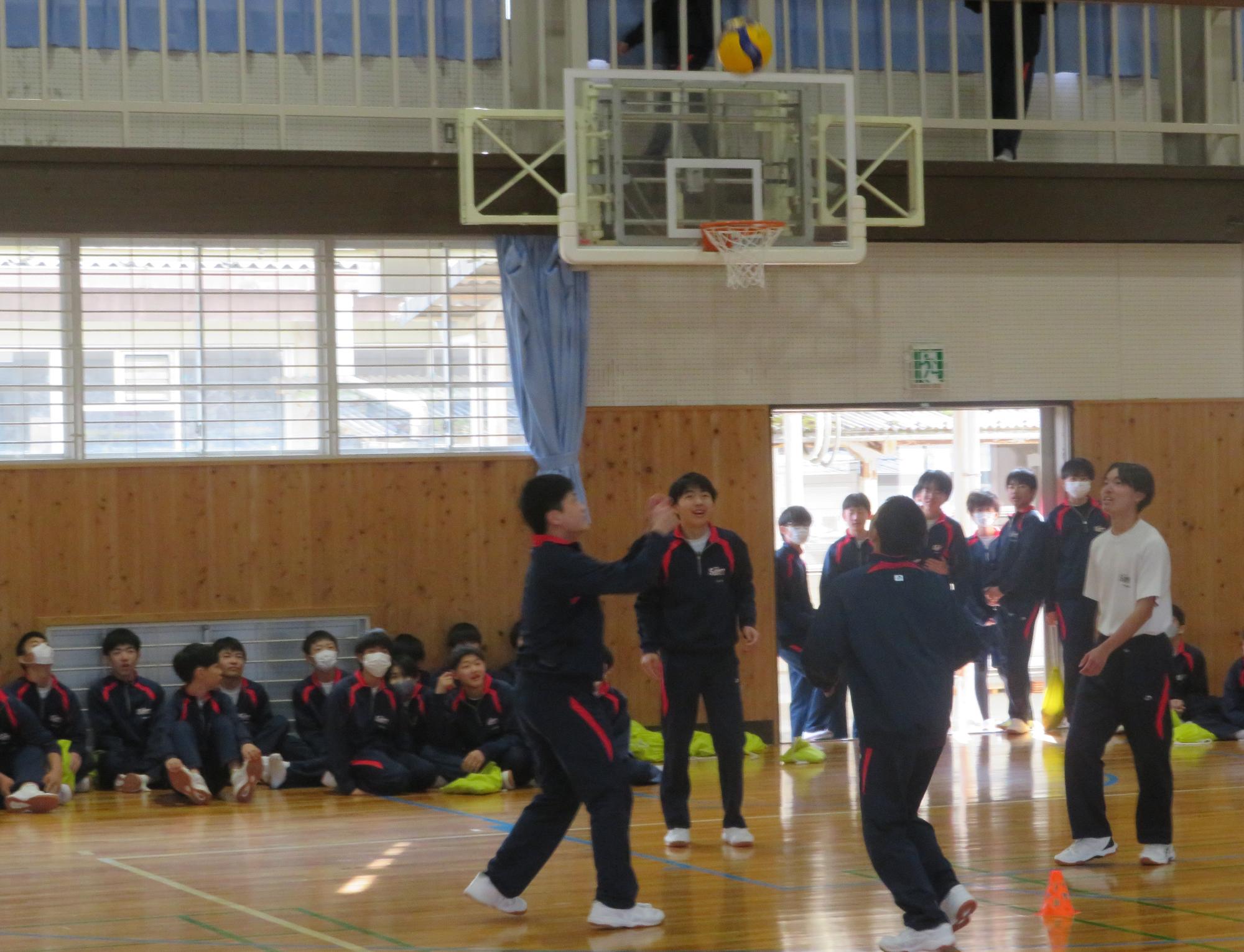 オリンピックに負けない盛り上がりの全校レク大会 更新日:2026年02月16日 保健安全委員会が企画する全校レク大会も今週で最後です。今回はバレーボールの円陣パス競技を企画し、全校生徒に参加を呼びかけました。1年生から3年生までたくさんのチームがエントリーし、本日昼休み、1回戦の競技が行われていました。現在、連日冬季オリンピックがニュースになっていますが、坂中体育館はオリンピックに負けない盛り上がりの昼休みでした。