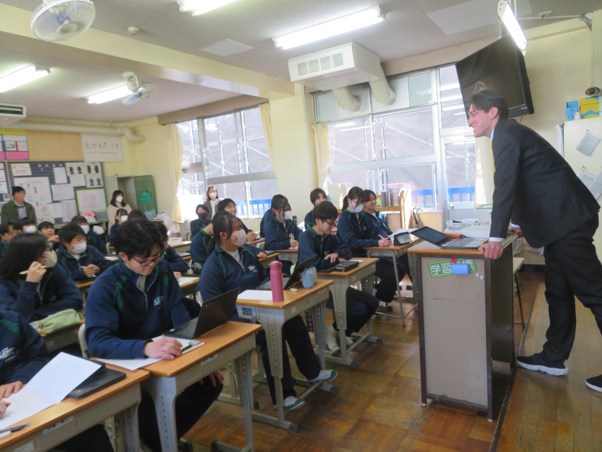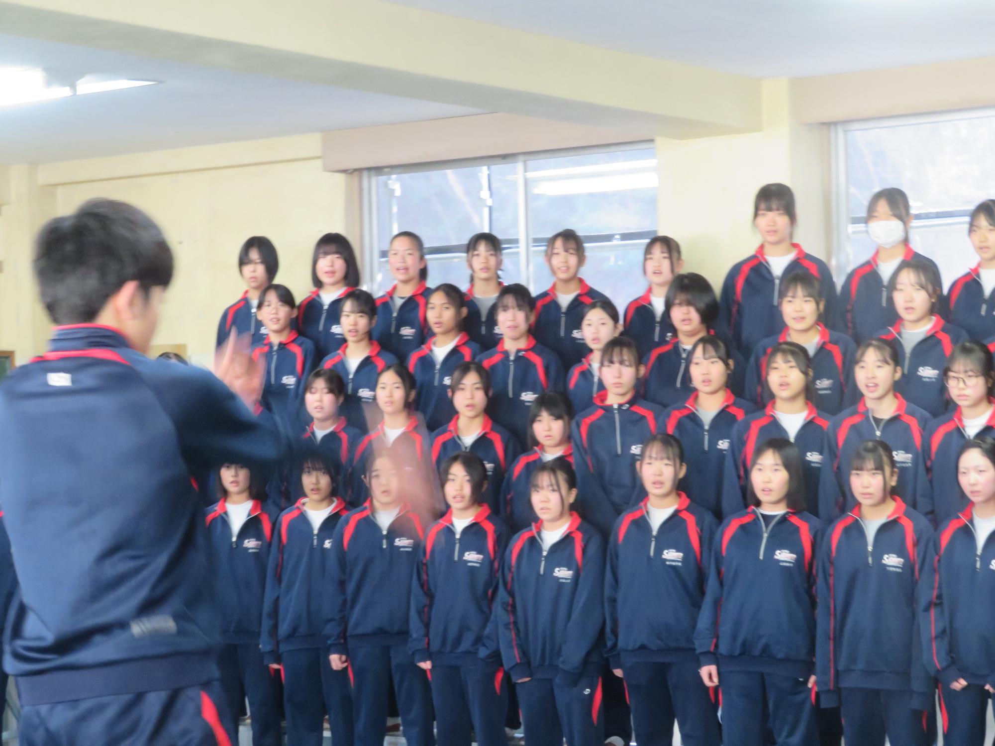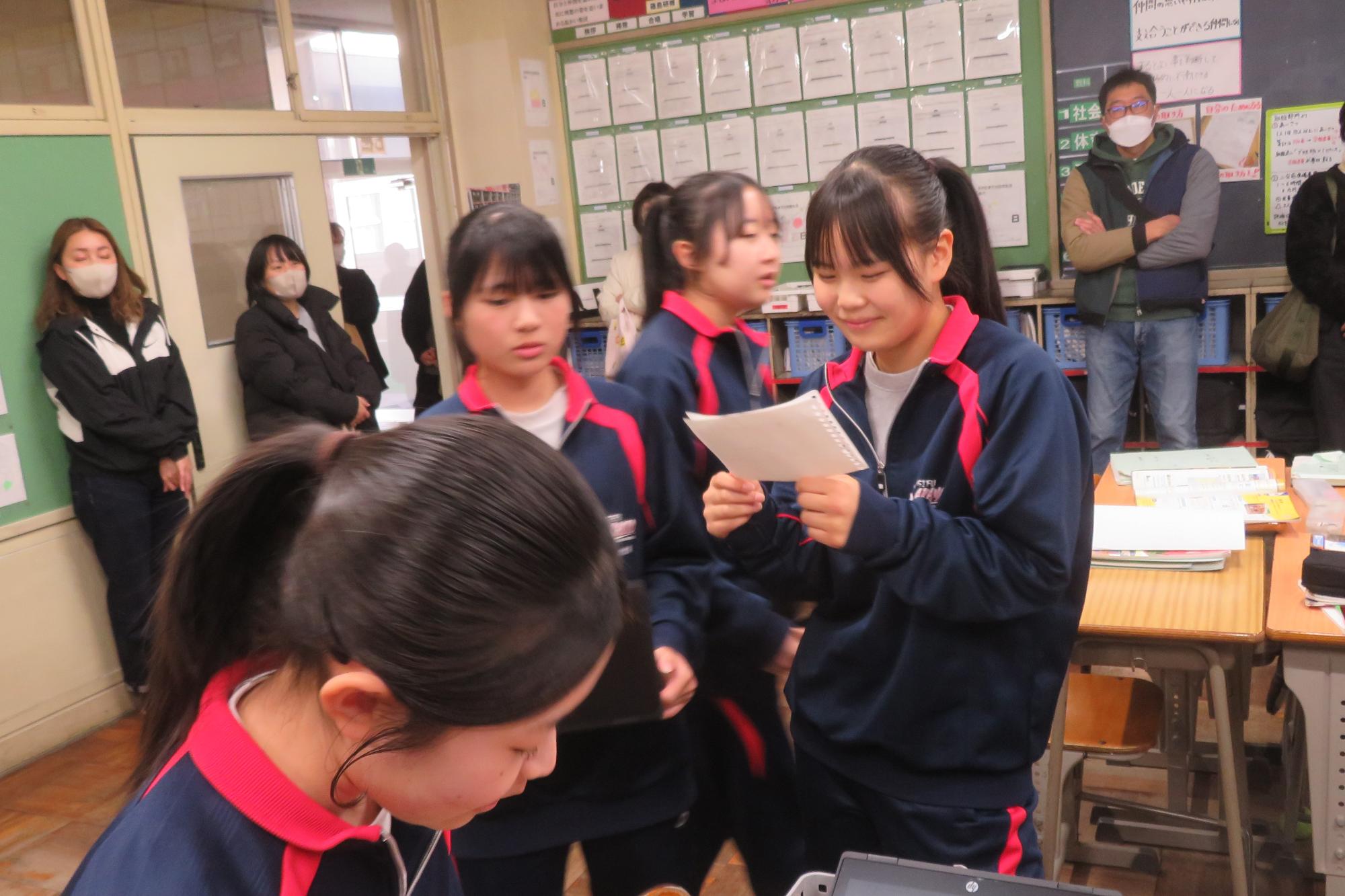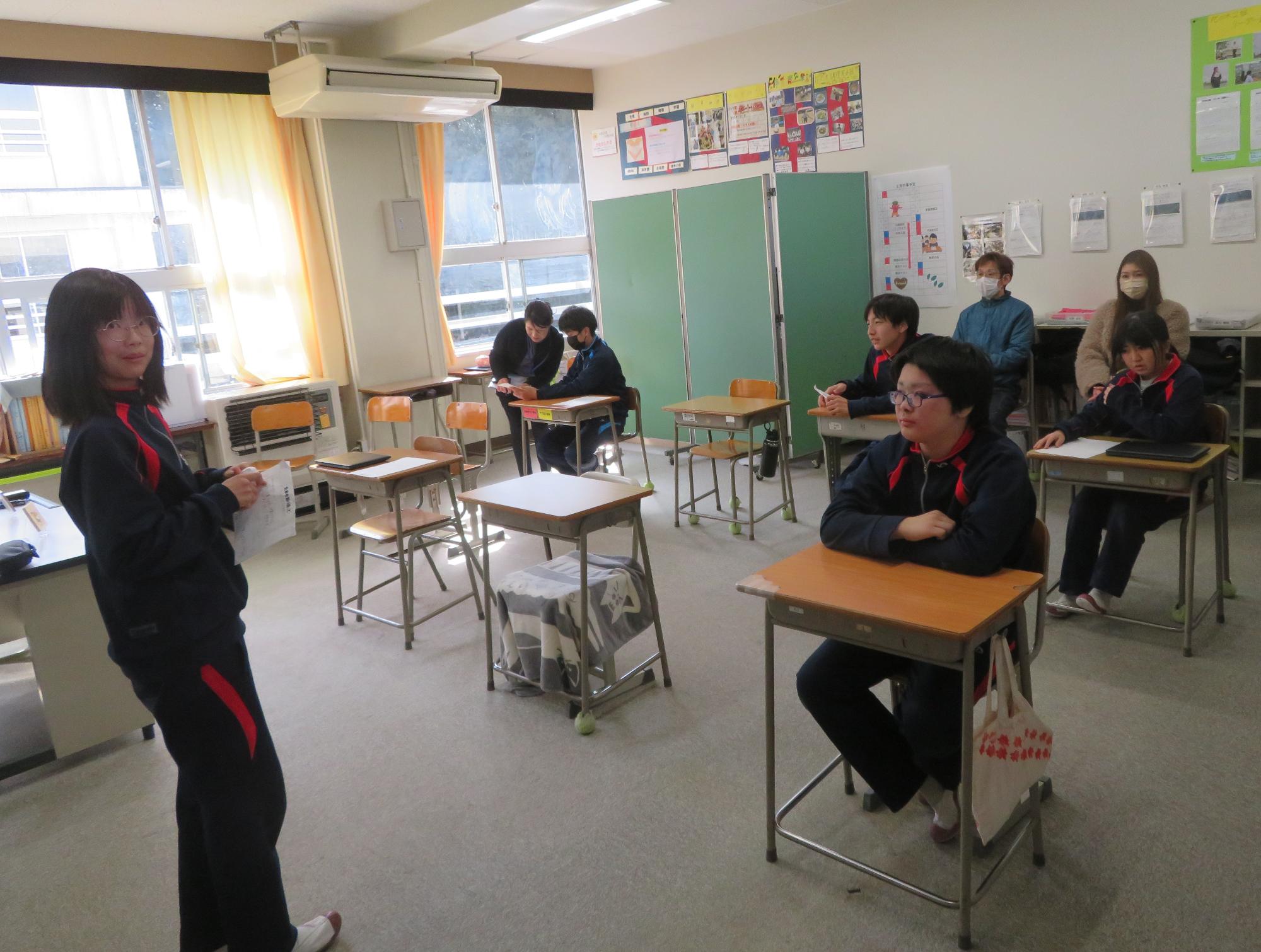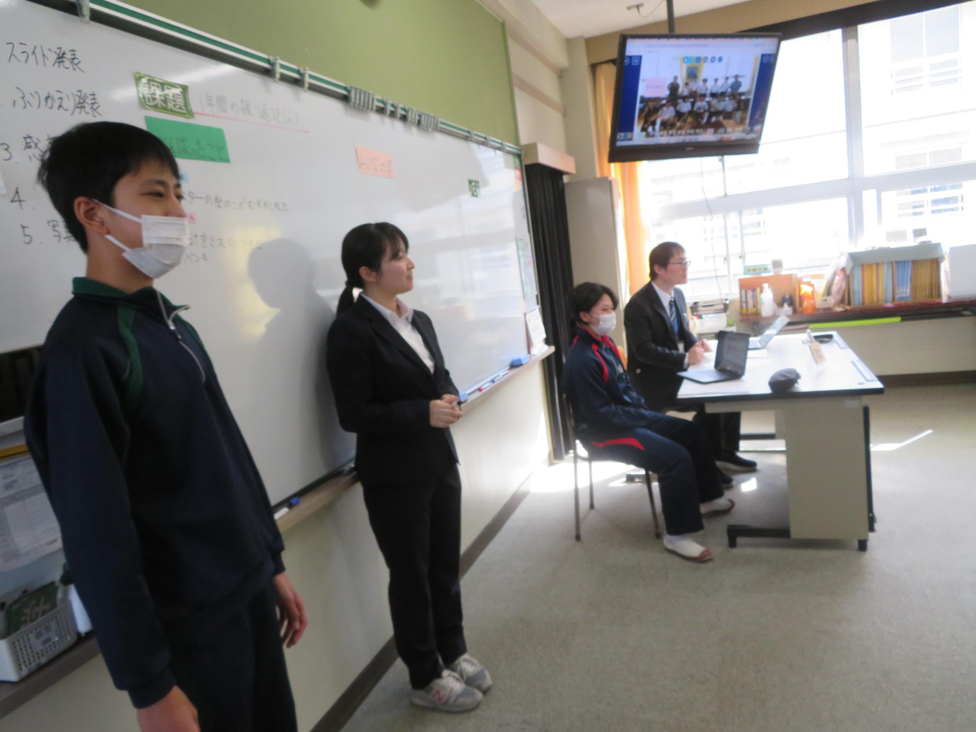 今年度最後の授業参観を全学年で行いました。昼の放送で新江生徒会長が「今日の授業参観では、一年間の自分たちの成長を家の人や地域の人に見てもらおう。」と全校生徒に発信しました。保護者の方の参観で普段より緊張はしたとは思いますが、一生懸命に授業に取り組む場面が随所に見られ、一年間の成長を見ていただくことはできたと強く感じています。授業後の1、2年生の学年合唱を聞いた保護者からは「感動しました。合唱祭の時よりもさらにすごい合唱になっていて驚きました。」「一生懸命に歌う姿にジーンときました。合唱っていいですね。」などたくさんの感想をいただきました。なお3年生は、卒業式で圧倒的な感動を与える合唱を計画しています。