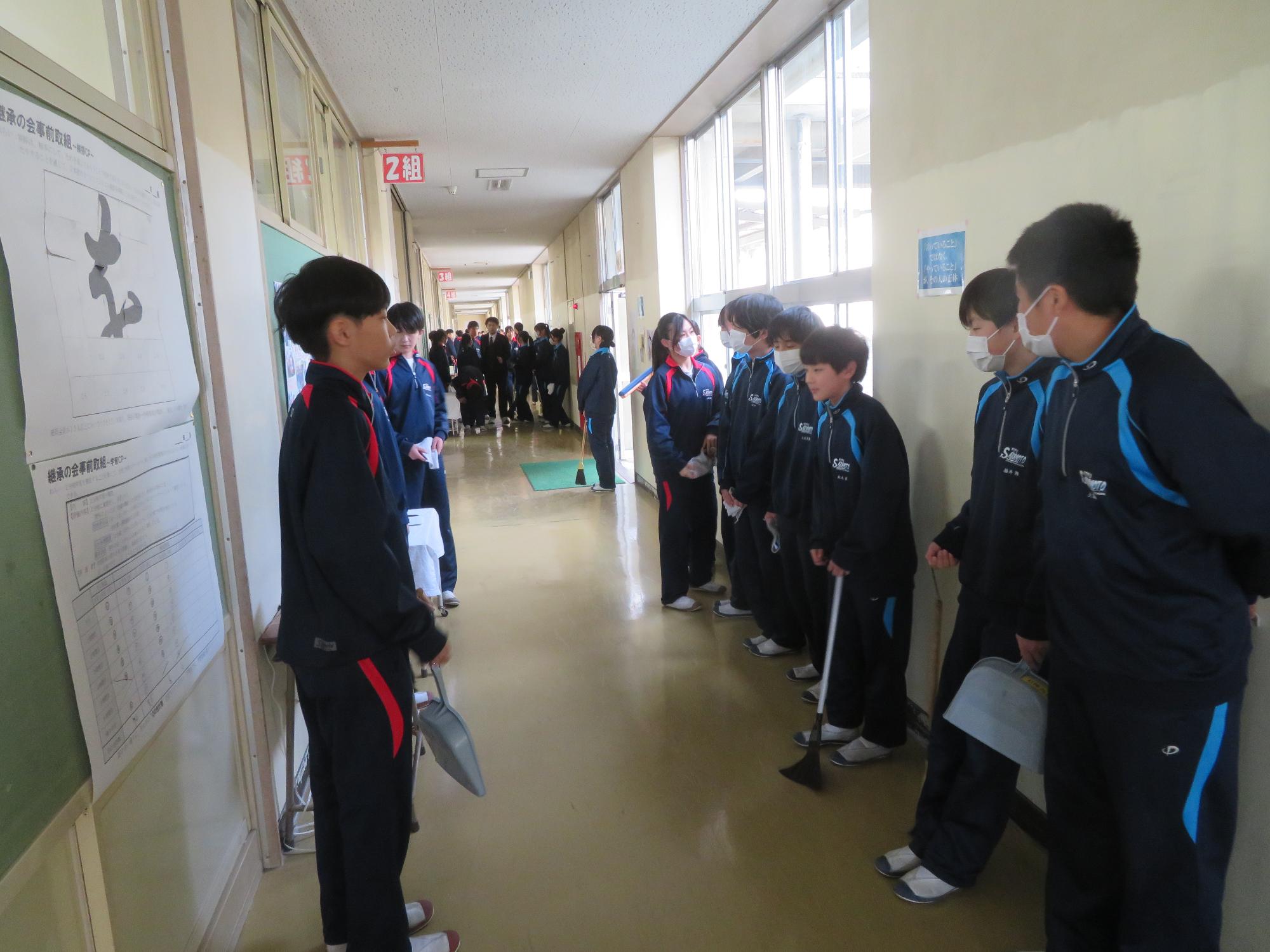 ますます学校生活でBRUSH UP! 更新日:2026年02月20日 今週も坂中生のBRUSH UPの姿は顕在です。朝のあいさつ運動、縦割り掃除など自分たちで決めたことに一生懸命に取り組み、確実に自分自身をBRUSH UPしています。仲間とともに身に付けた力を、一人でも発揮できる自分を創りだし、進学、進級の力強い一歩につなげていくことを願っています。