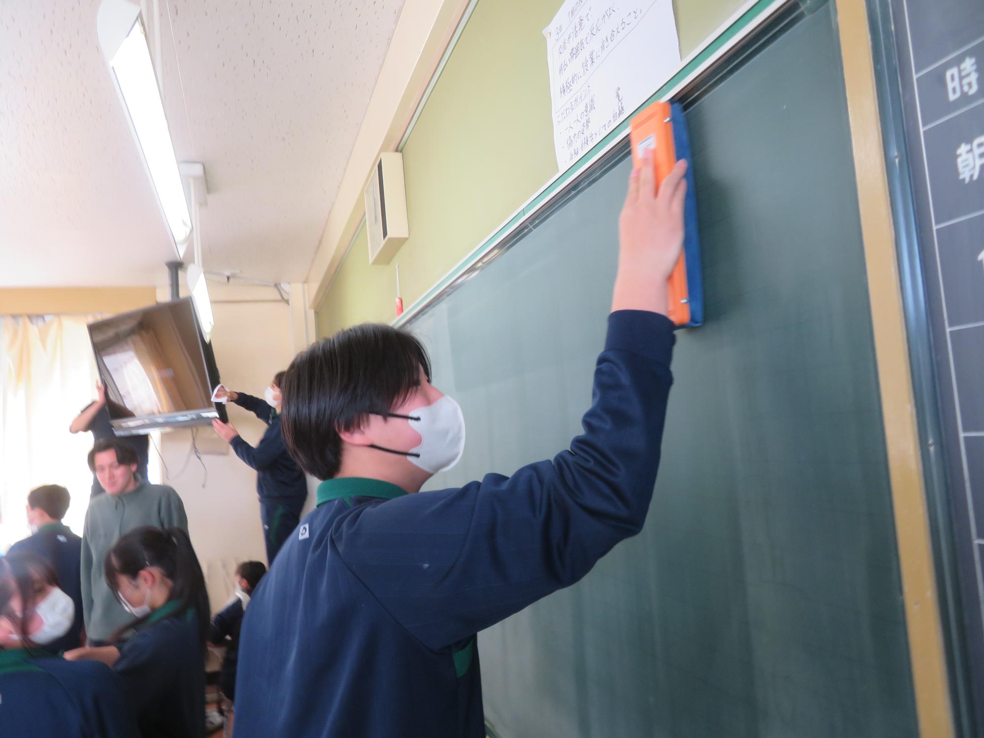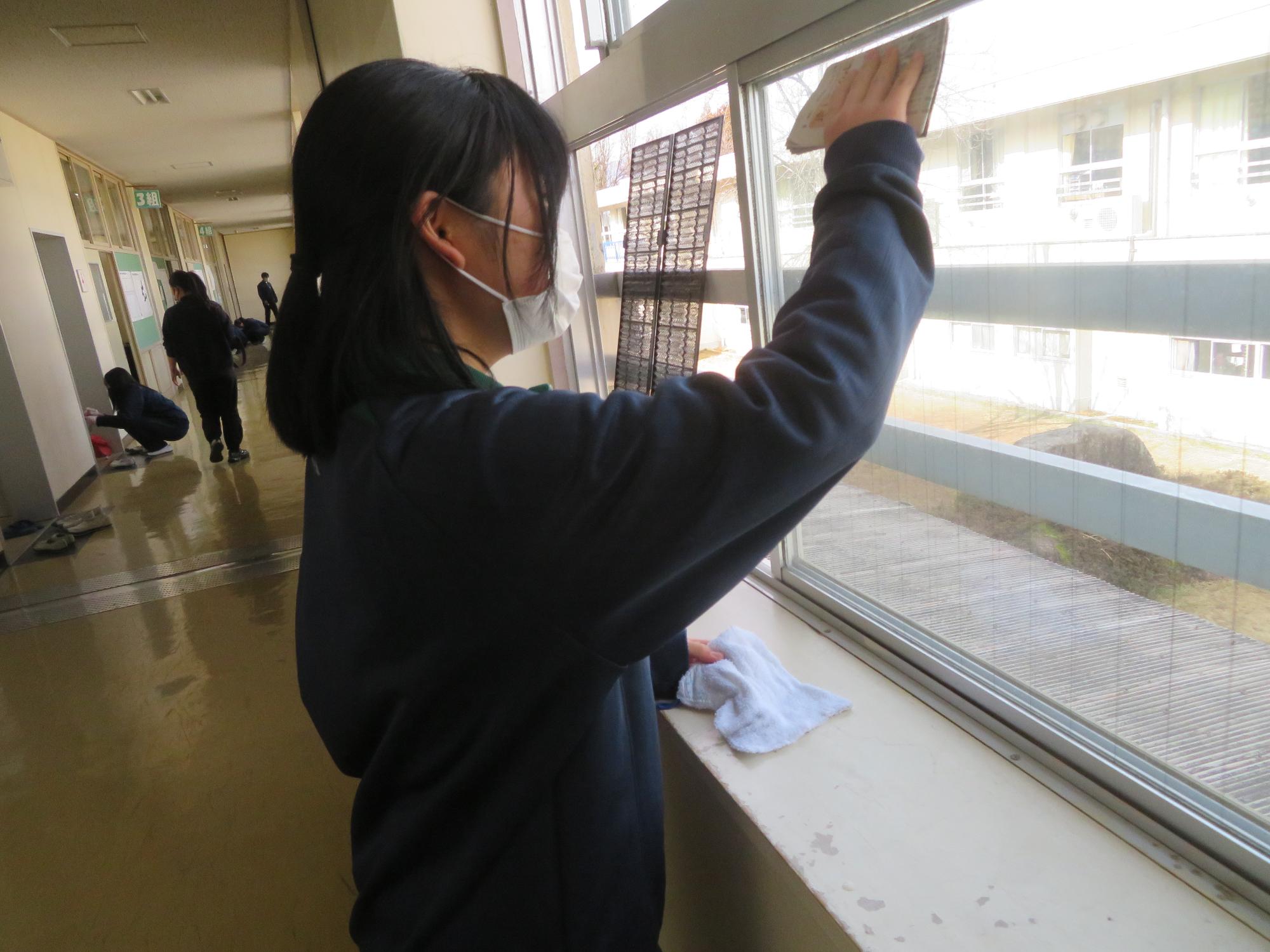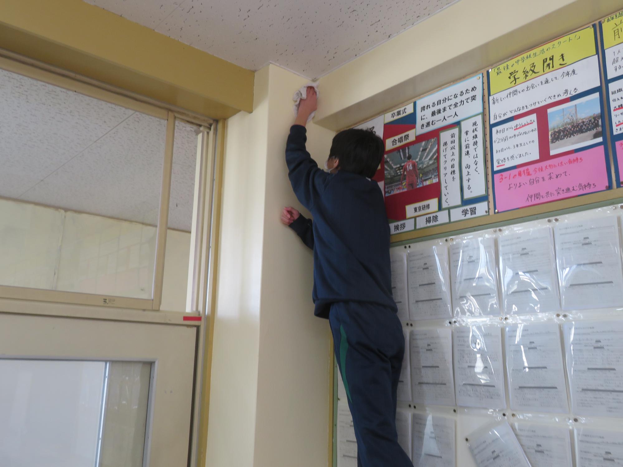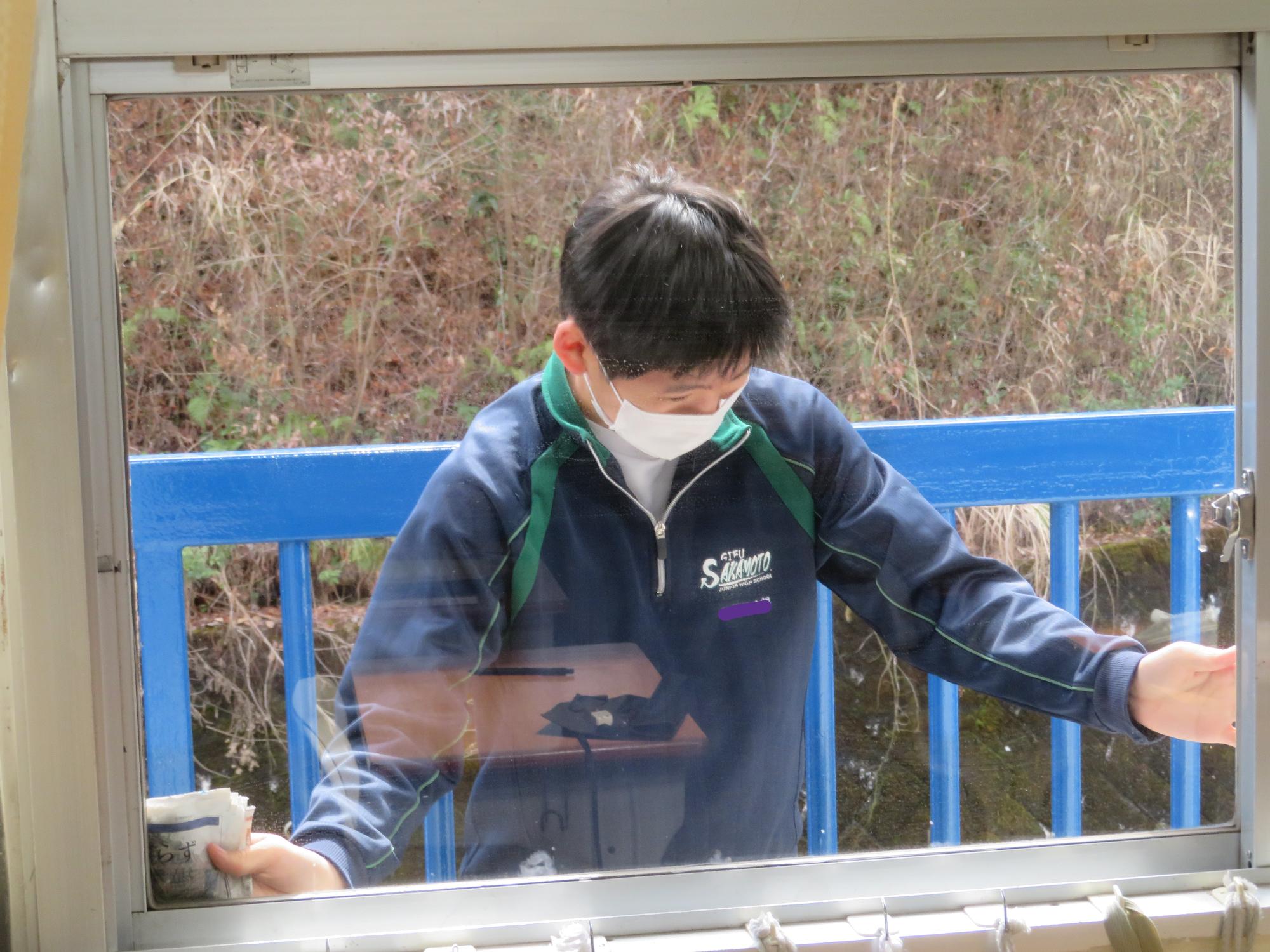 「坂中校舎、ありがとう!」 更新日:2026年02月25日 「坂中校舎、ありがとう!」。3年生は学校に登校する日はあと8日。今日は3年生全員で、1時間、坂中校舎の清掃活動を行ってくれました。普段なかなかできないガラスや壁の汚れはもちろん、扇風機やエアコンの中、ベランダなど3年生のフロワーを中心に、仲間とともに隅々まで清掃活動を行ってくれました。どの生徒も表情がよく、やらされているという感じではなく、「坂中校舎、ありがとう」という感謝を込めた気持ちが伝わってきました。