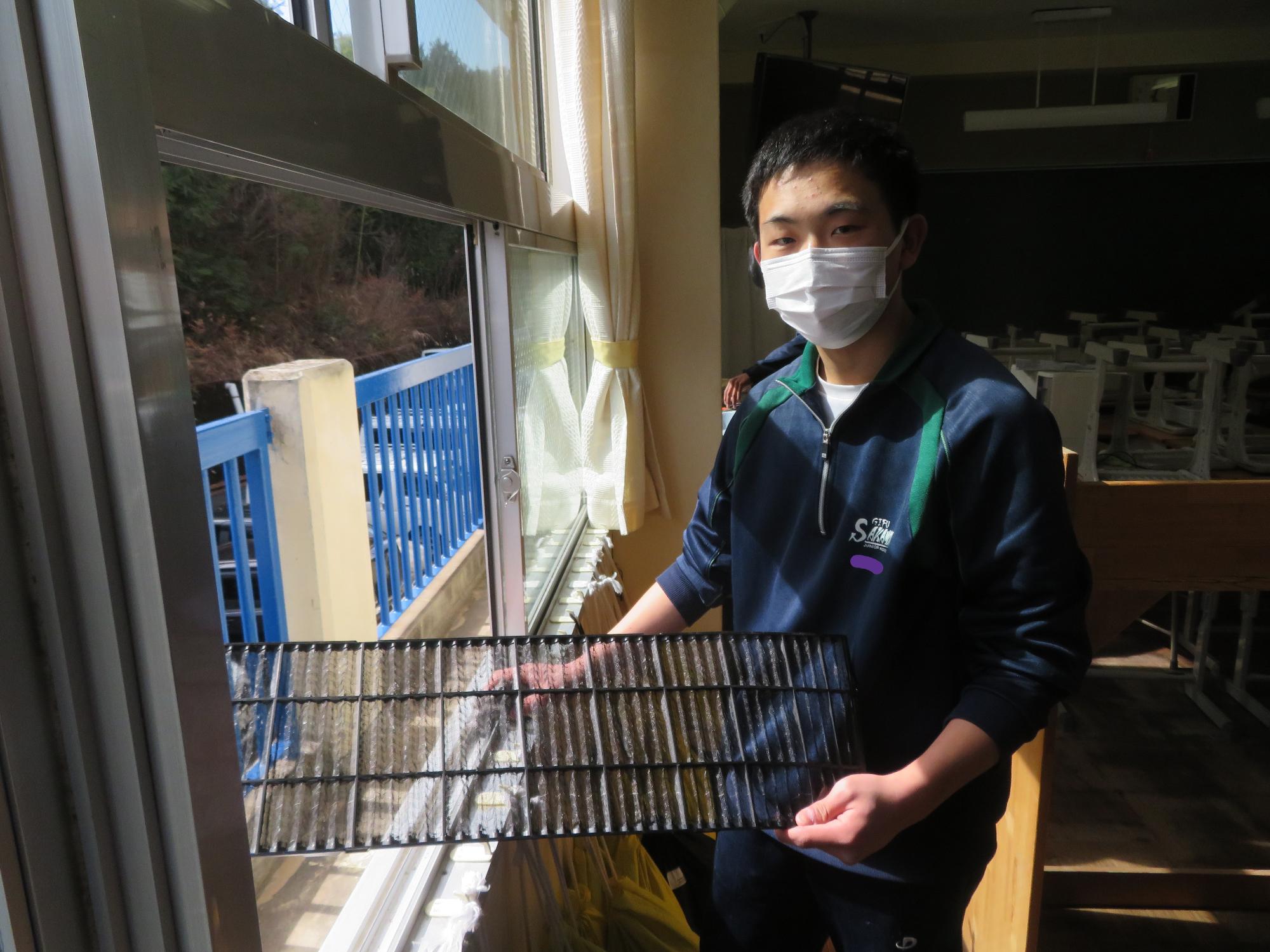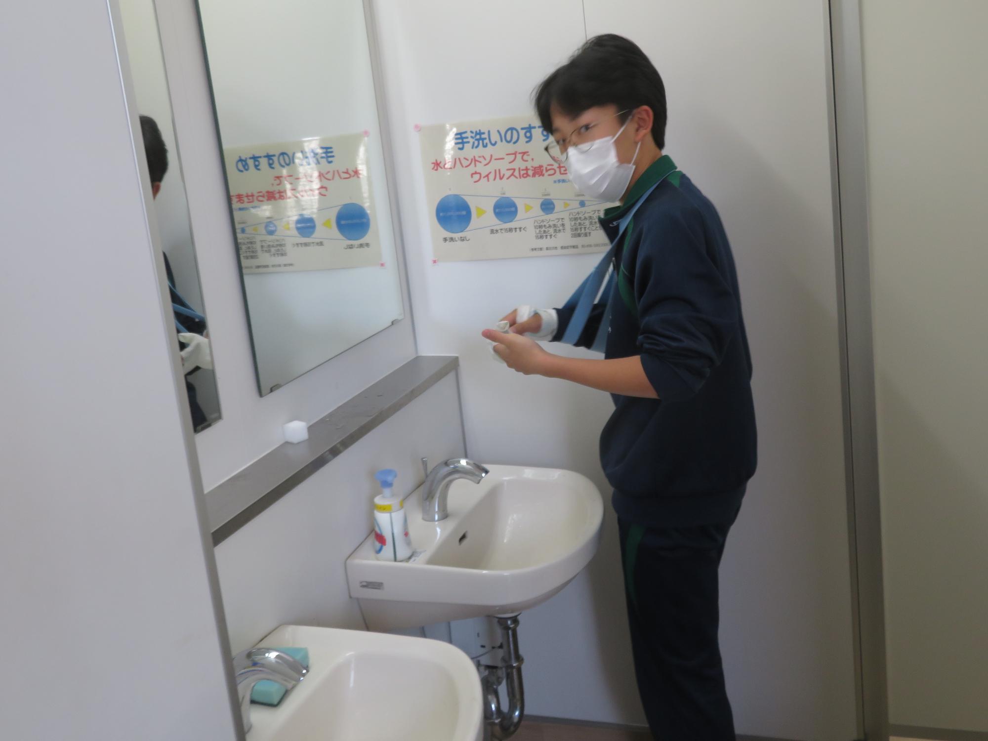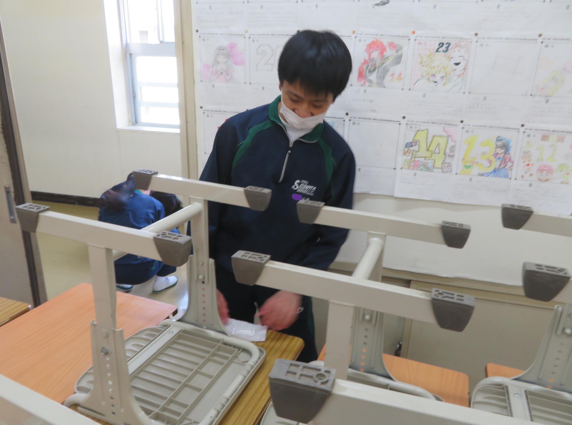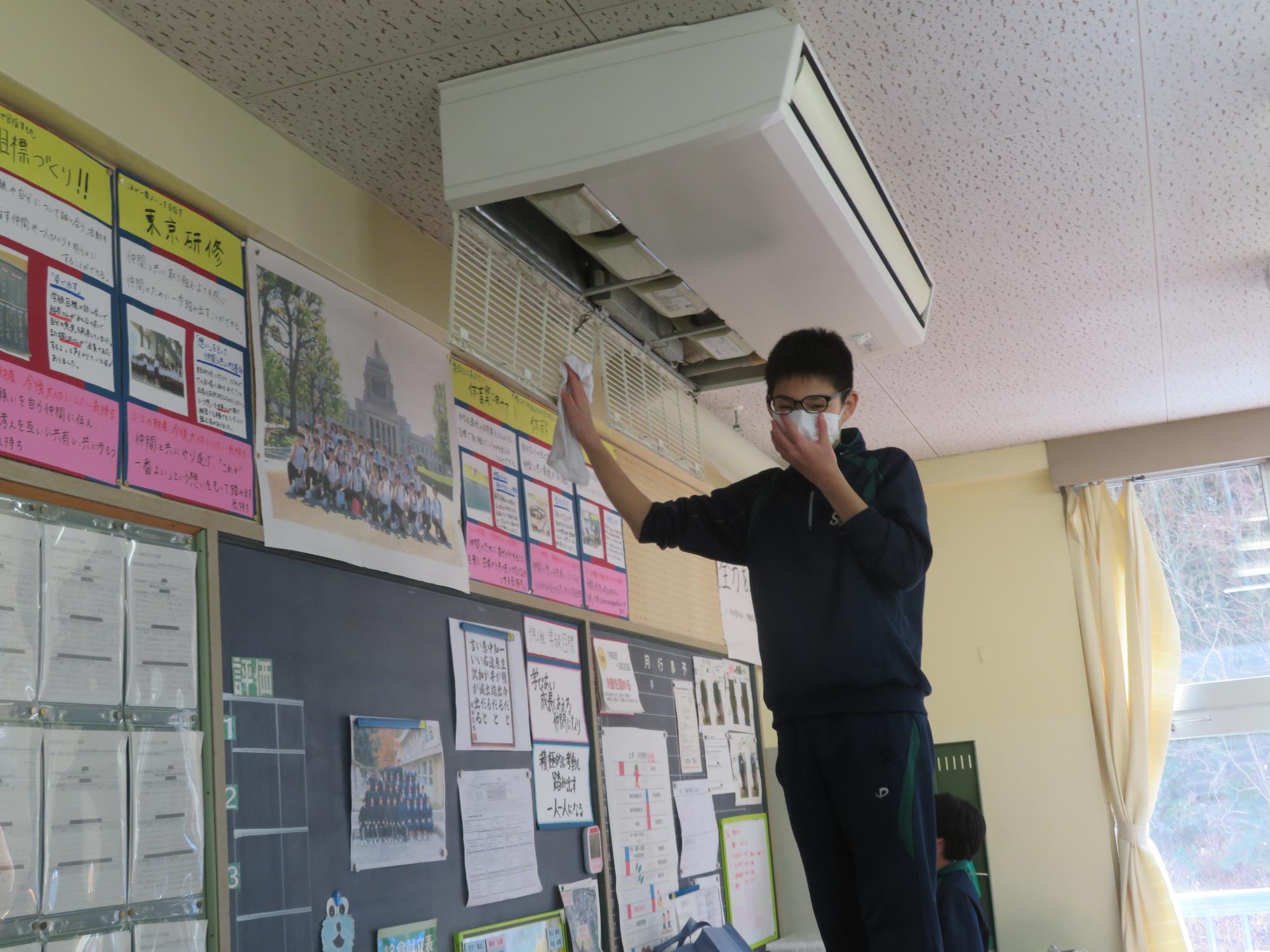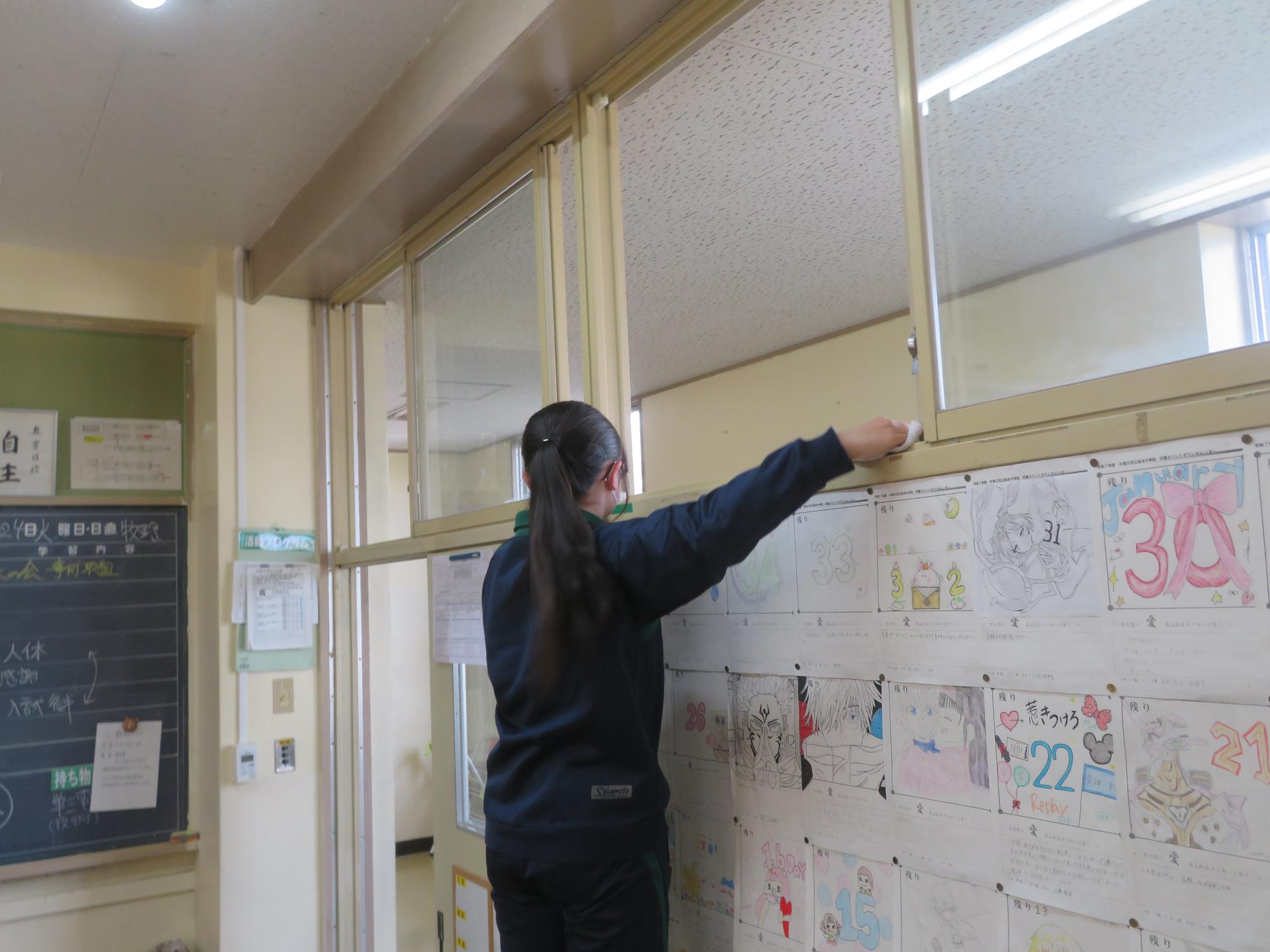 「坂中校舎、ありがとう!」 更新日:2026年02月25日 「坂中校舎、ありがとう!」。3年生は学校に登校する日はあと8日。今日は3年生全員で、1時間、坂中校舎の清掃活動を行ってくれました。普段なかなかできないガラスや壁の汚れはもちろん、扇風機やエアコンの中、ベランダなど3年生のフロワーを中心に、仲間とともに隅々まで清掃活動を行ってくれました。どの生徒も表情がよく、やらされているという感じではなく、「坂中校舎、ありがとう」という感謝を込めた気持ちが伝わってきました。