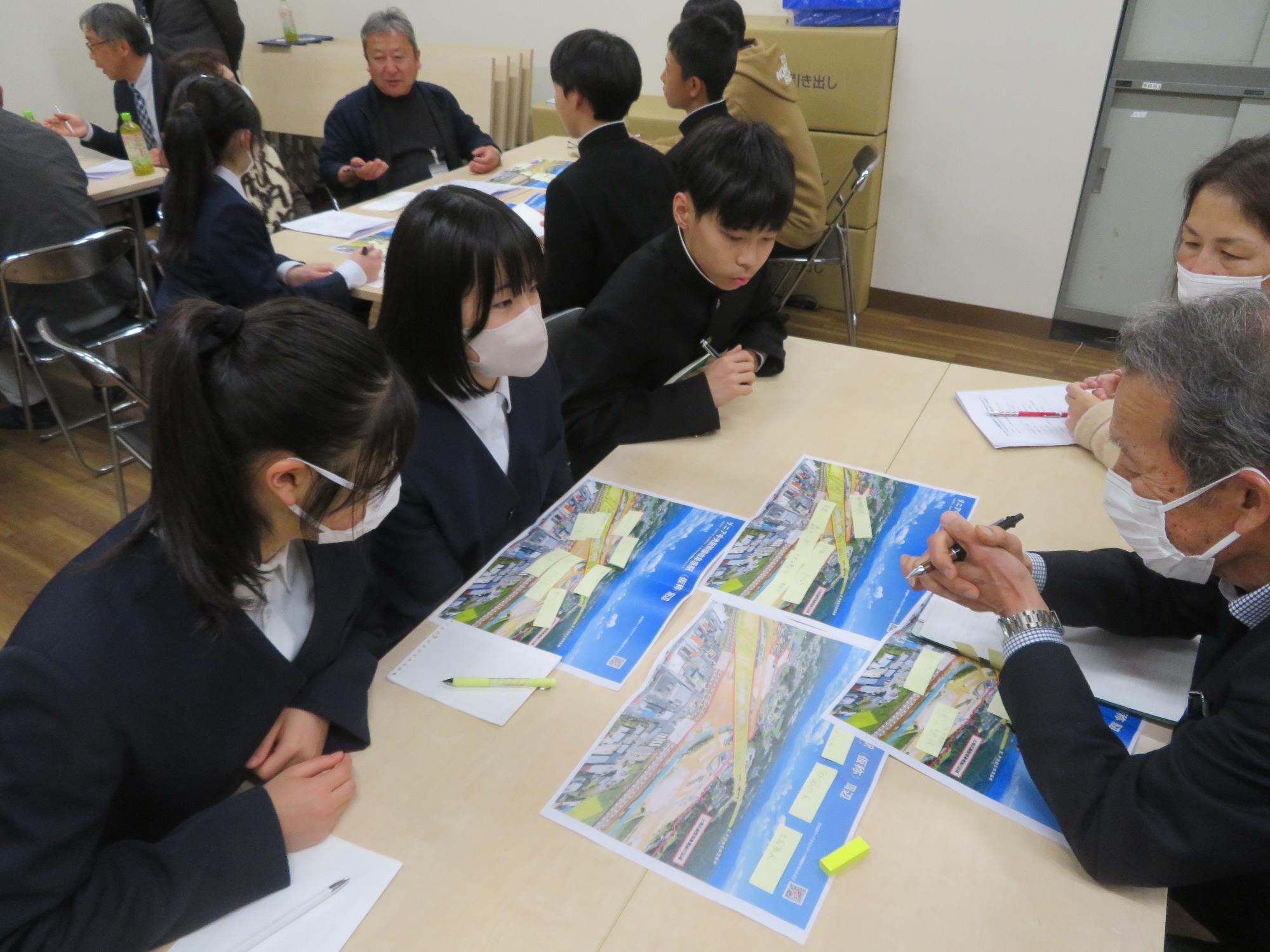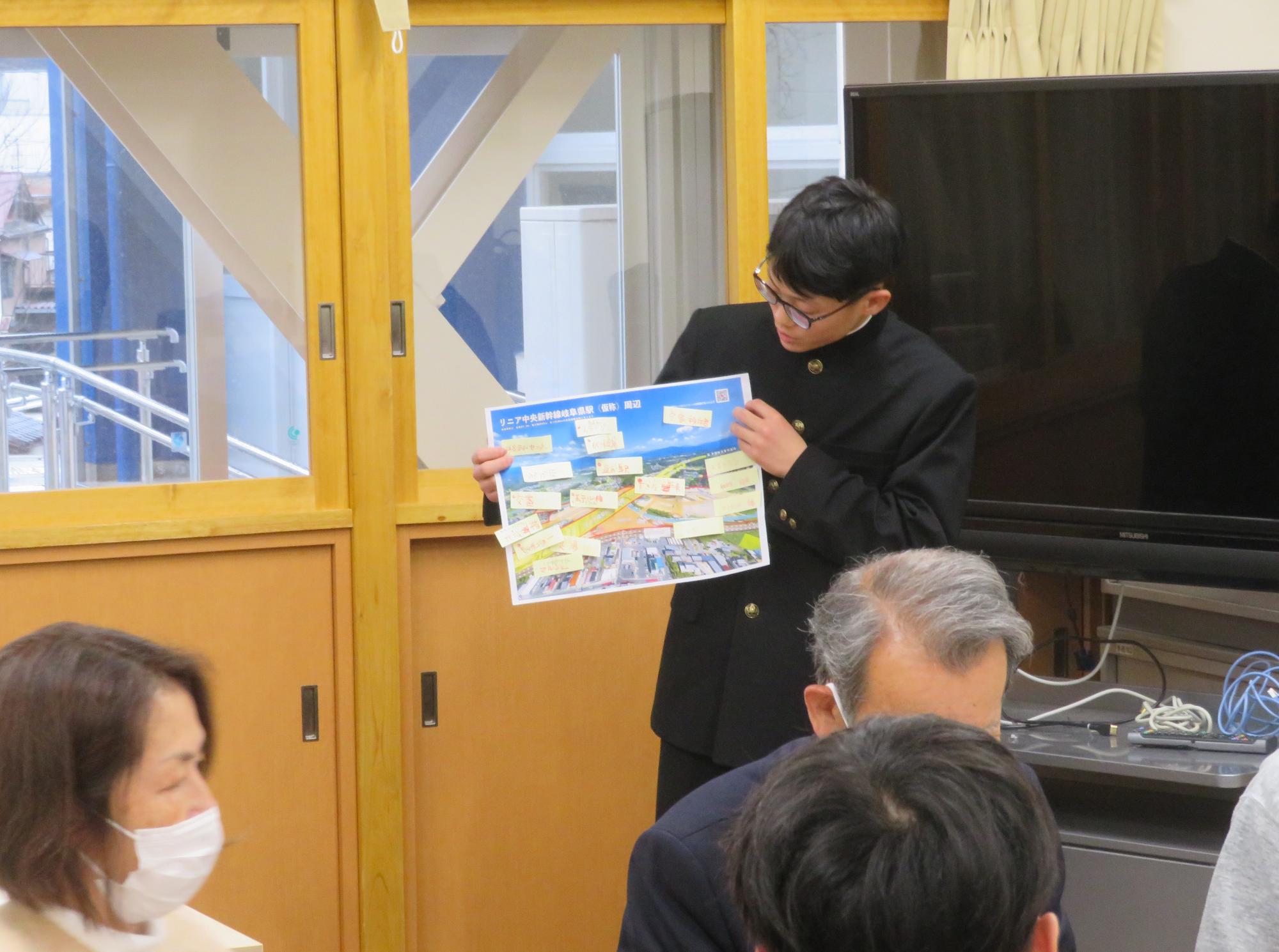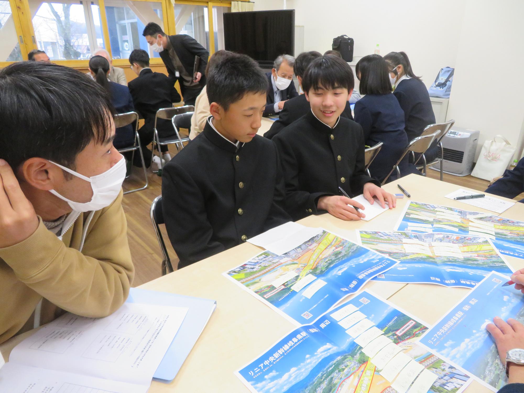 本日、今年度最後の学校運営協議会が行われました。学校運営協議会の方々の提案により、「坂本駅周辺の将来の街づくりについて」というテーマで、19名の学校運営協議会の方と坂本中2年生の代表生徒12名とで話し合い(熟議)を行いました。「リニア開通後、人を呼ぶために魅力のあるイベント(中山道マラソンや名物フェス)を開催するとよい。」や、「人が集まる施設は作りたいけれど、中津川の自然も大切にしたい。」「坂本中としても気軽に発表できるステージが駅前にあるとよい。」など、将来の街づくりに向けての意見を地域の方々に発信していました。将来、リニアが開通した後、坂本地区を担うのは生徒たちです。坂本地区の将来について考えるというよい機会を与えていただくなど、とても有意義な熟議でした。