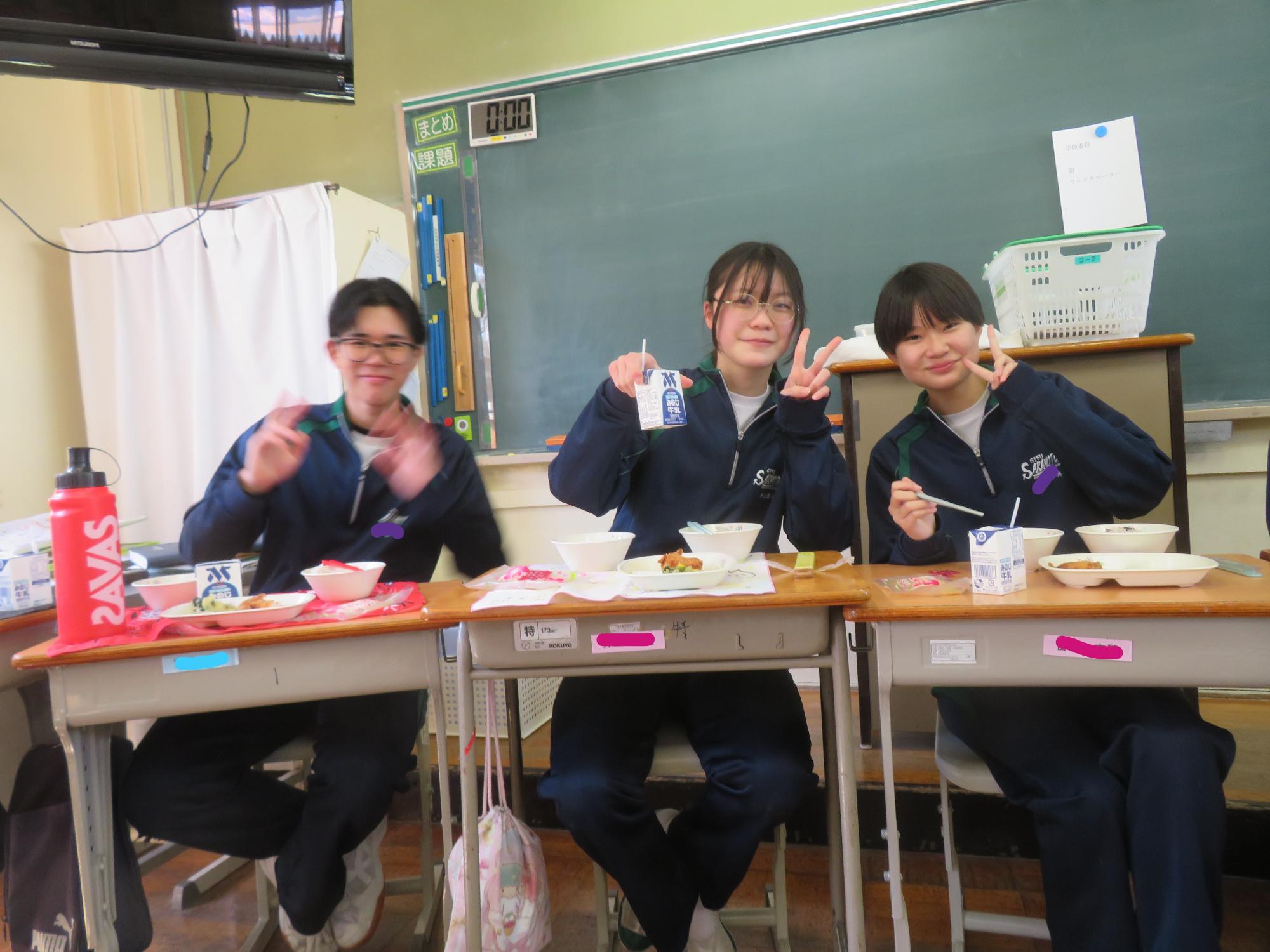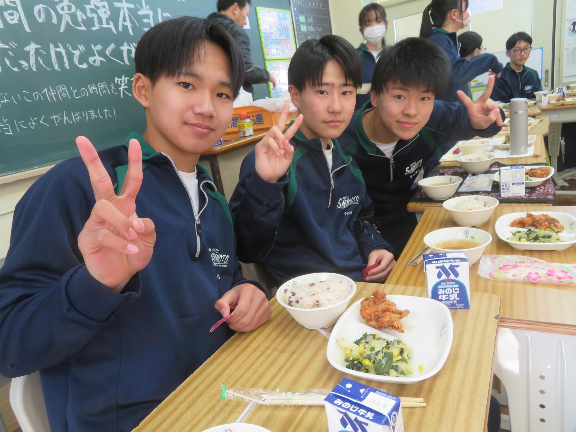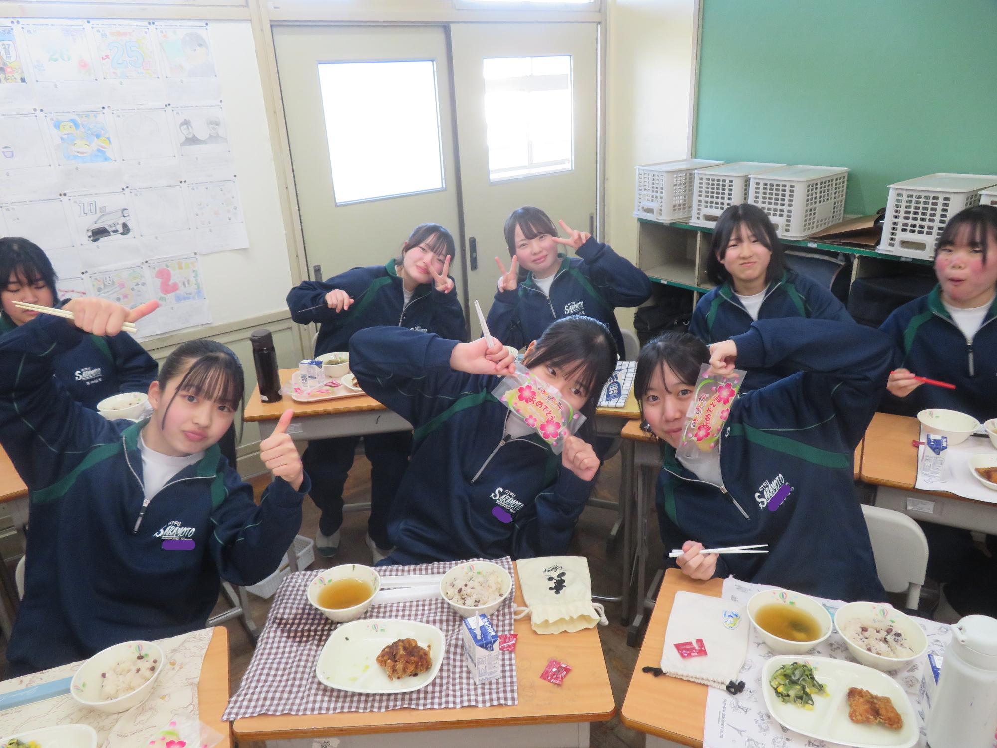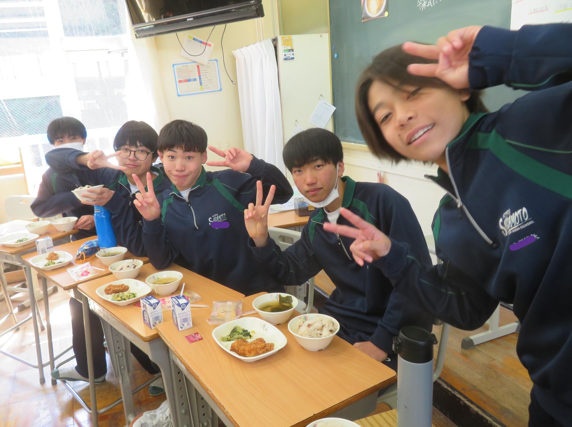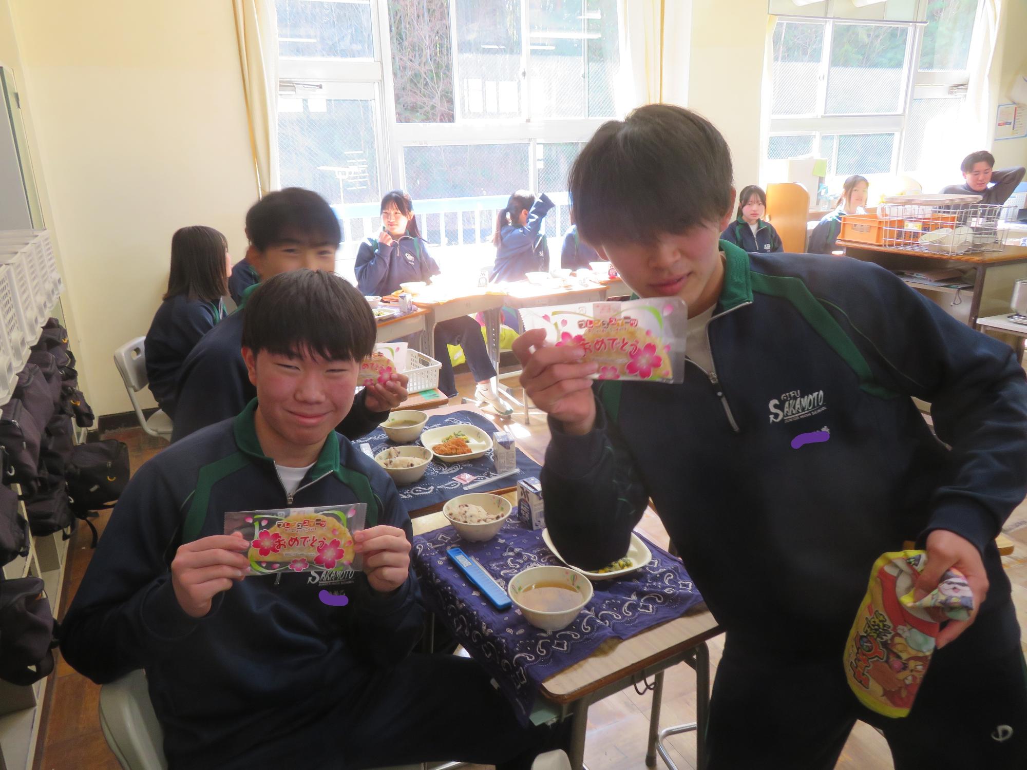 いよいよ3年生 最後の学校給食! 更新日:2026年03月05日 3年生は今日が最後の給食です。9年間の最後の給食は、どのクラスも輪になって、全員の顔を見ながら食べていました。お祝いの赤飯とチキンカツを味わいながら、最後の給食を惜しみながら食べていました。最後に卒業のお祝いのクレープを「いよいよこれを食べてしまったら卒業間近だね。」とじっーと見つめている姿がとっても印象的でした。とってもよく食べてくれた3年生もいよいよ卒業です。