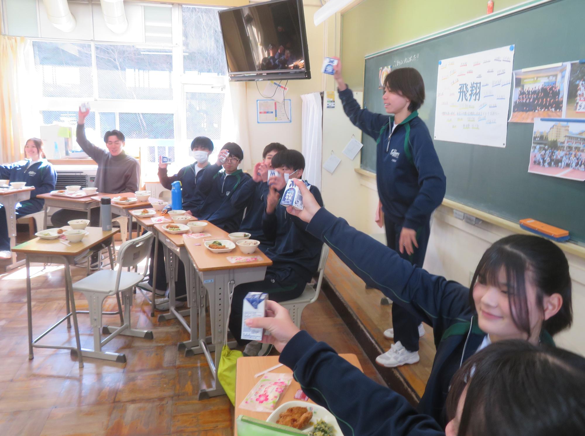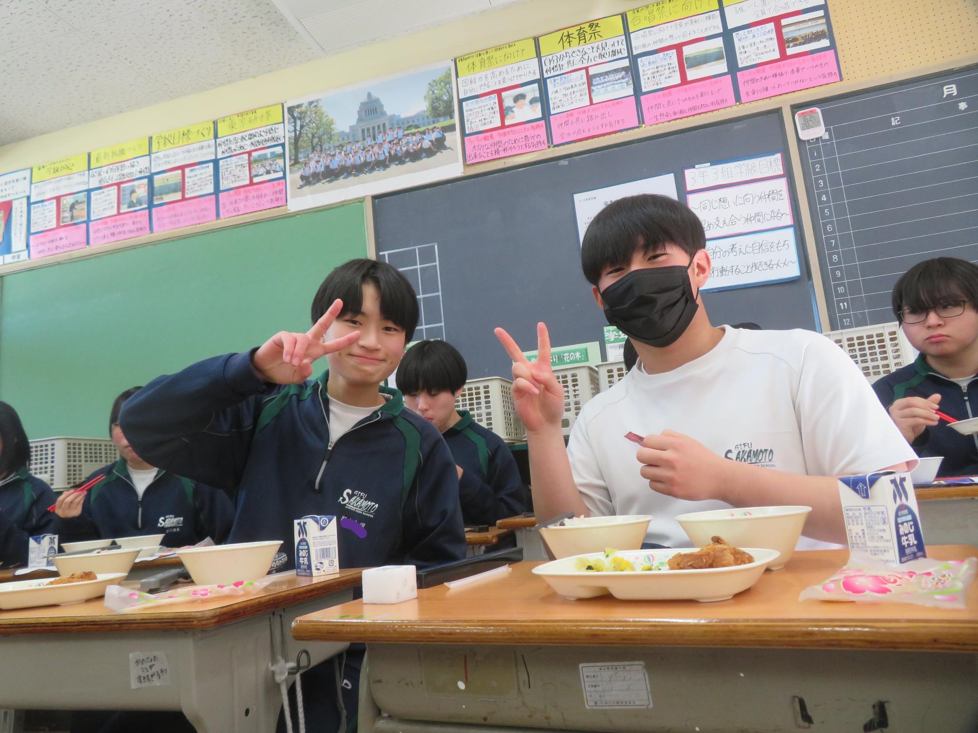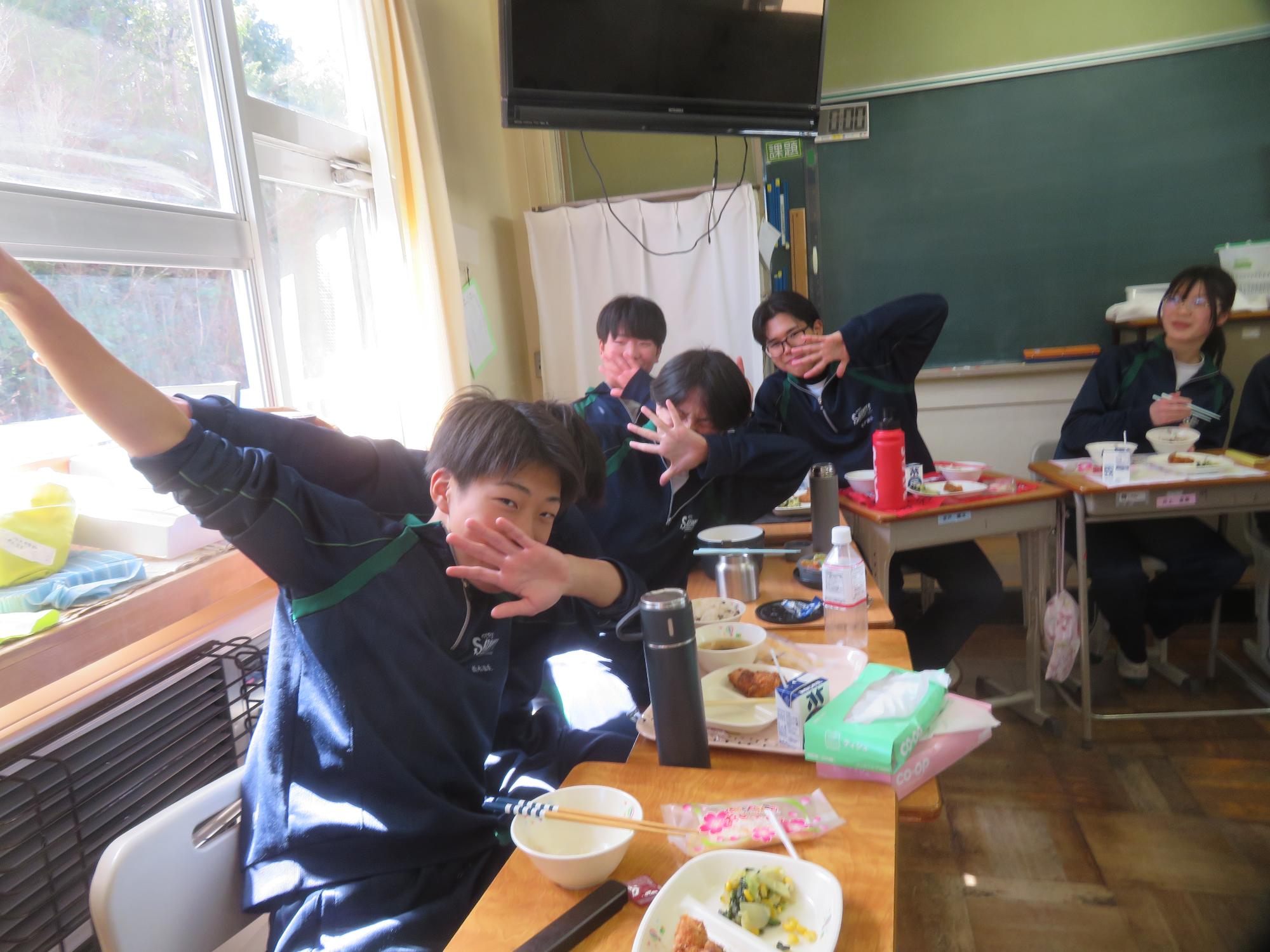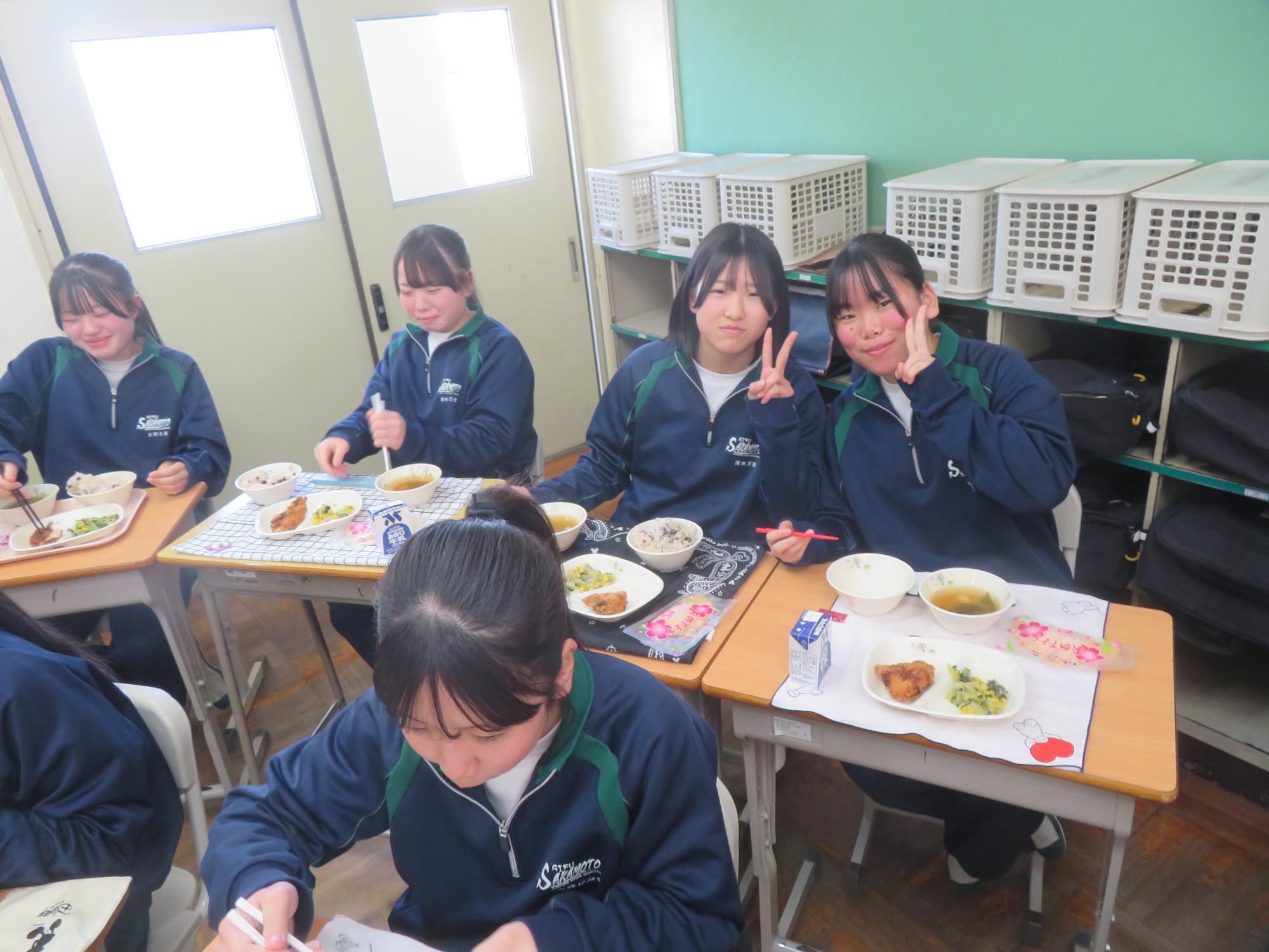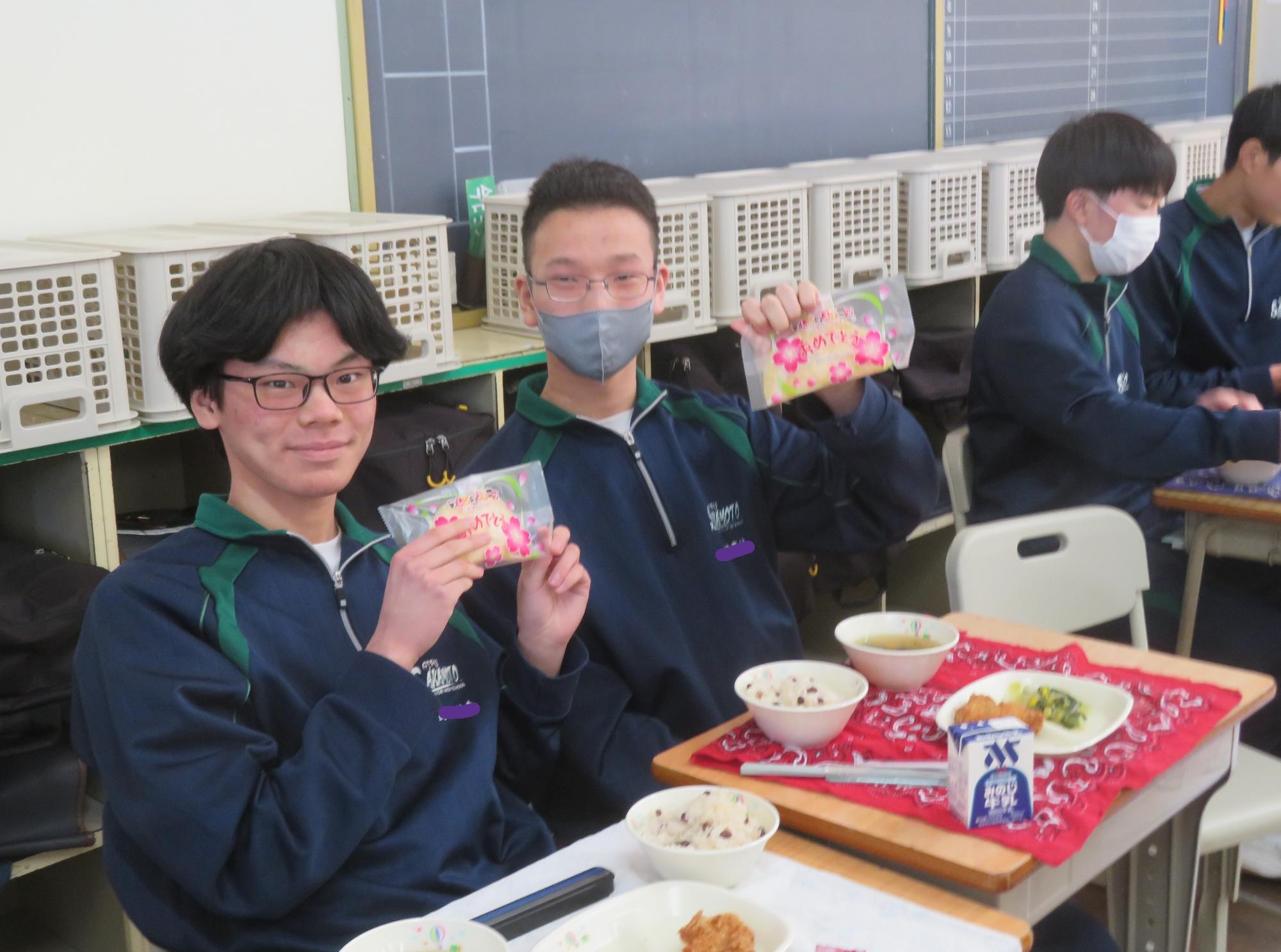 いよいよ3年生 最後の学校給食! 更新日:2026年03月05日 3年生は今日が最後の給食です。9年間の最後の給食は、どのクラスも輪になって、全員の顔を見ながら食べていました。お祝いの赤飯とチキンカツを味わいながら、最後の給食を惜しみながら食べていました。最後に卒業のお祝いのクレープを「いよいよこれを食べてしまったら卒業間近だね。」とじっーと見つめている姿がとっても印象的でした。とってもよく食べてくれた3年生もいよいよ卒業です。