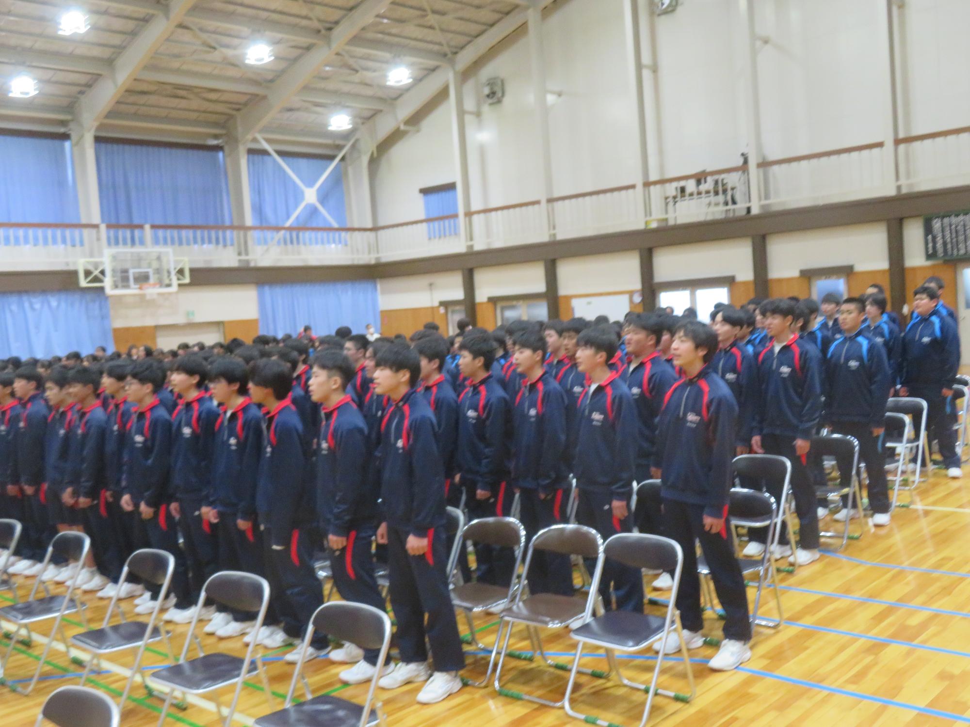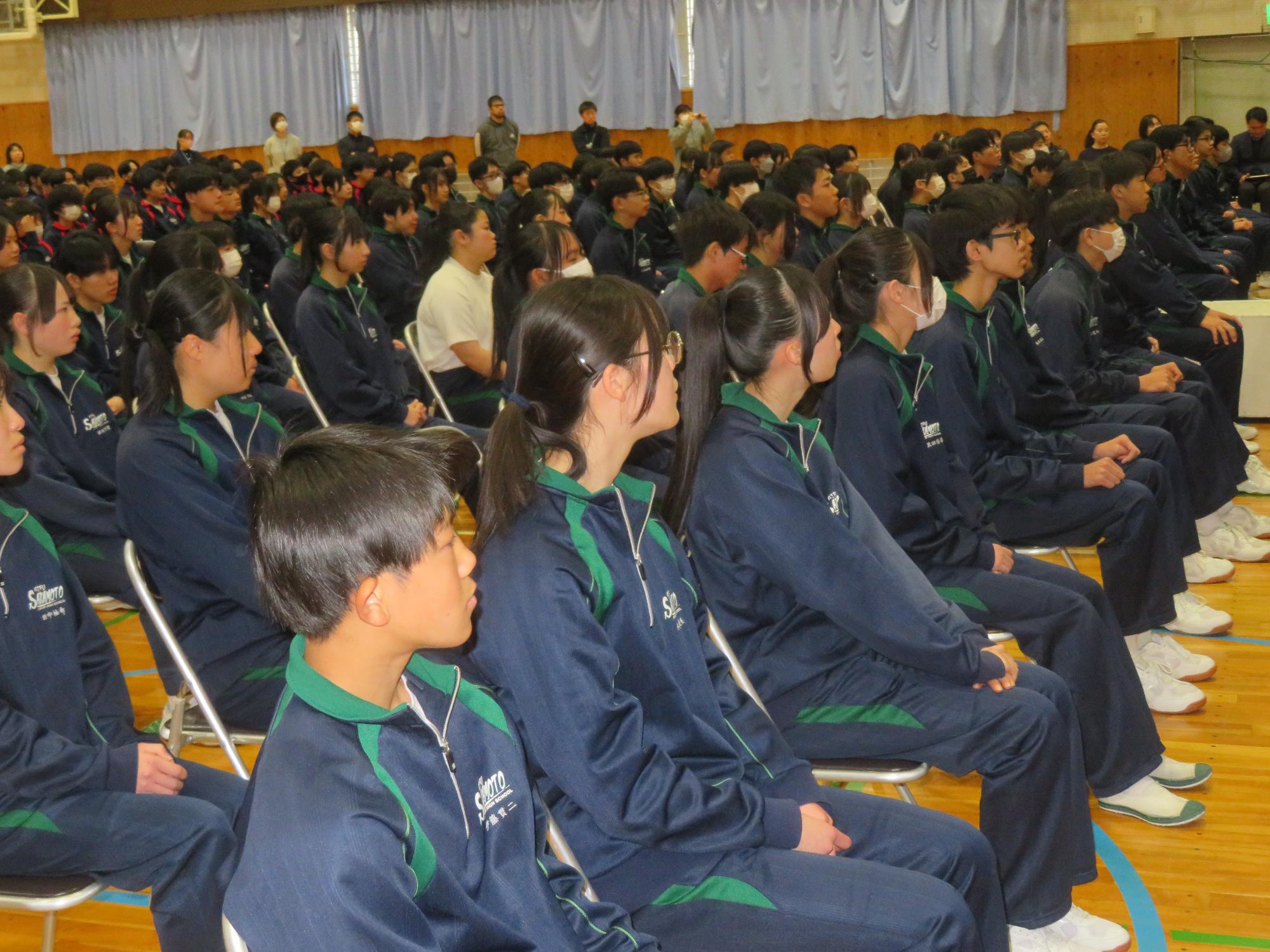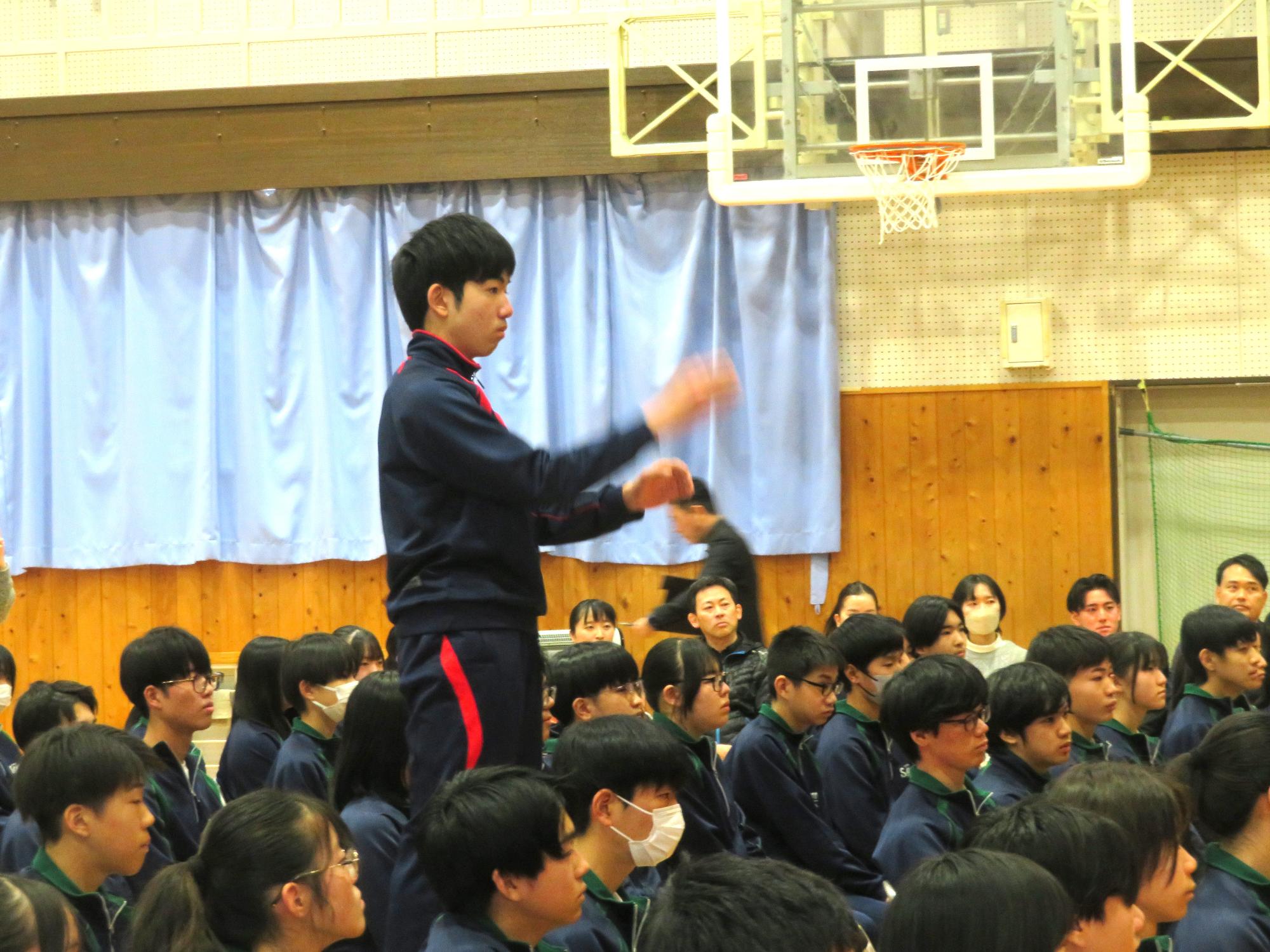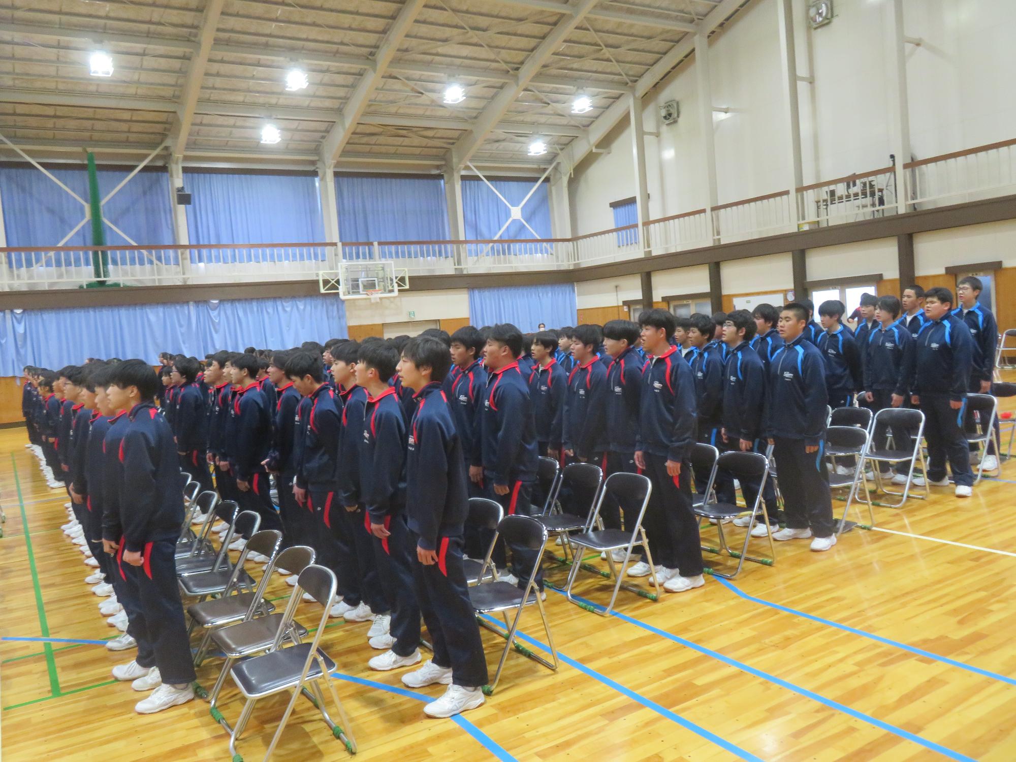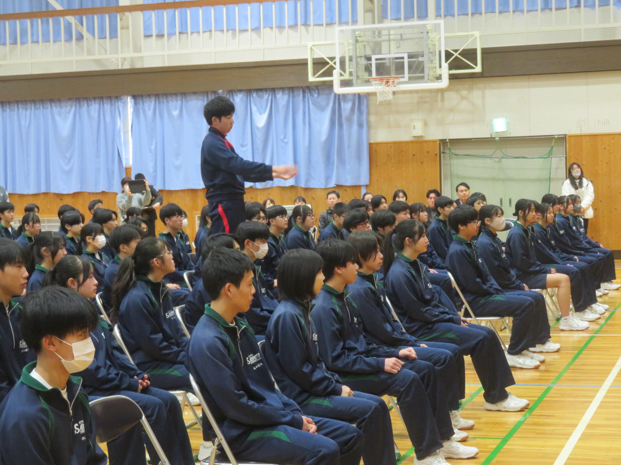 高校入試が終わり、延期されていた継承の会を本日行いました。涙いっぱいの継承の会でした。まずは、1年生はパネル活動と合唱で、2年生はスライドやメッセージと合唱で3年生に感謝と今後の決意を誓いました。練習時間が少ない中、仲間とつながり合い、一生懸命な心で創り上げたことがヒシヒシと伝わり、3年生の涙を誘っていました。そして3年生。仲間とのいろいろな活動を通して学んだことを堂々と後輩に語り継いでいました。そして圧巻の合唱。さすがという合唱を姿で示しました。涙を流しながら歌う3年生の合唱は、深い感動を与えていました。