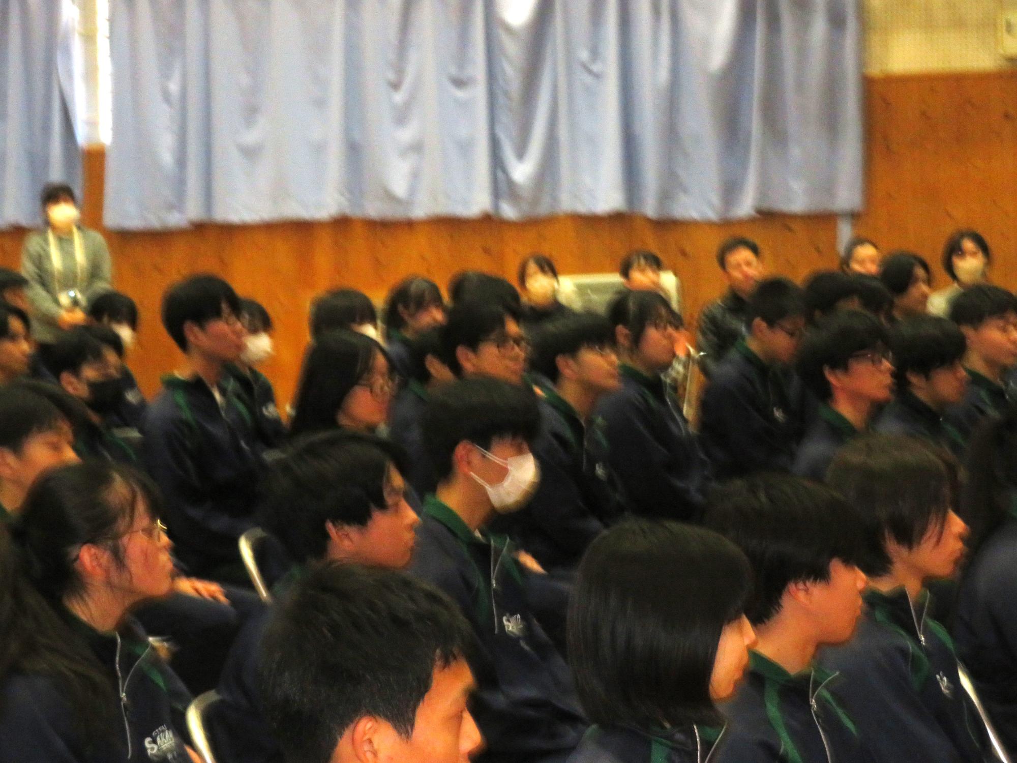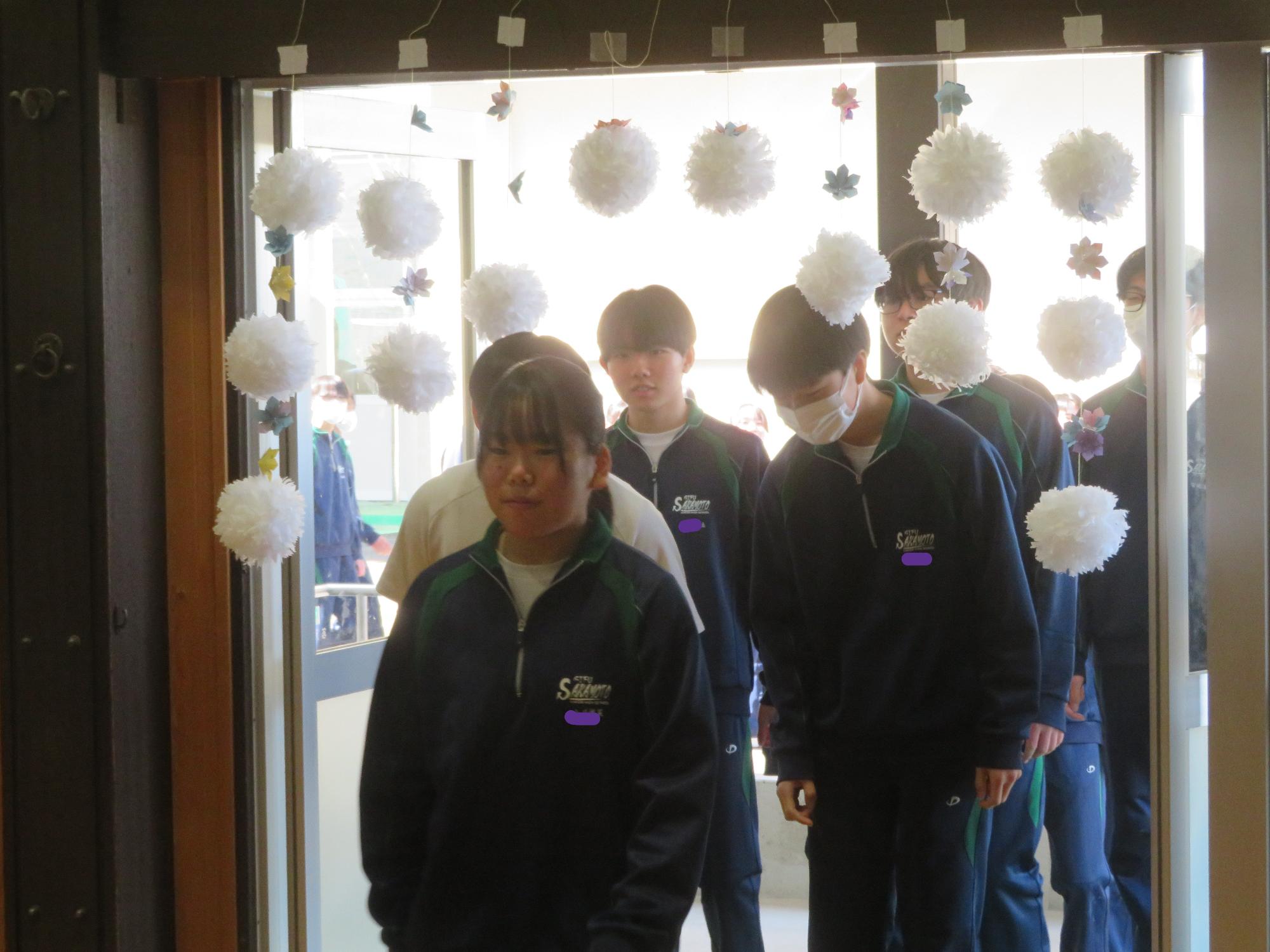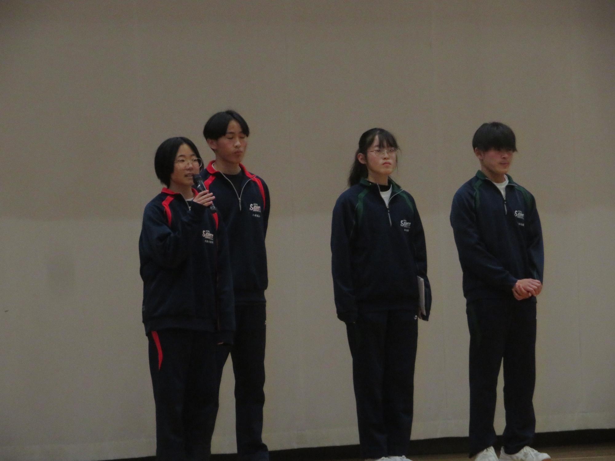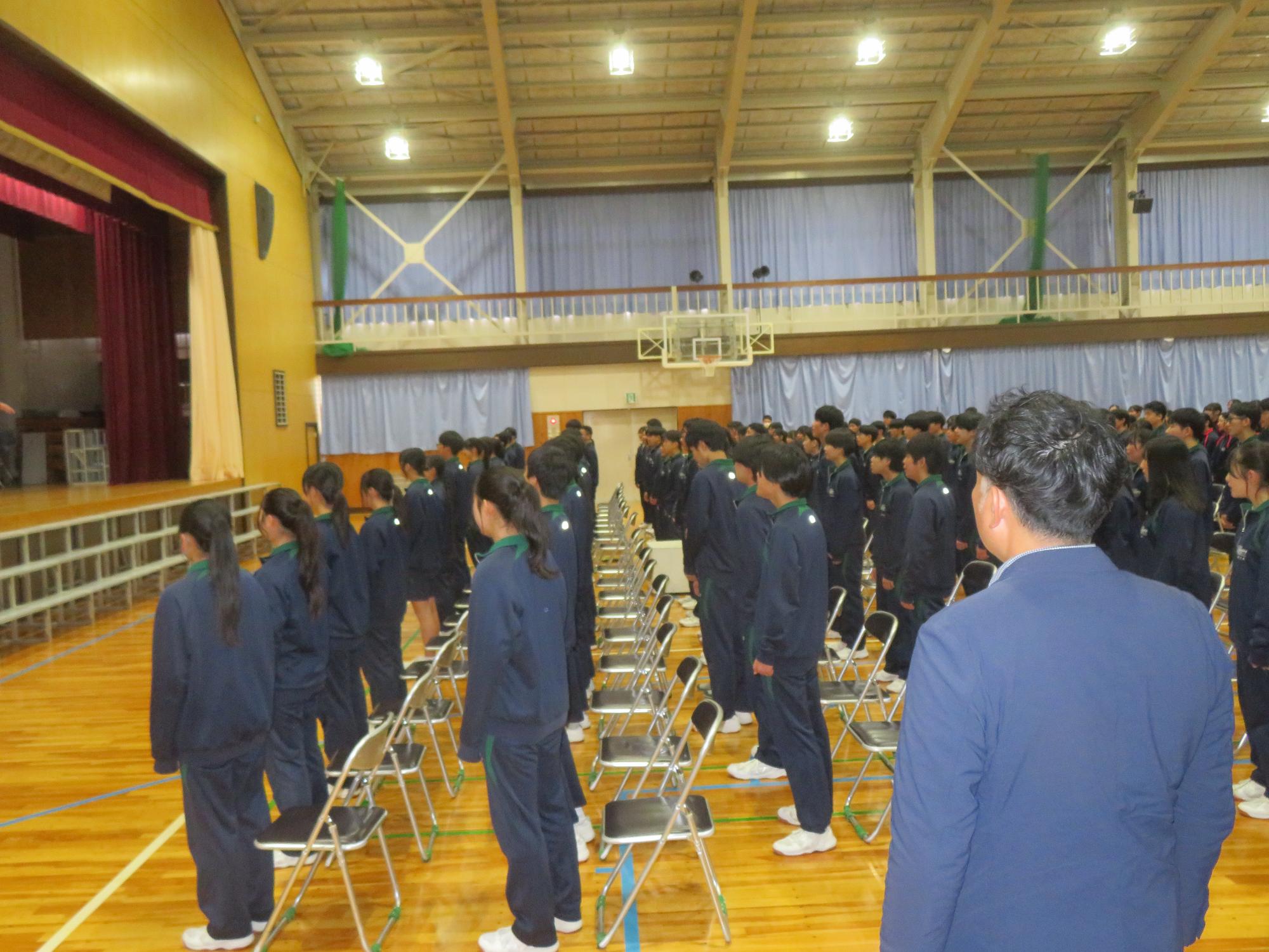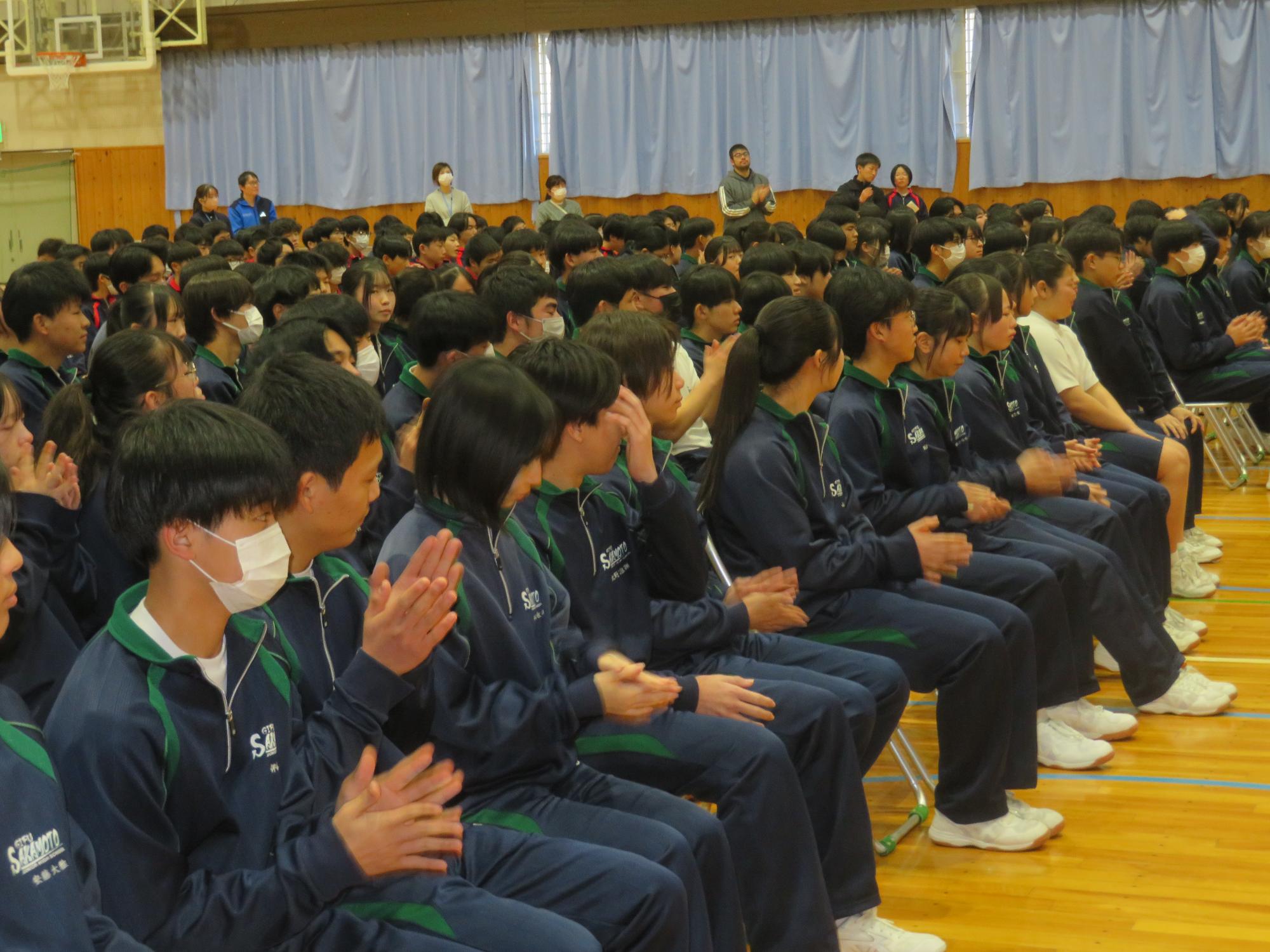 高校入試が終わり、延期されていた継承の会を本日行いました。涙いっぱいの継承の会でした。まずは、1年生はパネル活動と合唱で、2年生はスライドやメッセージと合唱で3年生に感謝と今後の決意を誓いました。練習時間が少ない中、仲間とつながり合い、一生懸命な心で創り上げたことがヒシヒシと伝わり、3年生の涙を誘っていました。そして3年生。仲間とのいろいろな活動を通して学んだことを堂々と後輩に語り継いでいました。そして圧巻の合唱。さすがという合唱を姿で示しました。涙を流しながら歌う3年生の合唱は、深い感動を与えていました。