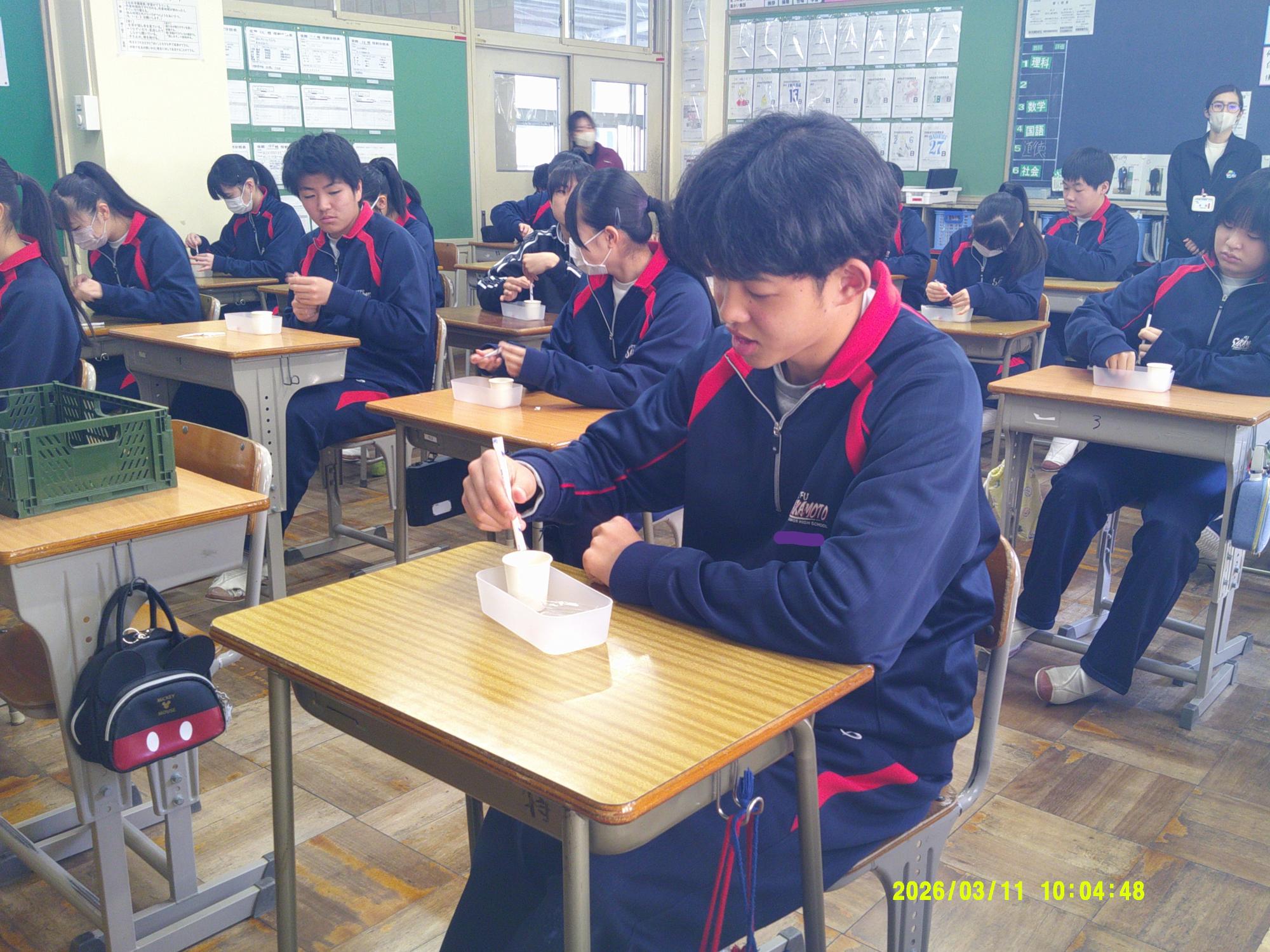 234名の学校生活の中で! 更新日:2026年03月11日 3年生が卒業して3日が経ちます。1、2年生だけ234名での学校生活です。1、2年生は、授業や委員会活動で進級に向けてますます自分自身を高めるよう努力しています。また4月からの学級も残り半月で解散するということを惜しむように、仲間と楽しみながら給食に向かう姿も見られます。234名の学校生活は今年度のまとめを迎えつつあります。