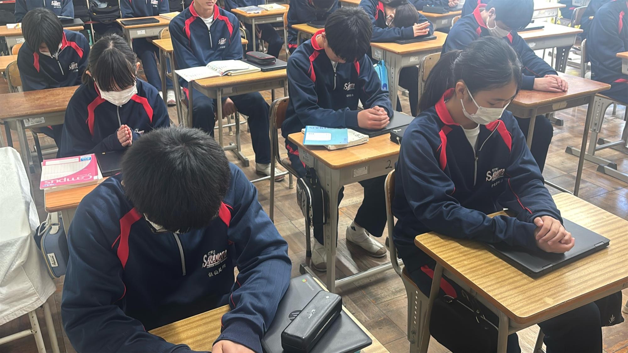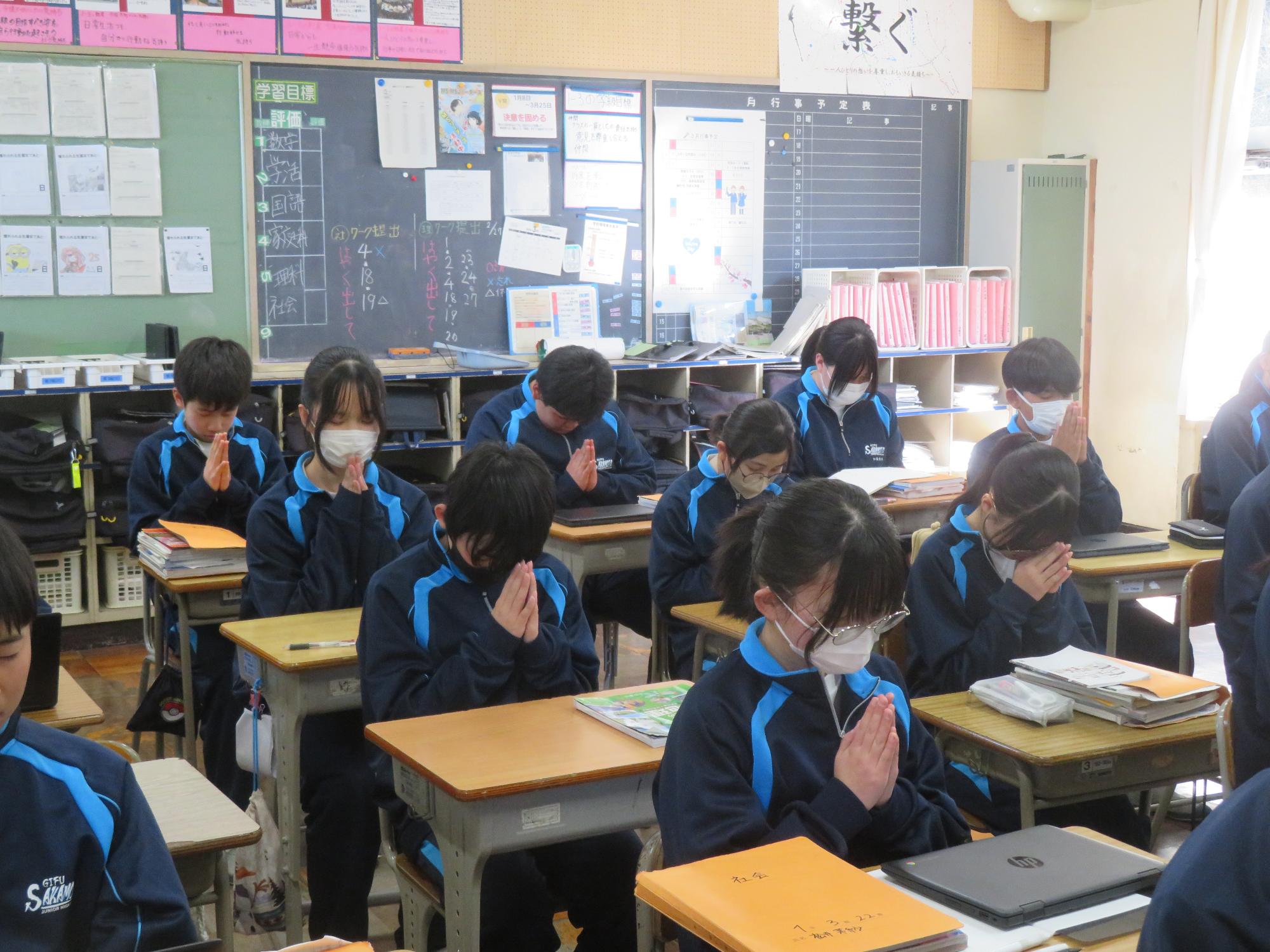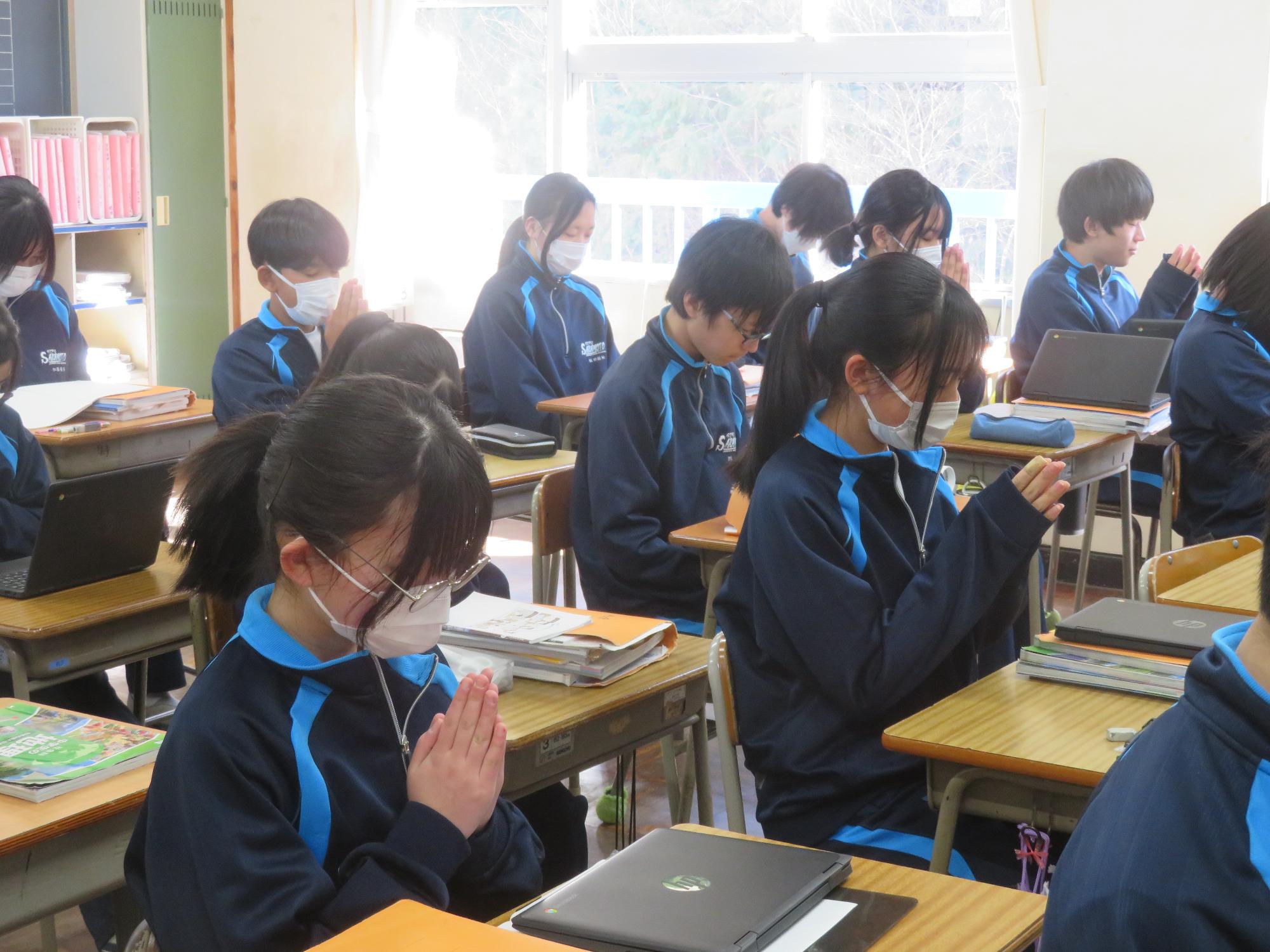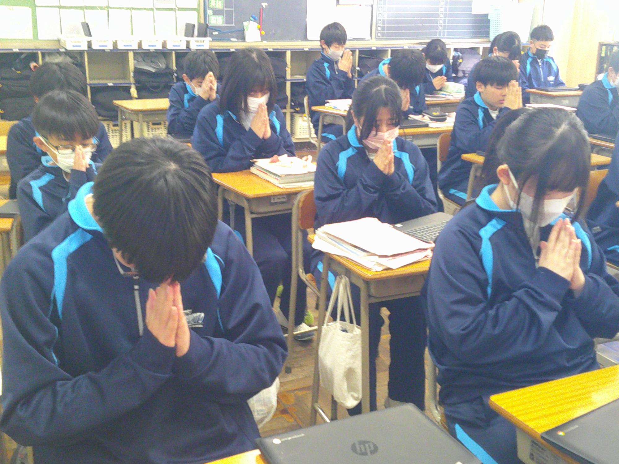 2011年3月11日、未曽有の被害をもたらした東日本大震災から15年。15年ということは・・1、2年生の生徒はまだ生まれていないときに発生した大震災となります。昼の放送では、東日本大震災の災害の大きさと今後の防災意識の大切さを確認し合いました。そして14時46分、中津川市のサイレンに合わせ、哀悼の意を込めながら全校で黙祷を行いました。“自分の命は自分で守りきる”。防災意識とともに生徒たちがさらに判断力を高めていくことを願っています。