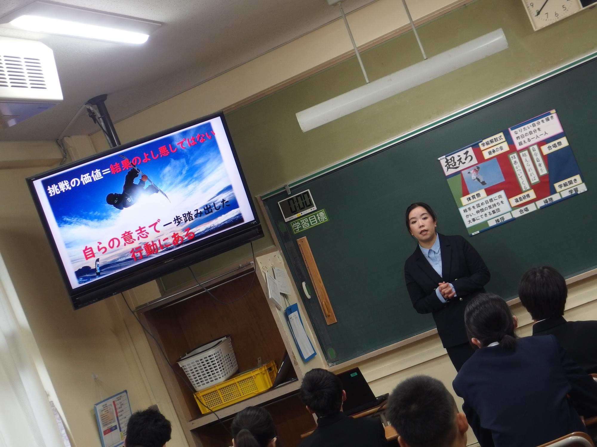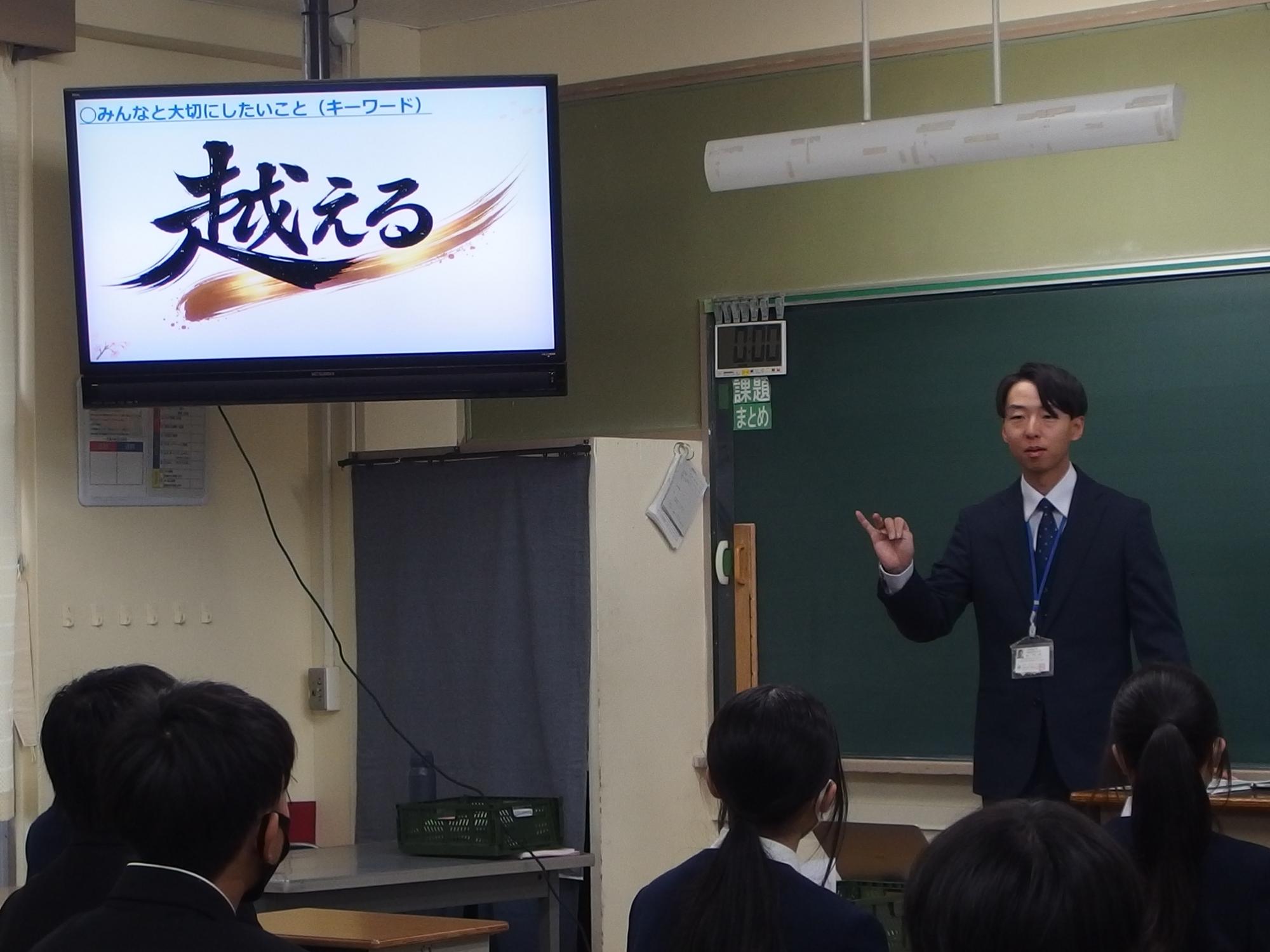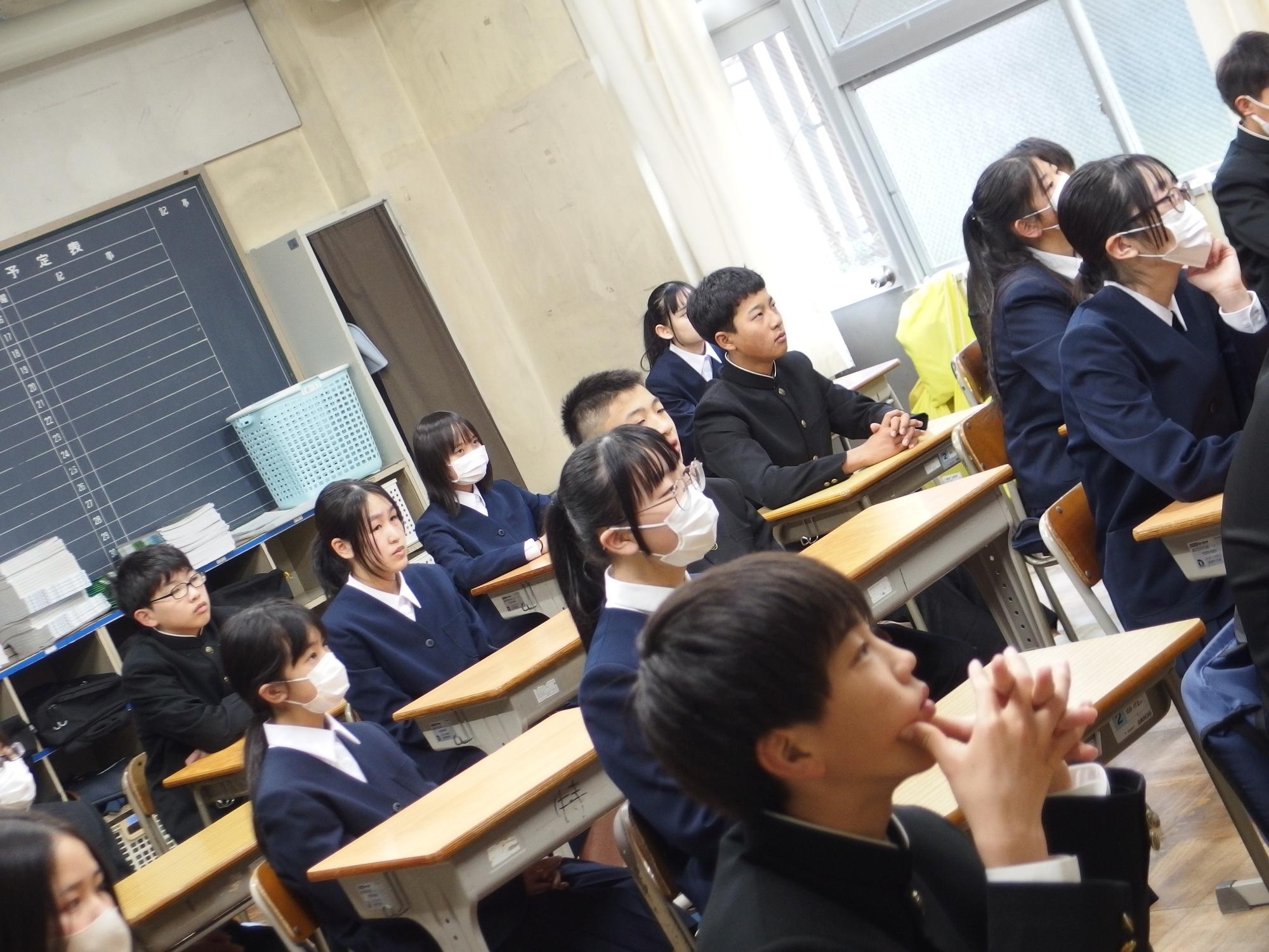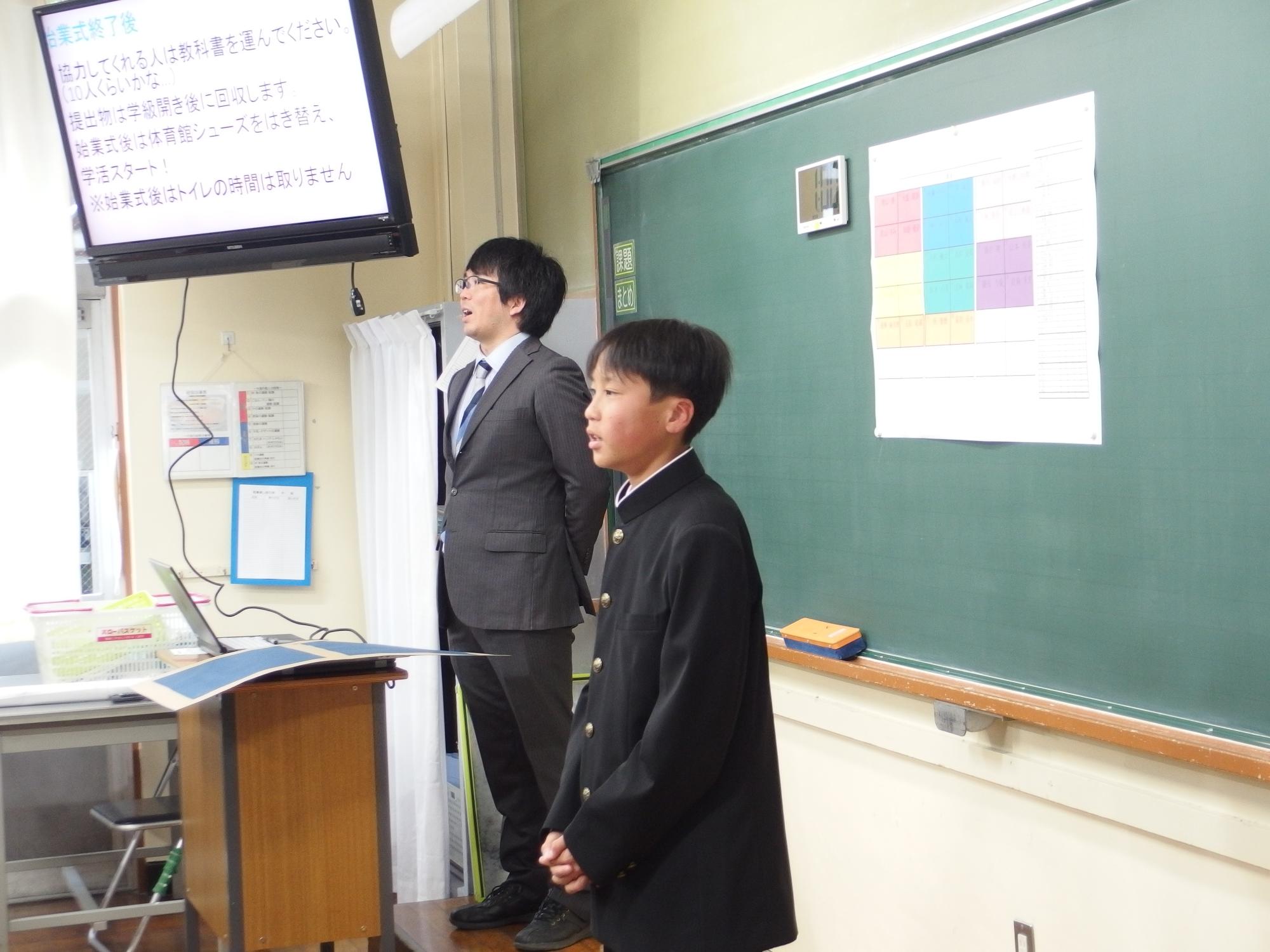 新たなクラスでの一歩(学級びらき) 更新日:2026年04月07日 新しいクラスでの学校生活のスタートです。始業式では生徒会の丸山副会長が「憧れられる先輩になるために、するとよいことを判断し姿で示していきましょう。」と全校によびかけました。その後の学級びらきは、担任の先生との初顔合わせです。担任の先生の「こんなクラスにしたい!」という願いを真剣に聞く姿から、「新たなクラスで頑張るぞ」という願いがこもった最初の一歩を感じました。新たなクラスの物語がよりよいものになることを強く期待しています。