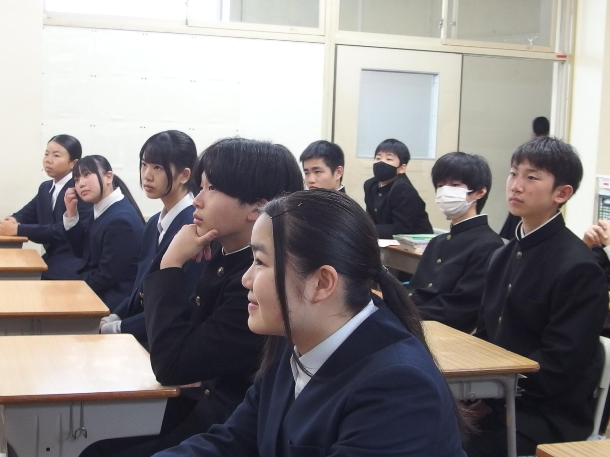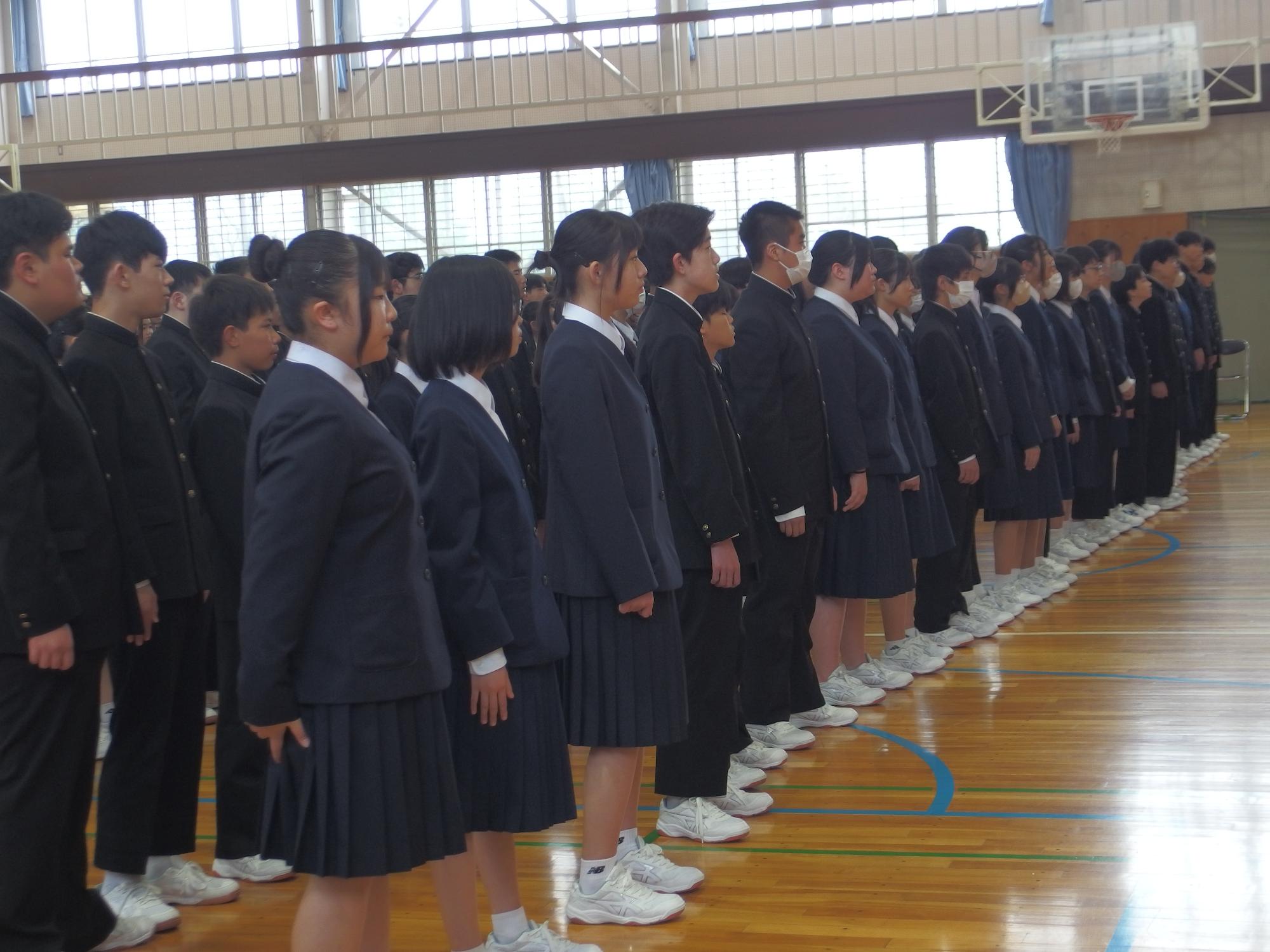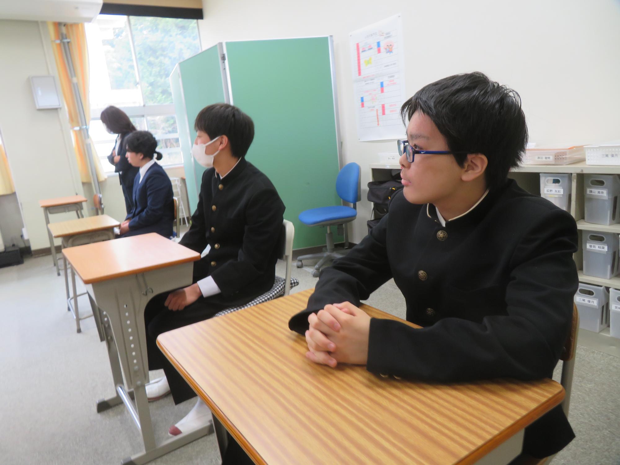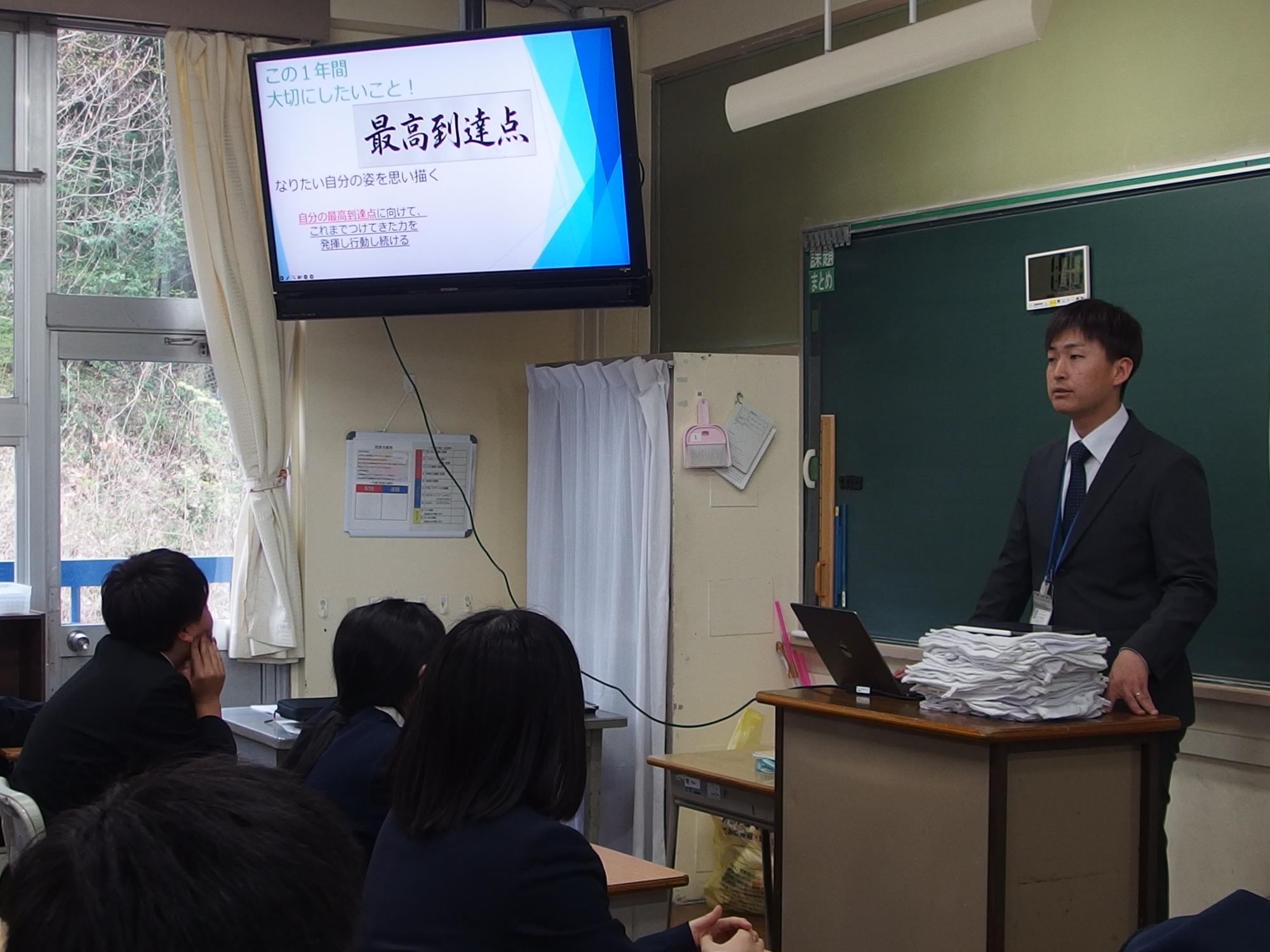 新たなクラスでの一歩(学級びらき) 更新日:2026年04月07日 新しいクラスでの学校生活のスタートです。始業式では生徒会の丸山副会長が「憧れられる先輩になるために、するとよいことを判断し姿で示していきましょう。」と全校によびかけました。その後の学級びらきは、担任の先生との初顔合わせです。担任の先生の「こんなクラスにしたい!」という願いを真剣に聞く姿から、「新たなクラスで頑張るぞ」という願いがこもった最初の一歩を感じました。新たなクラスの物語がよりよいものになることを強く期待しています。
