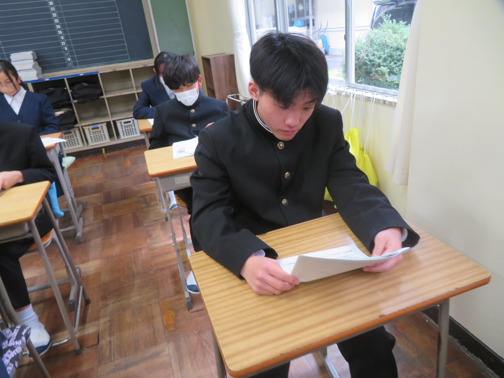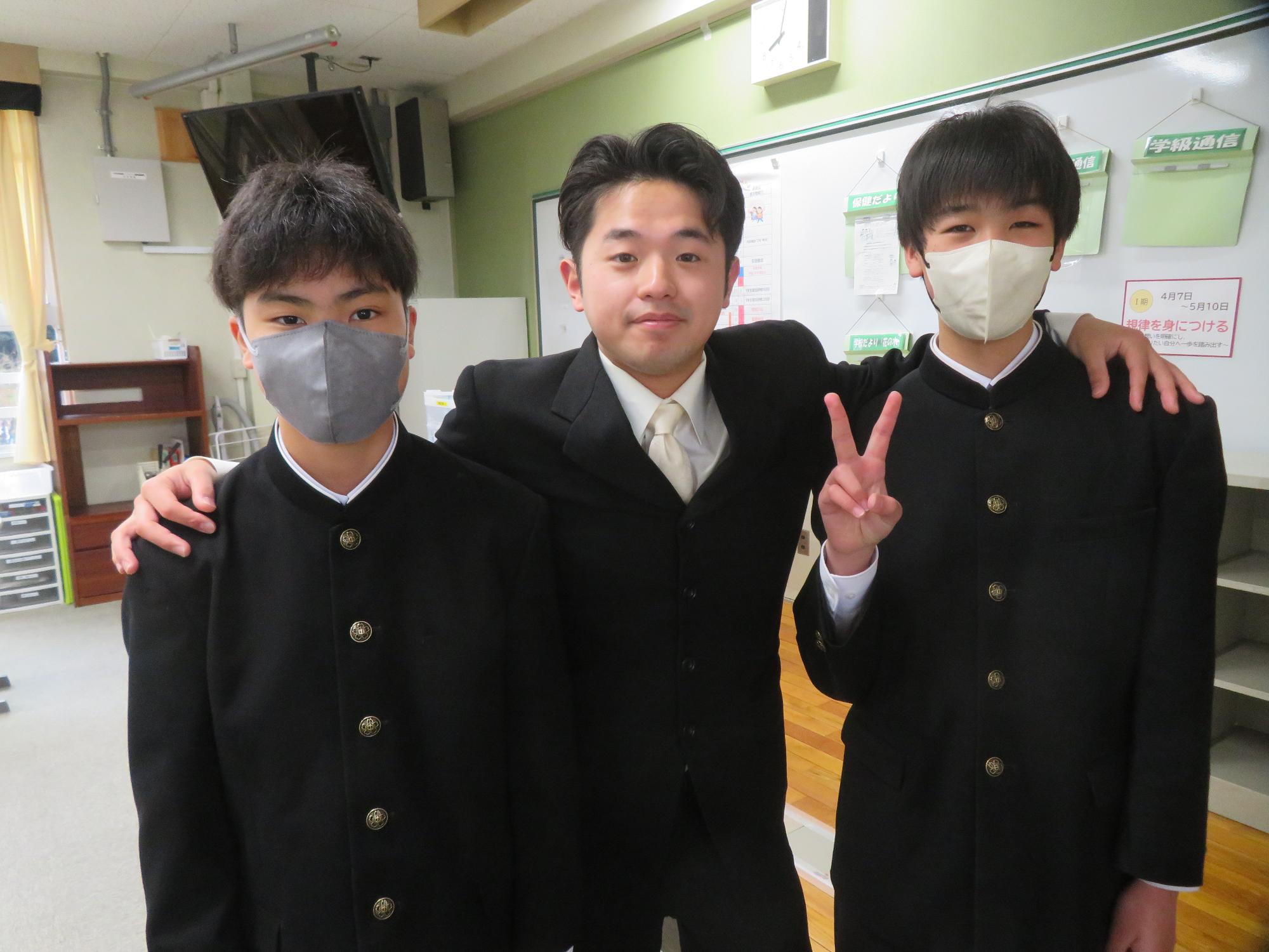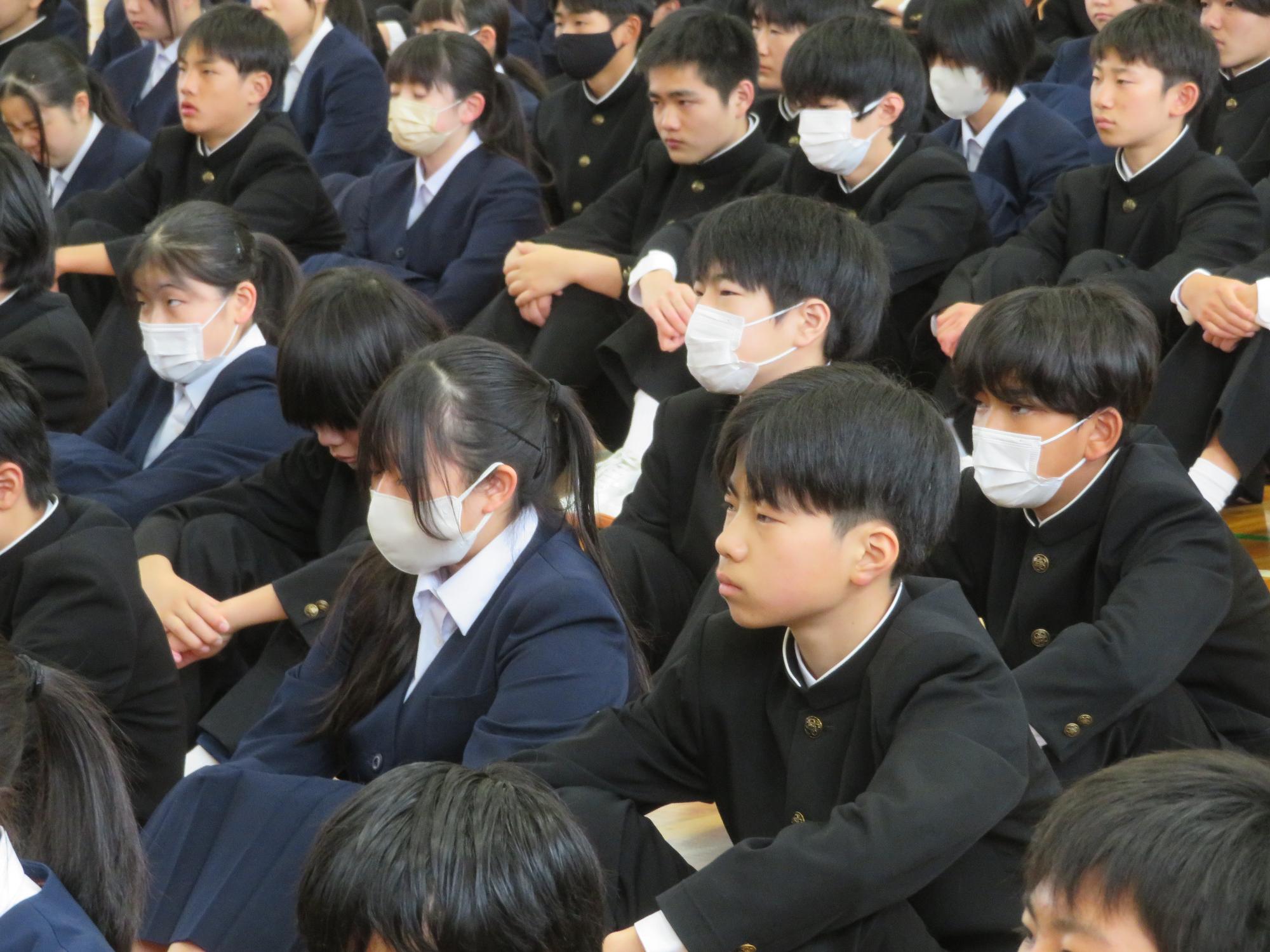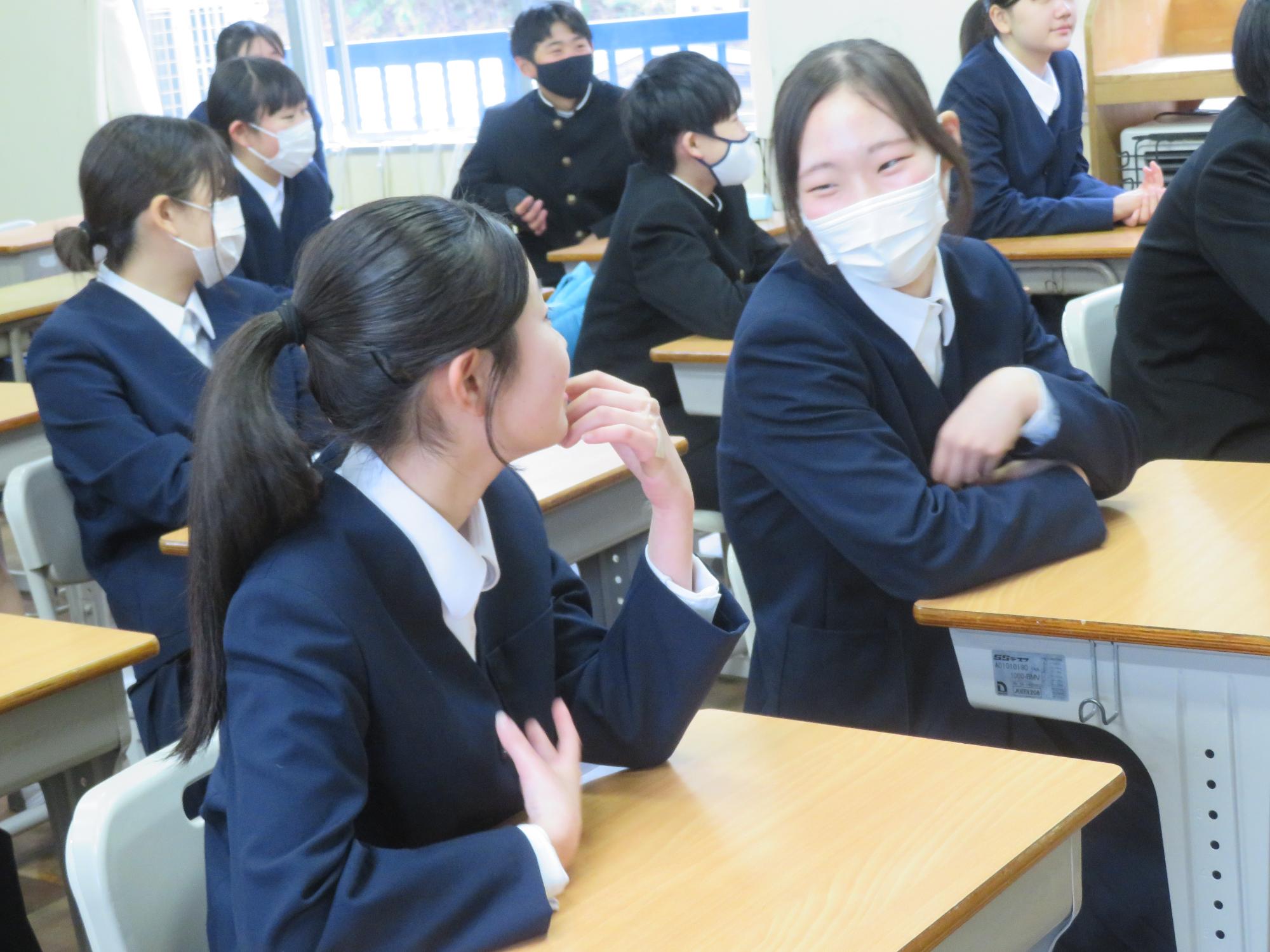 新たなクラスでの一歩(学級びらき) 更新日:2026年04月07日 新しいクラスでの学校生活のスタートです。始業式では生徒会の丸山副会長が「憧れられる先輩になるために、するとよいことを判断し姿で示していきましょう。」と全校によびかけました。その後の学級びらきは、担任の先生との初顔合わせです。担任の先生の「こんなクラスにしたい!」という願いを真剣に聞く姿から、「新たなクラスで頑張るぞ」という願いがこもった最初の一歩を感じました。新たなクラスの物語がよりよいものになることを強く期待しています。
