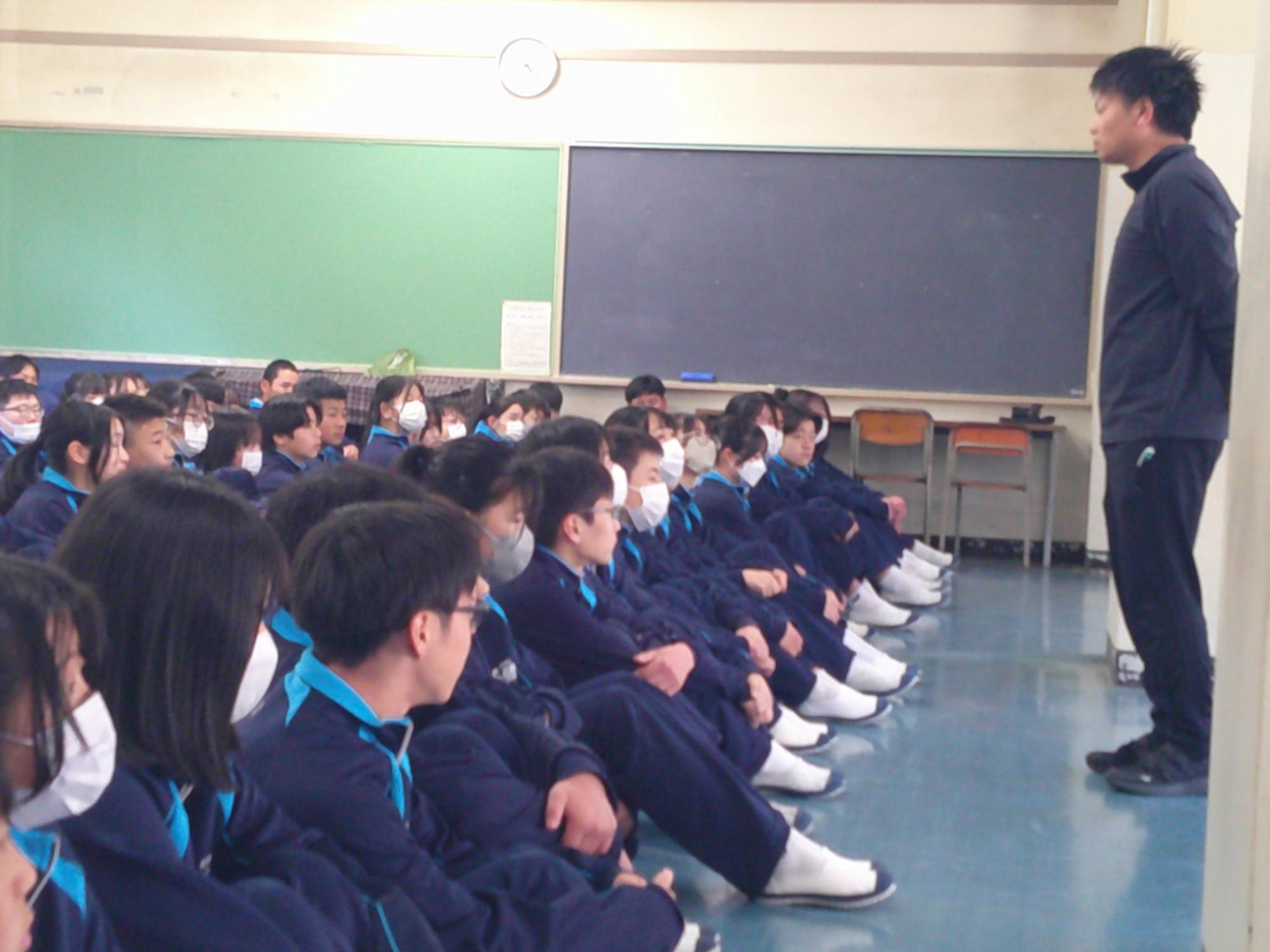 いよいよ351名の学校生活のスタート 更新日:2026年04月08日 今日から全校生徒351名の学校生活のスタートです。1年生も初めて坂中ジャージを着て緊張しながらも学校生活に向かっています。給食の運び方などを3年生が教えてあげる姿も見られ、それぞれの学年の役割をこなしながら、順調なスタートが切られています。全校生徒が1つのことに向かってBRUSH UPしていくそんな坂本中学校になることを願っています。