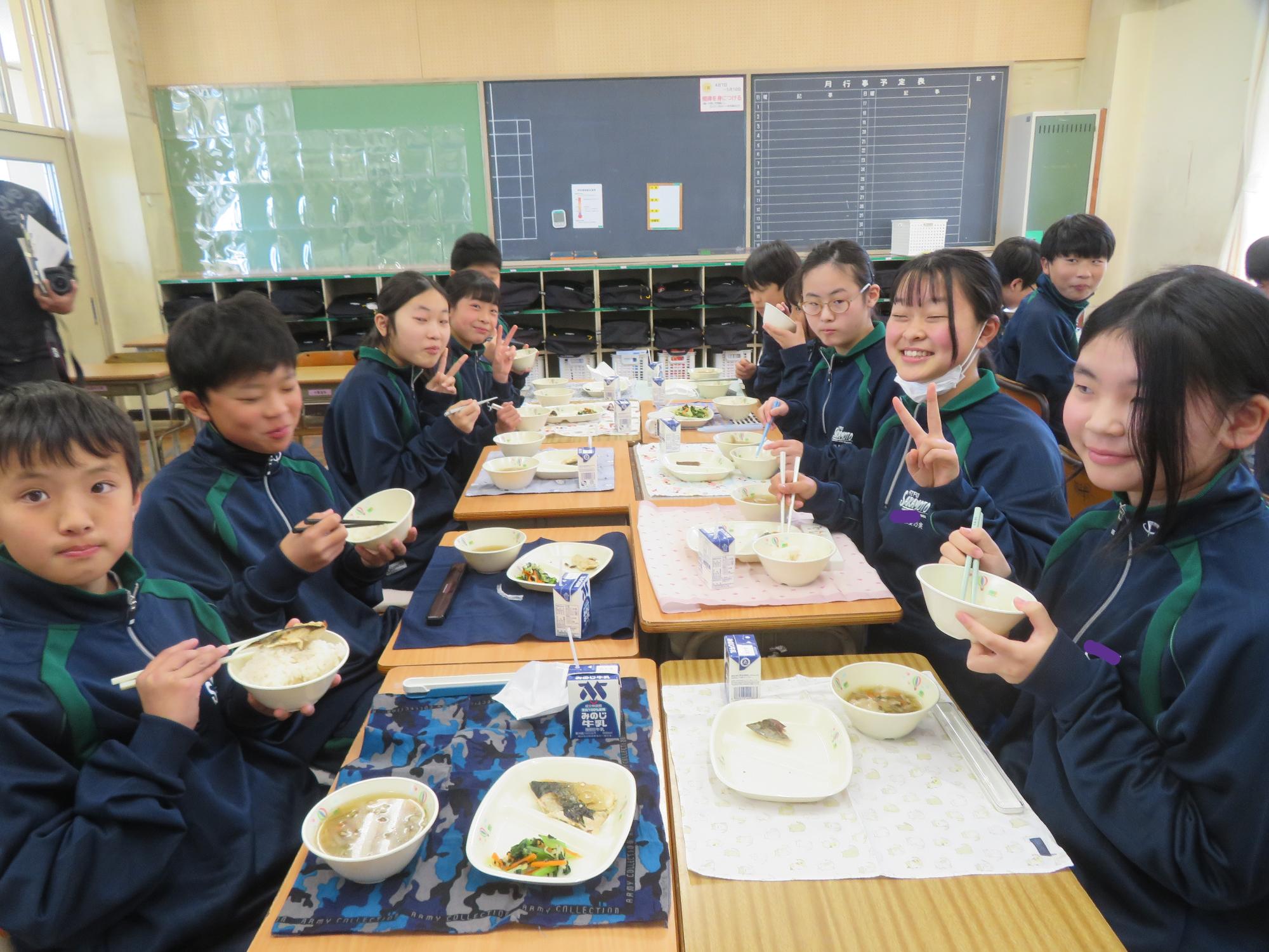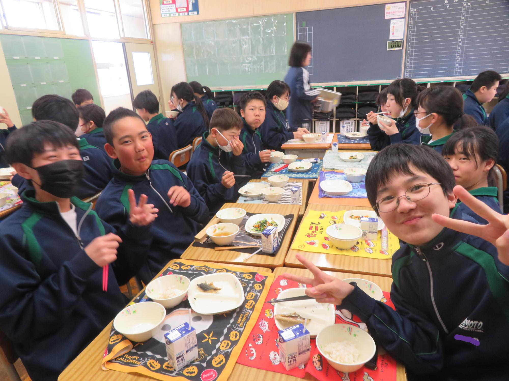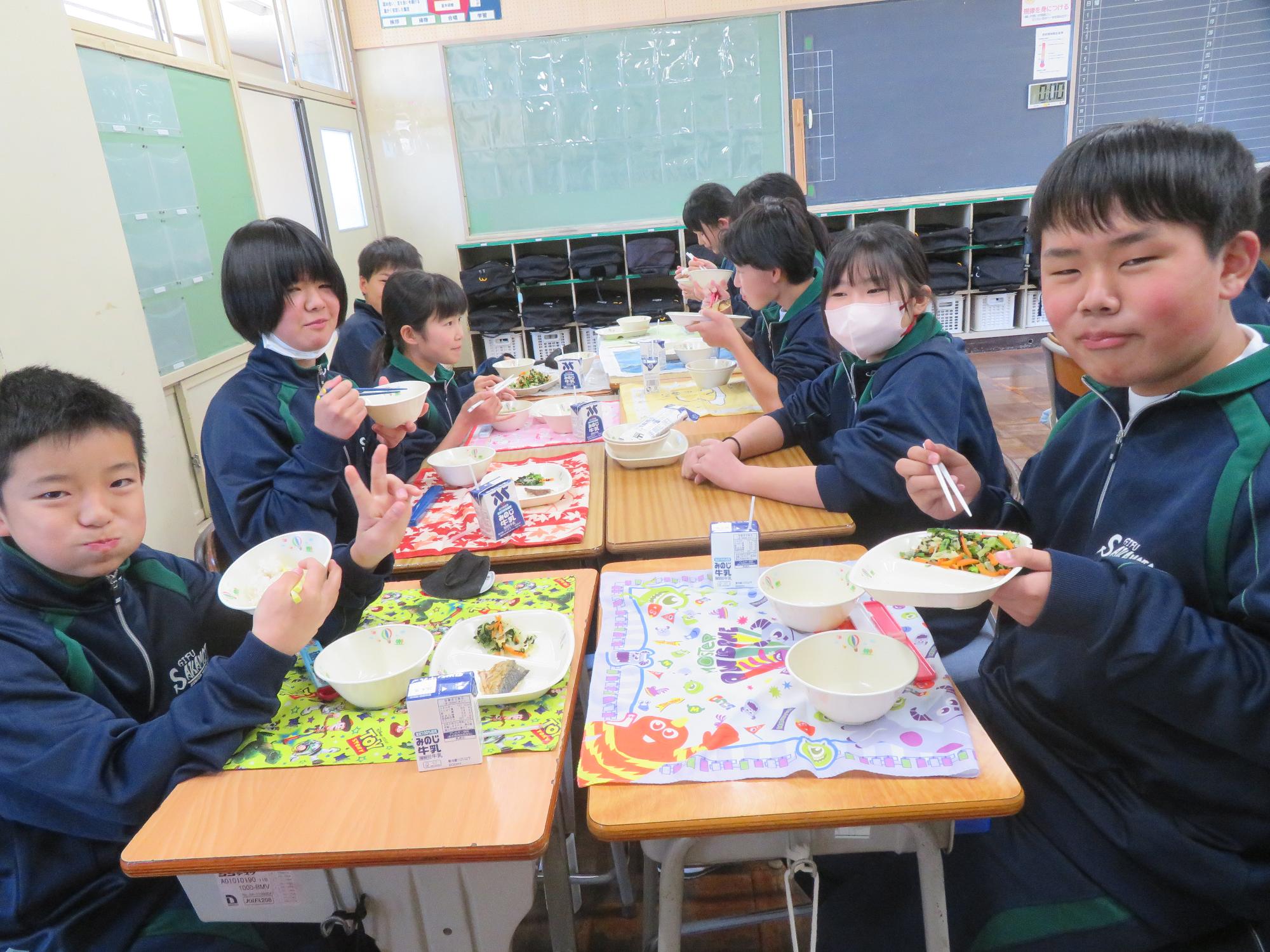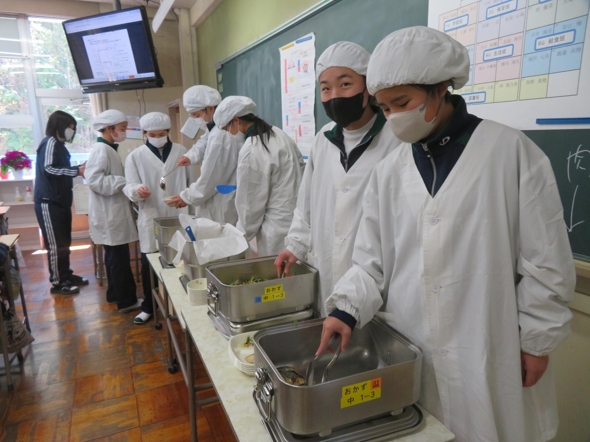中学校での初めての給食 更新日:2026年04月10日 1年生は中学校での初めての給食です。小学校の時よりも少し量が多いようですが、どの生徒ももりもり食べていました。グループ隊形で食べる中学校スタイルに新鮮さを味わいながら、笑顔で給食時間を過ごしていました。たくさん栄養をとって中学校で生活していくエネルギーを蓄えていくことを願っています。