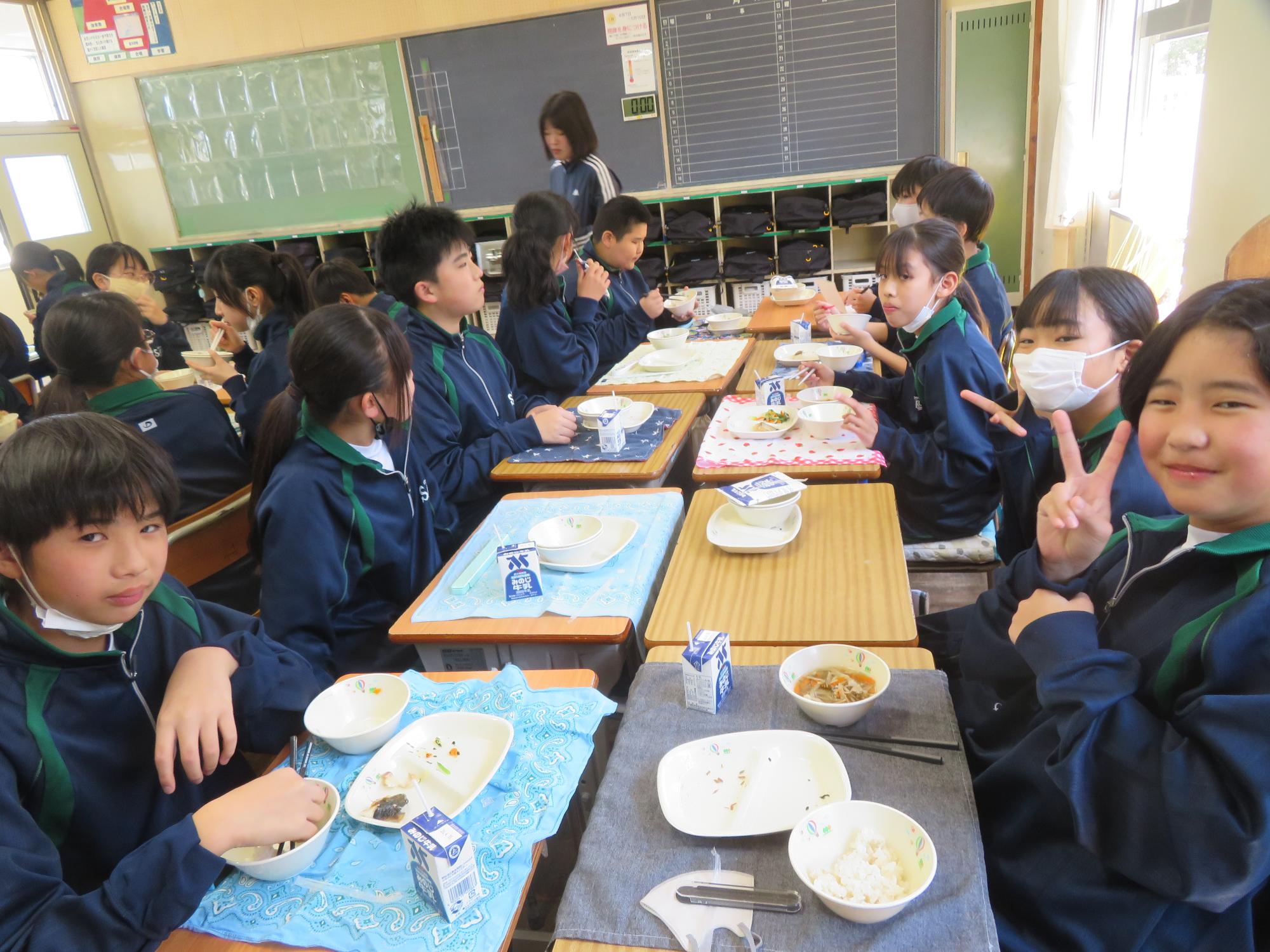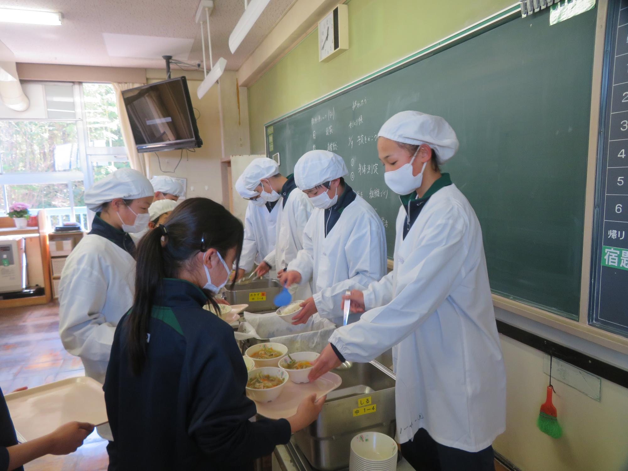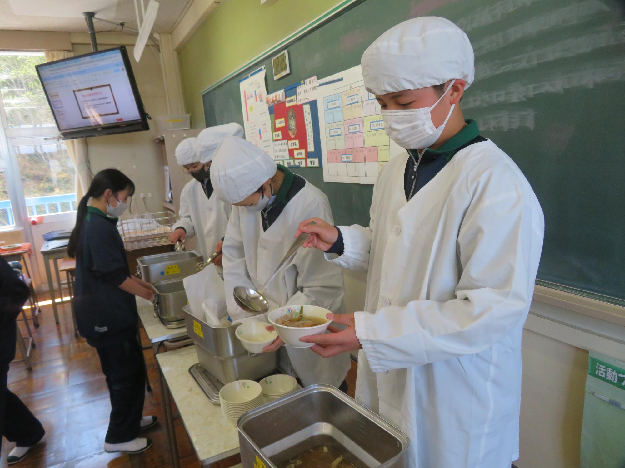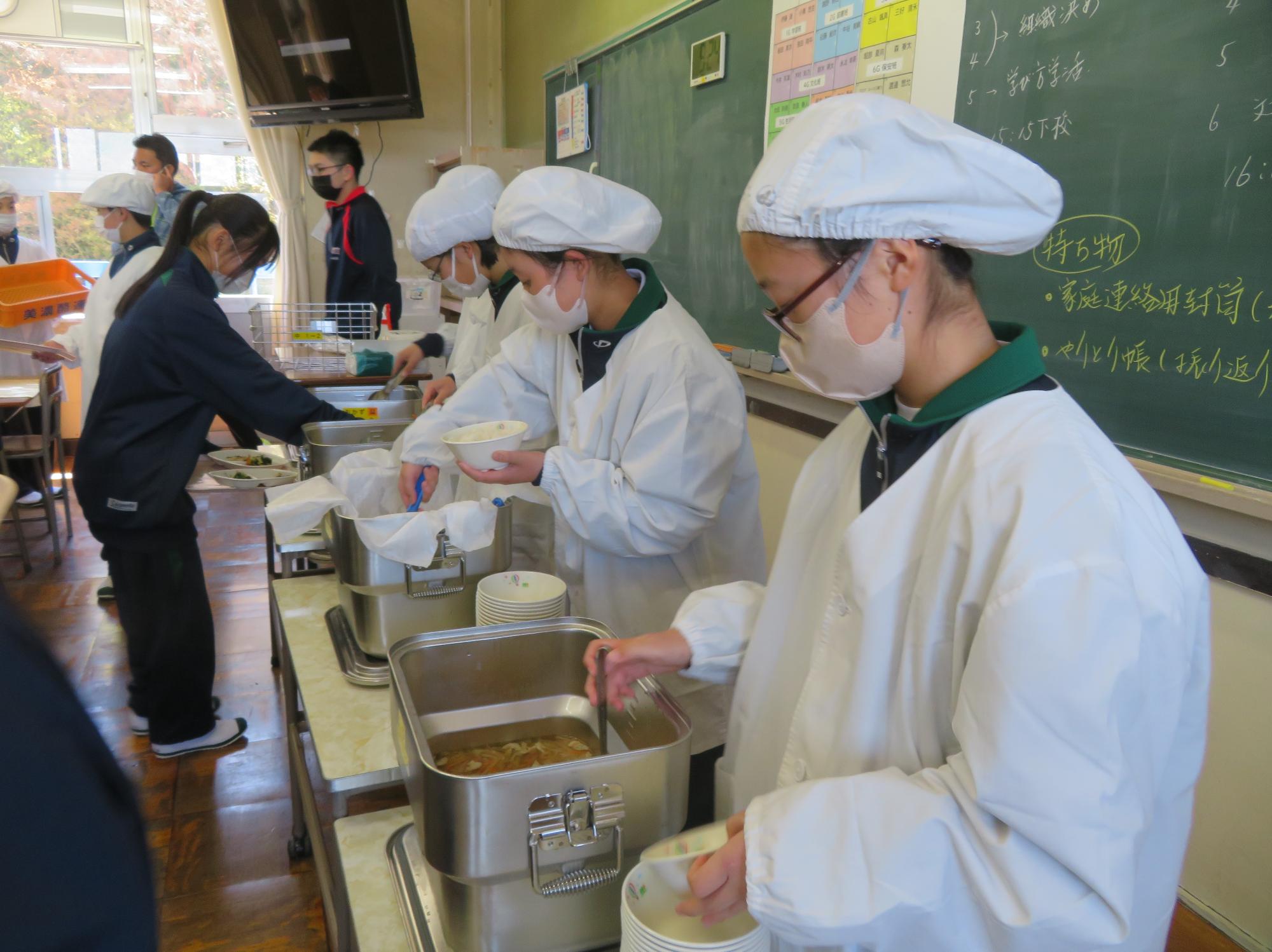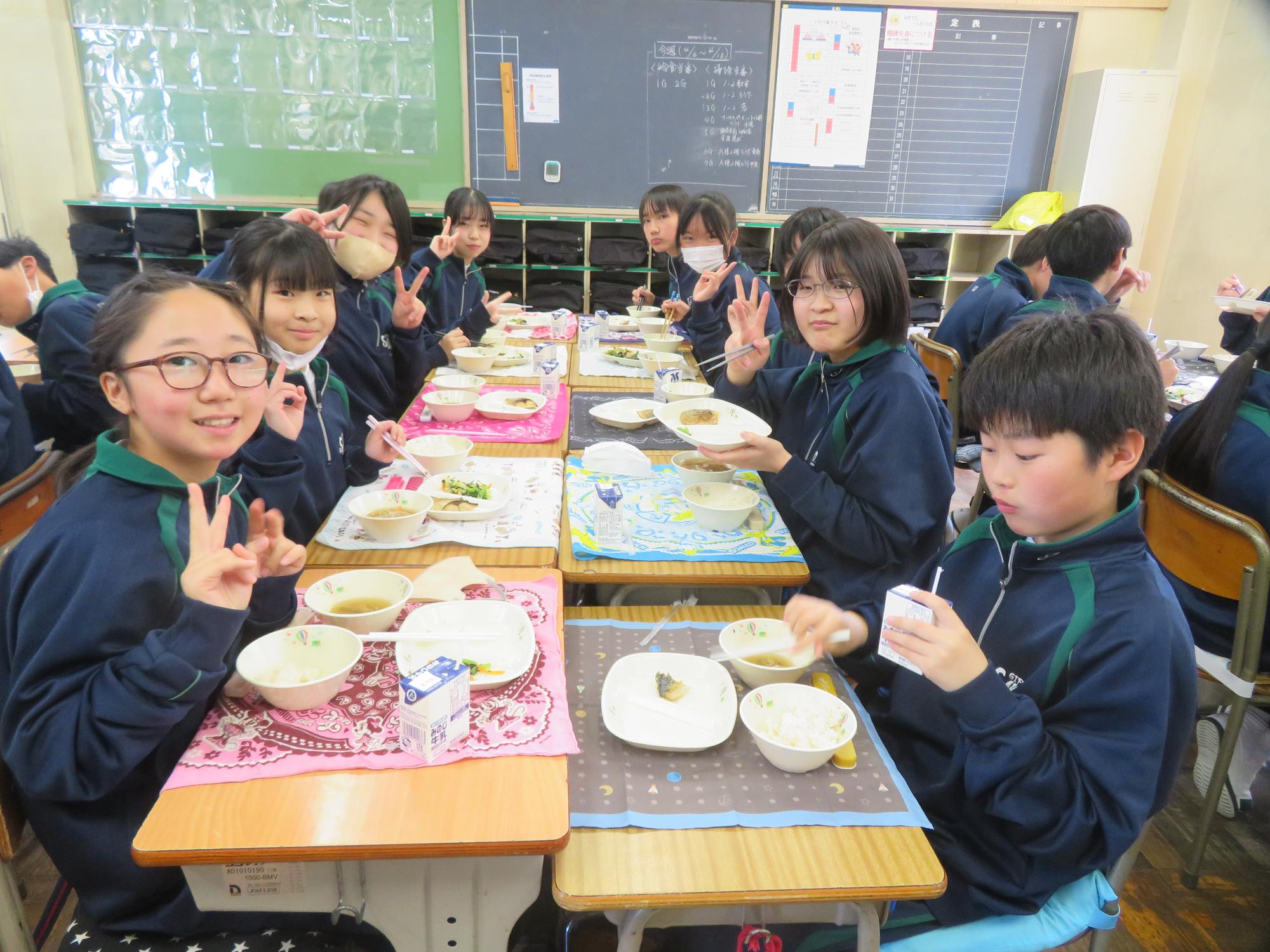 中学校での初めての給食 更新日:2026年04月10日 1年生は中学校での初めての給食です。小学校の時よりも少し量が多いようですが、どの生徒ももりもり食べていました。グループ隊形で食べる中学校スタイルに新鮮さを味わいながら、笑顔で給食時間を過ごしていました。たくさん栄養をとって中学校で生活していくエネルギーを蓄えていくことを願っています。