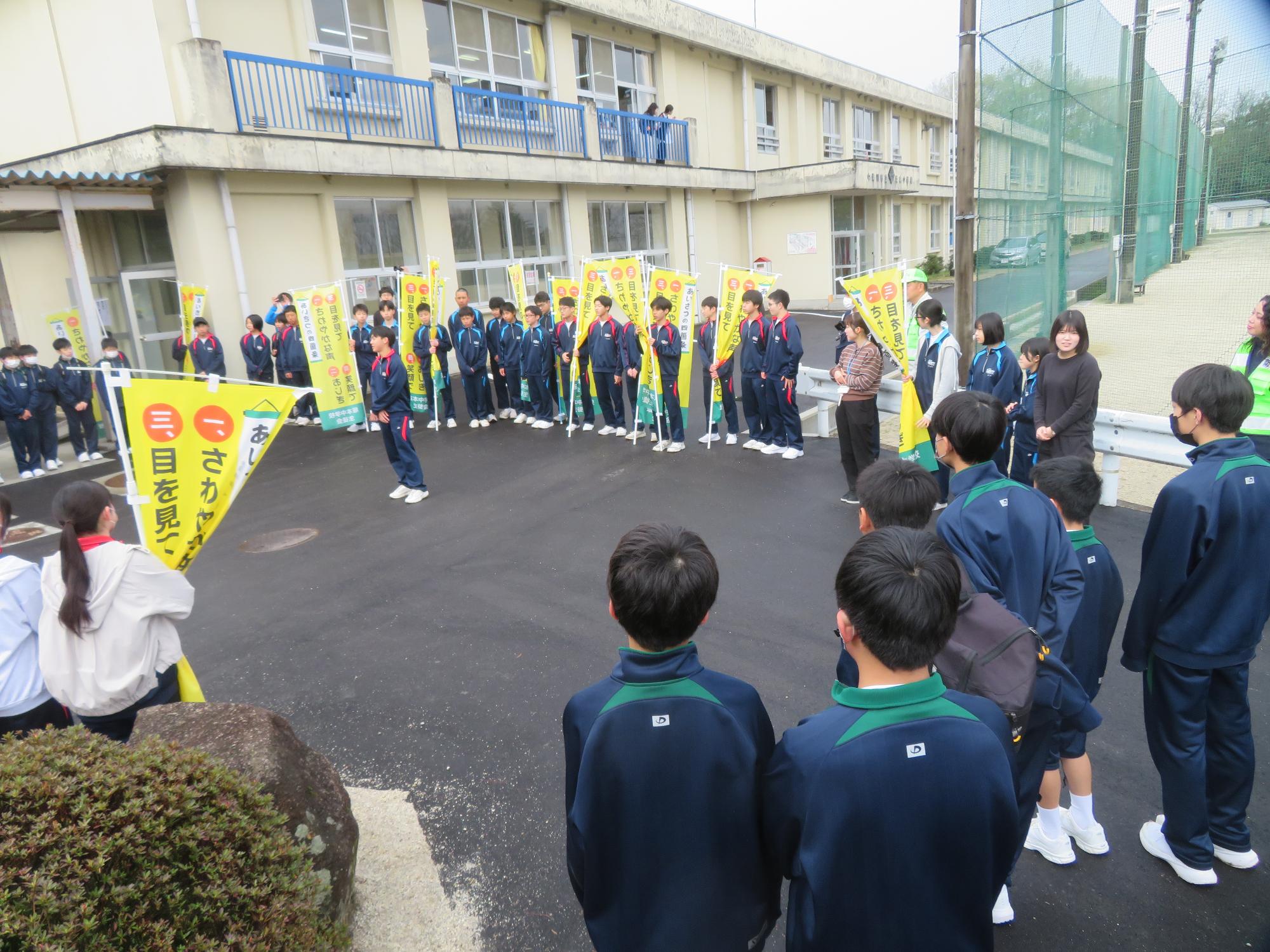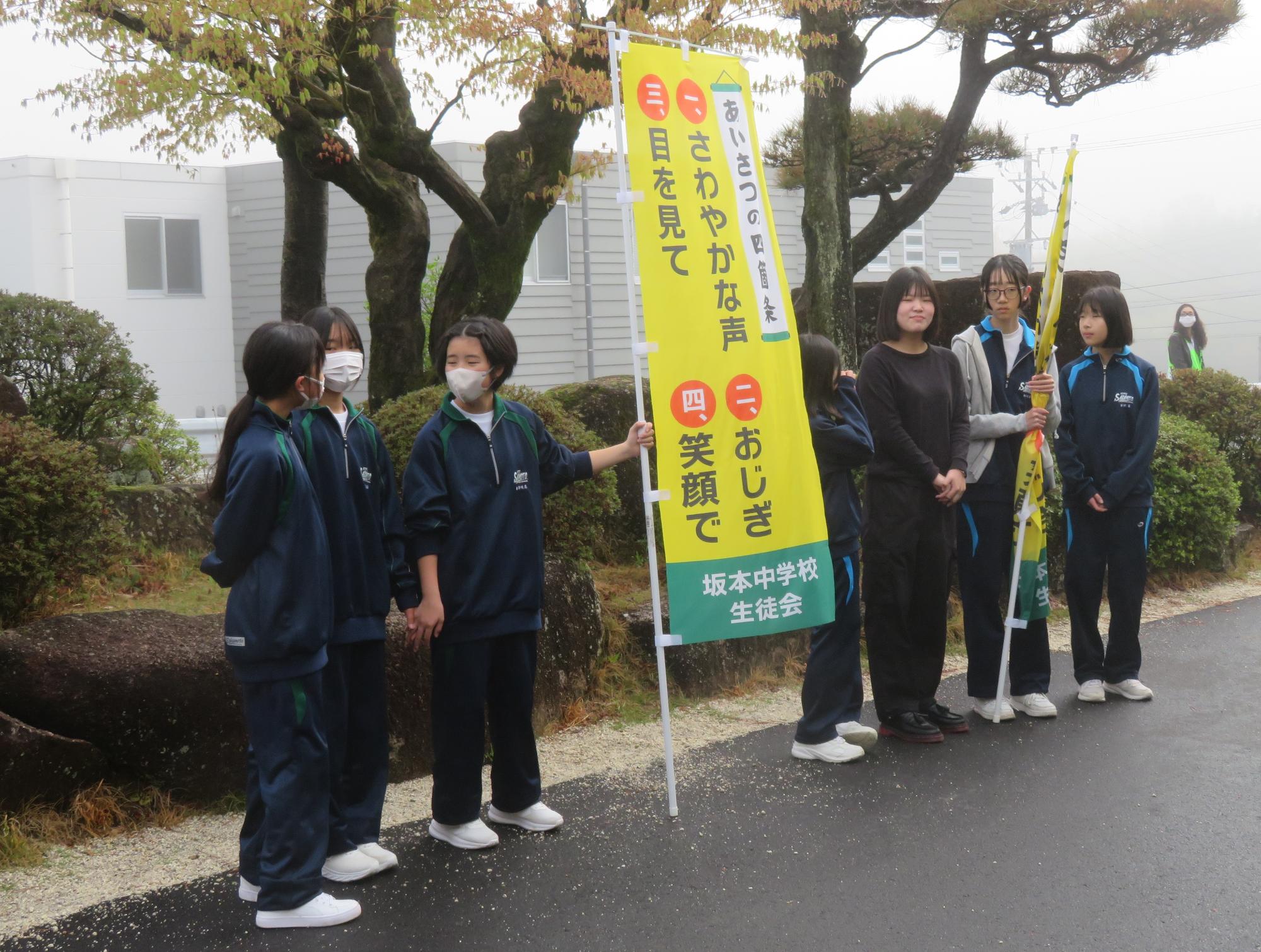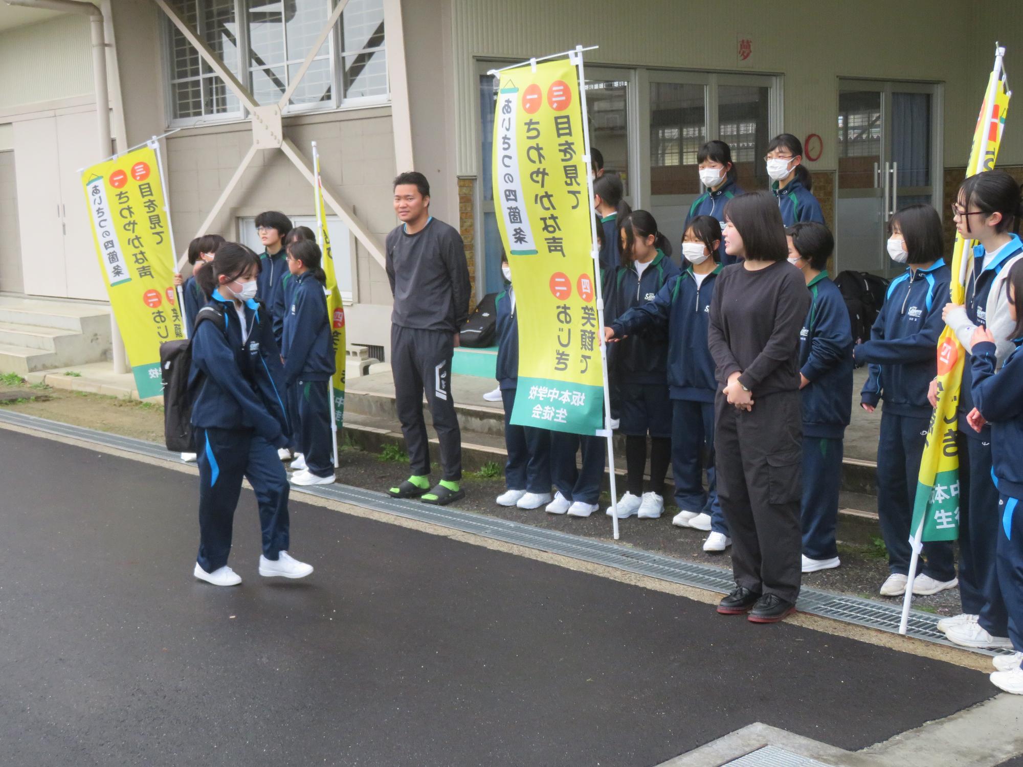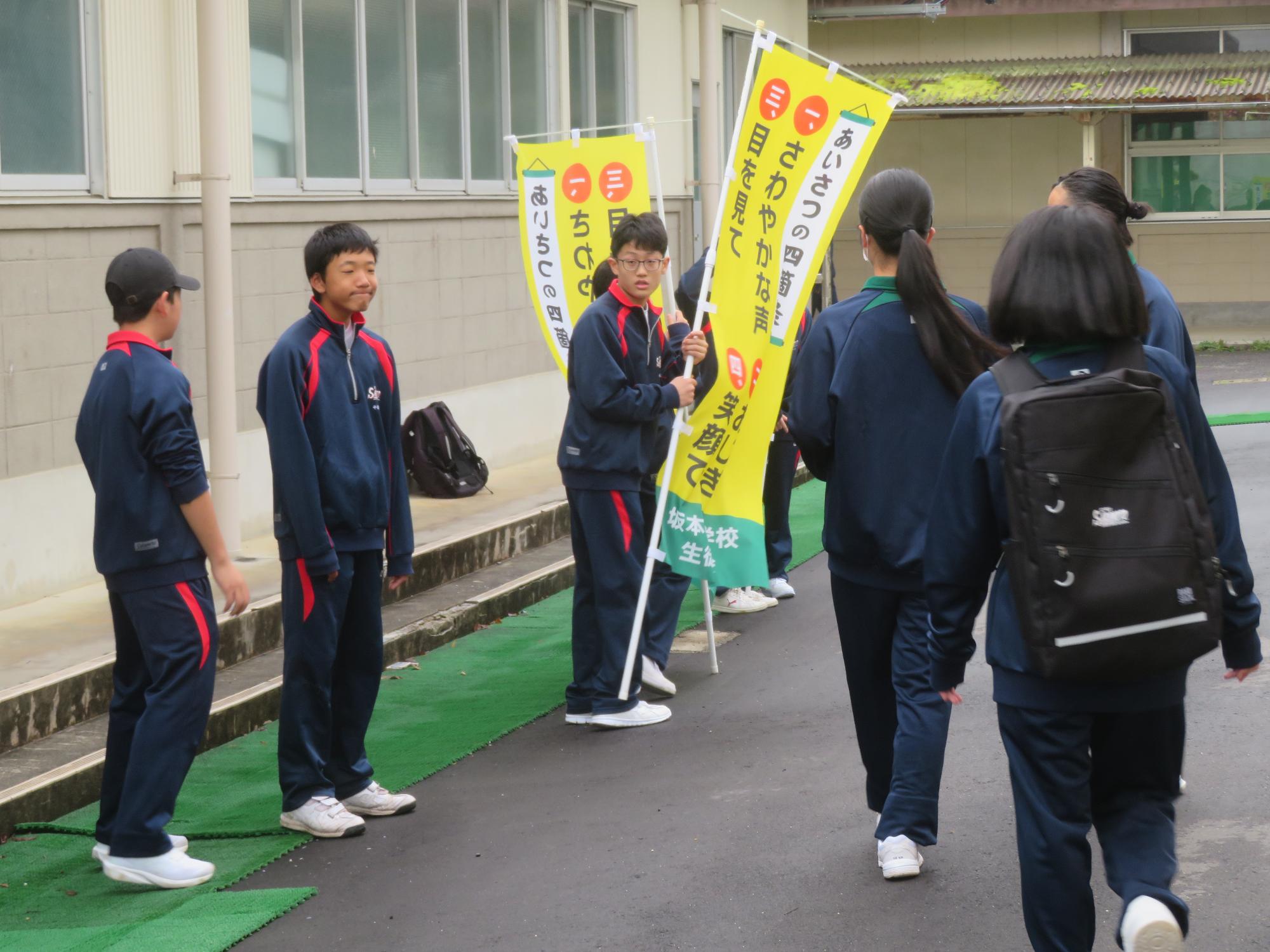 120名を超える挨拶の声 更新日:2026年04月19日 生徒会がウェルカム挨拶週間と位置付けて挨拶を呼びかけ、今日で4日目。生徒会の挨拶を呼びける輪に、ボランティアで他の生徒が加わり続け、今日は120名を超える生徒が加わりました。ちょうど地域の方も挨拶を啓発する日で来校されましたが、「坂中生のエネルギーはすごいですね。」と称賛の声をいただきました。坂中4本柱の挨拶を本物の誇りあるものにする坂中生の今後のBRUSH UPを期待しています。