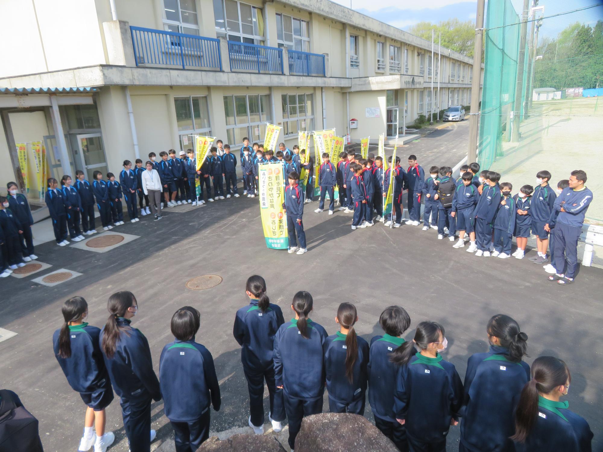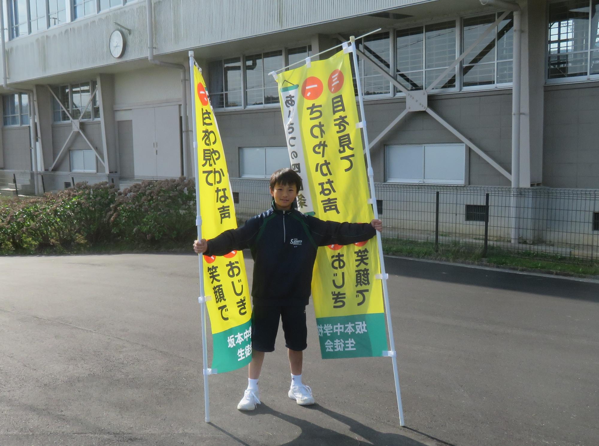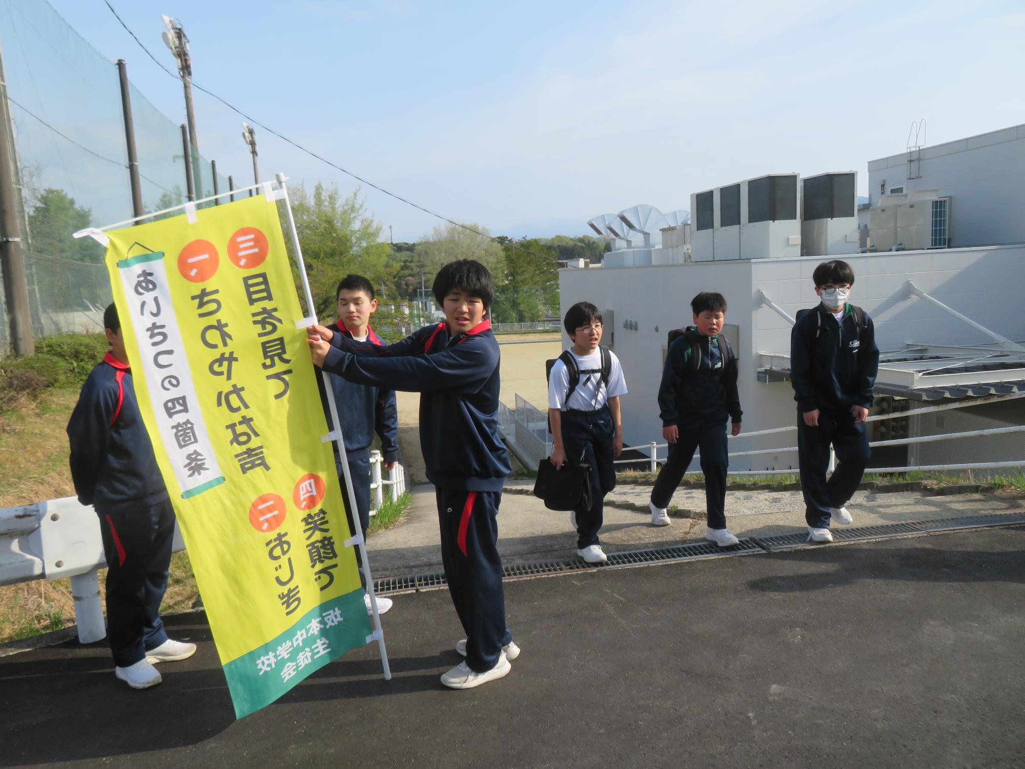 坂中生の勢いを大切に! 更新日:2026年04月19日 120名を超えるウェルカム挨拶週間の参加生徒。昼休みにはグランドで汗を流し走り回る生徒たちや委員会で意欲的に頑張る生徒たち。坂中生の勢いある姿が随所に見られ、うれしい限りです。学校は可能性を広げる場。いろいろな活動に勢いをもって取り組み、自らの可能性を開花させる坂中生を期待しています。