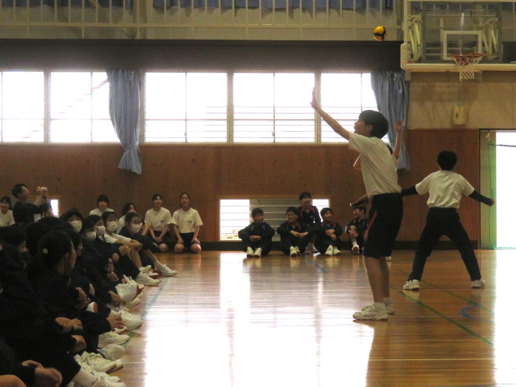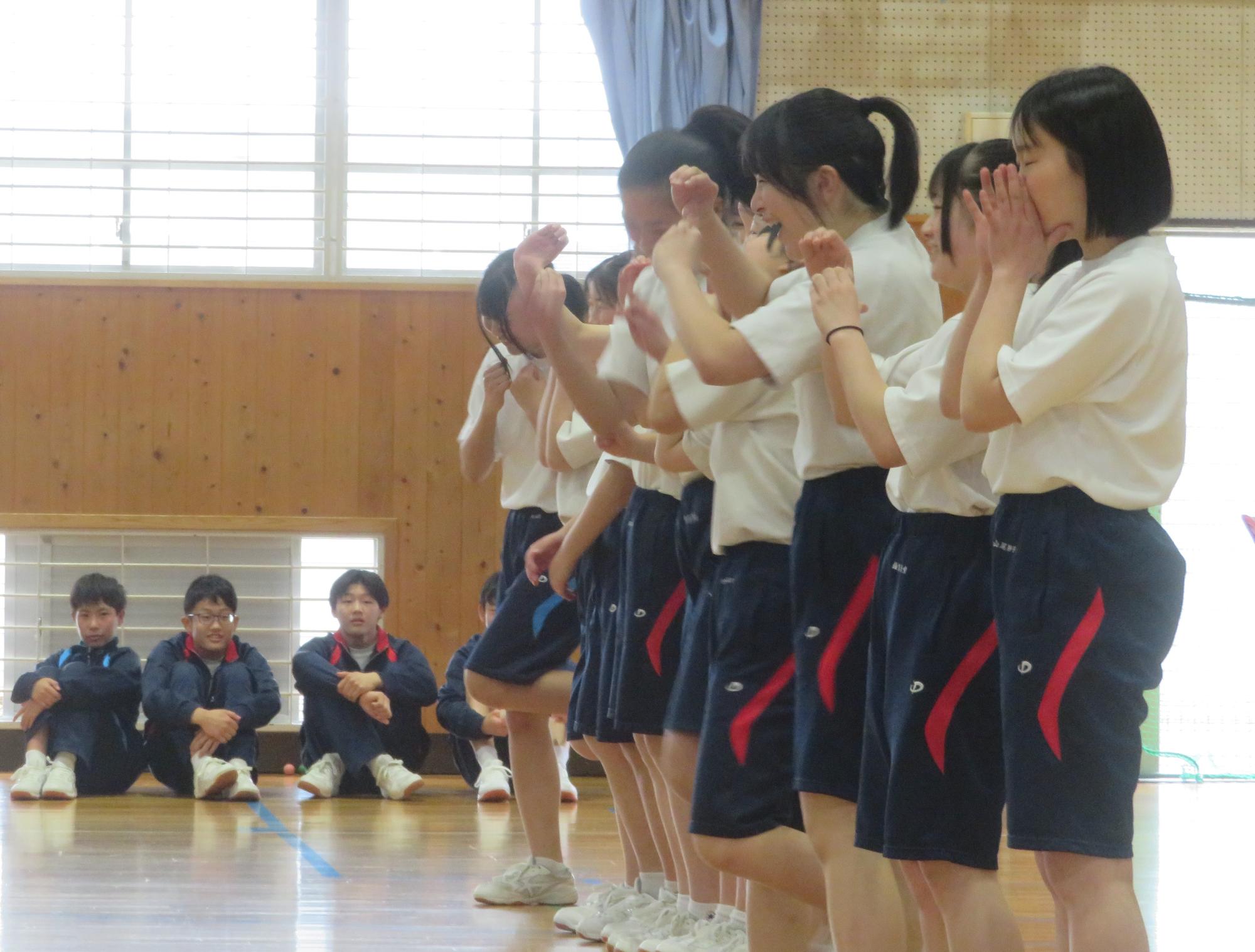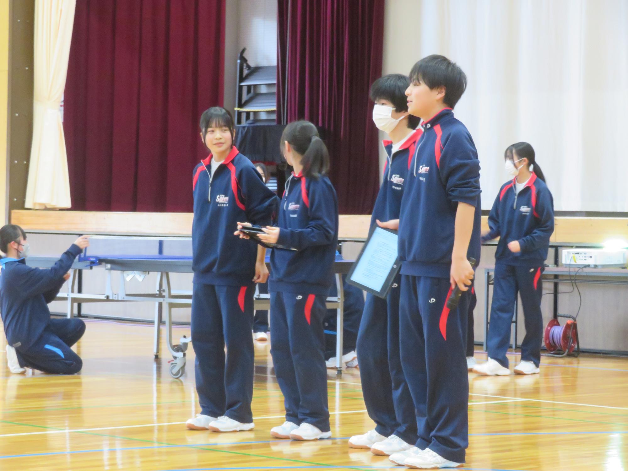 「ぜひ、わが部活動に!」部活動紹介 更新日:2026年04月19日 6時間目の生徒集会は1年生への部活動紹介でした。どの部活動も、わが部活動の楽しさを伝え、「少しでも多くの1年生に入部してほしい」とアイデア豊かに部活動紹介をしました。放課後は部活動体験が行われ、1年生は気になる部活動を参観し、今後、部活動を決めていきます。部活動で仲間とともに活動しながら、自らを鍛えていってほしいと願います。