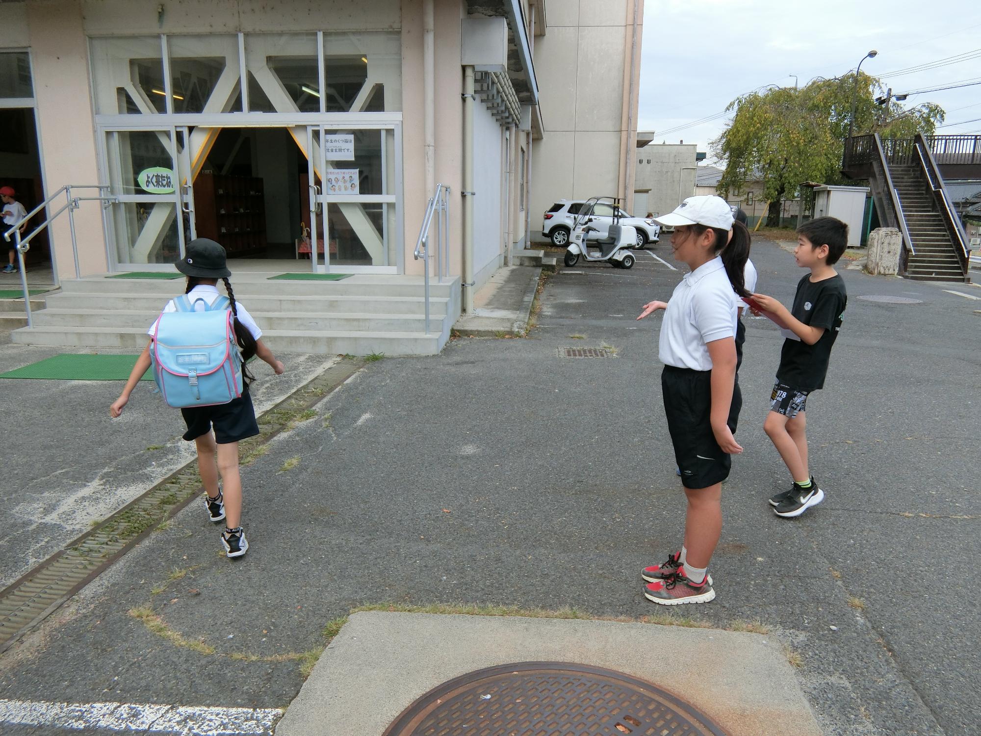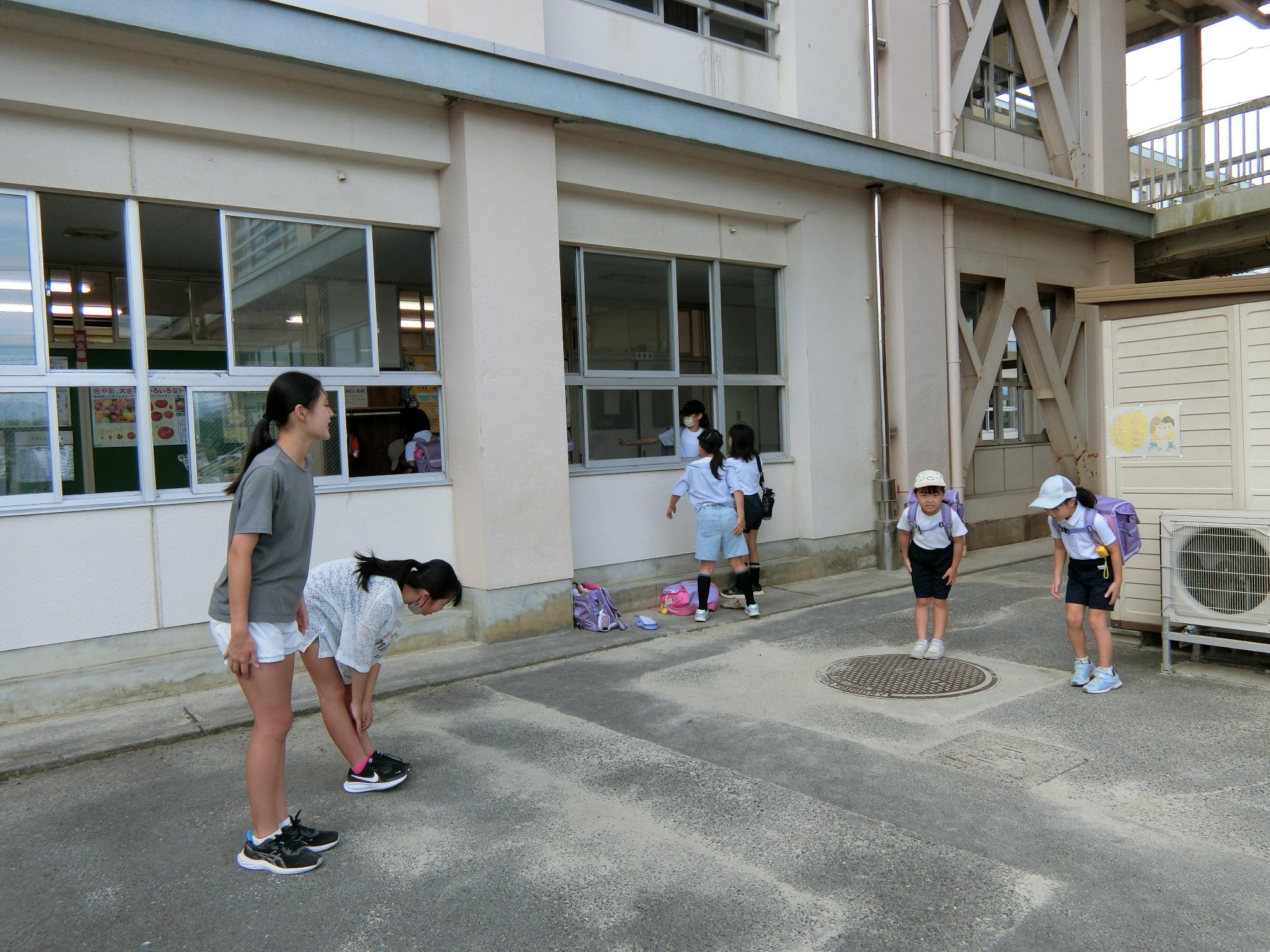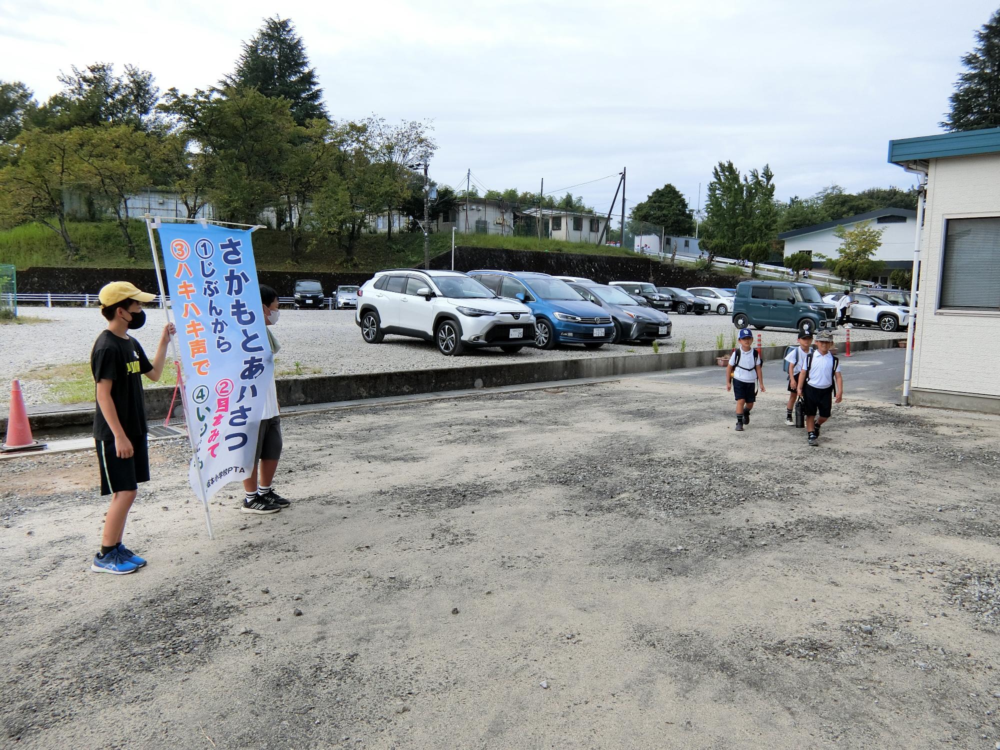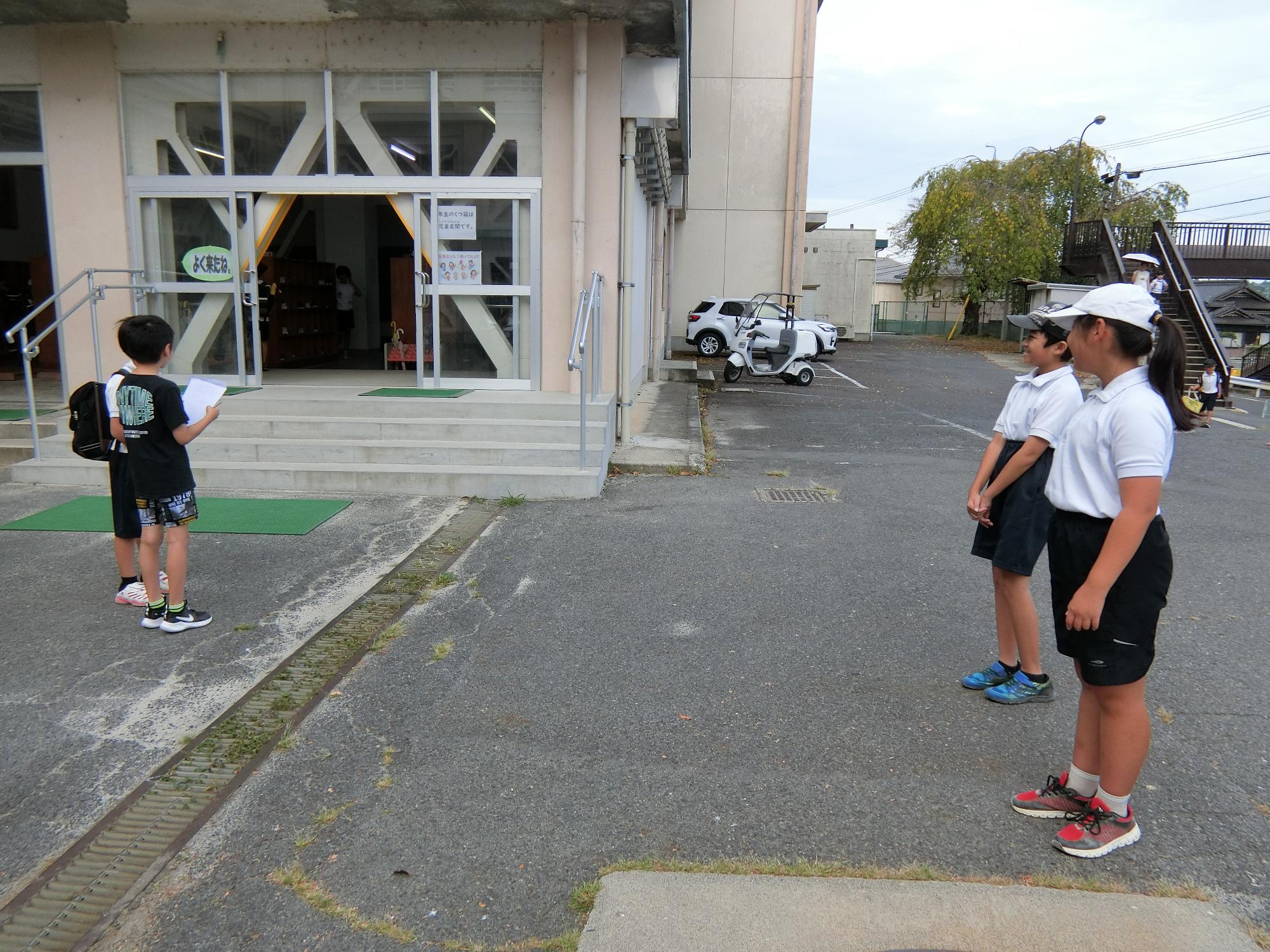 夏休み明け挨拶活動 更新日:2025年09月05日 9月4日、夏休み明け最初の挨拶活動を行いました。3期の挨拶のめあては「先がけ挨拶」です。児童会役員の皆さんを中心に、自分から挨拶する児童が増えつつあります。地域でも自分から挨拶できるといいです。