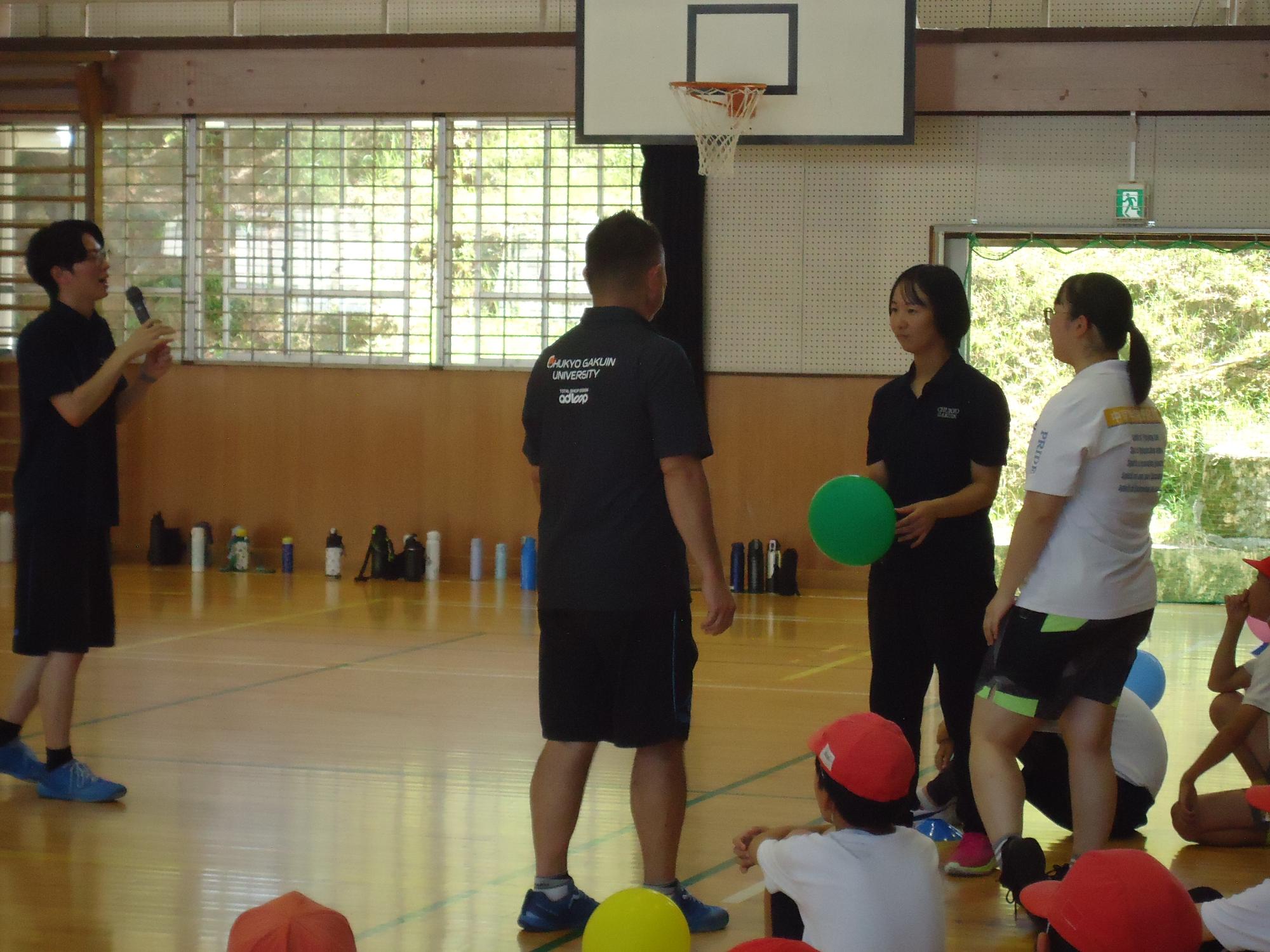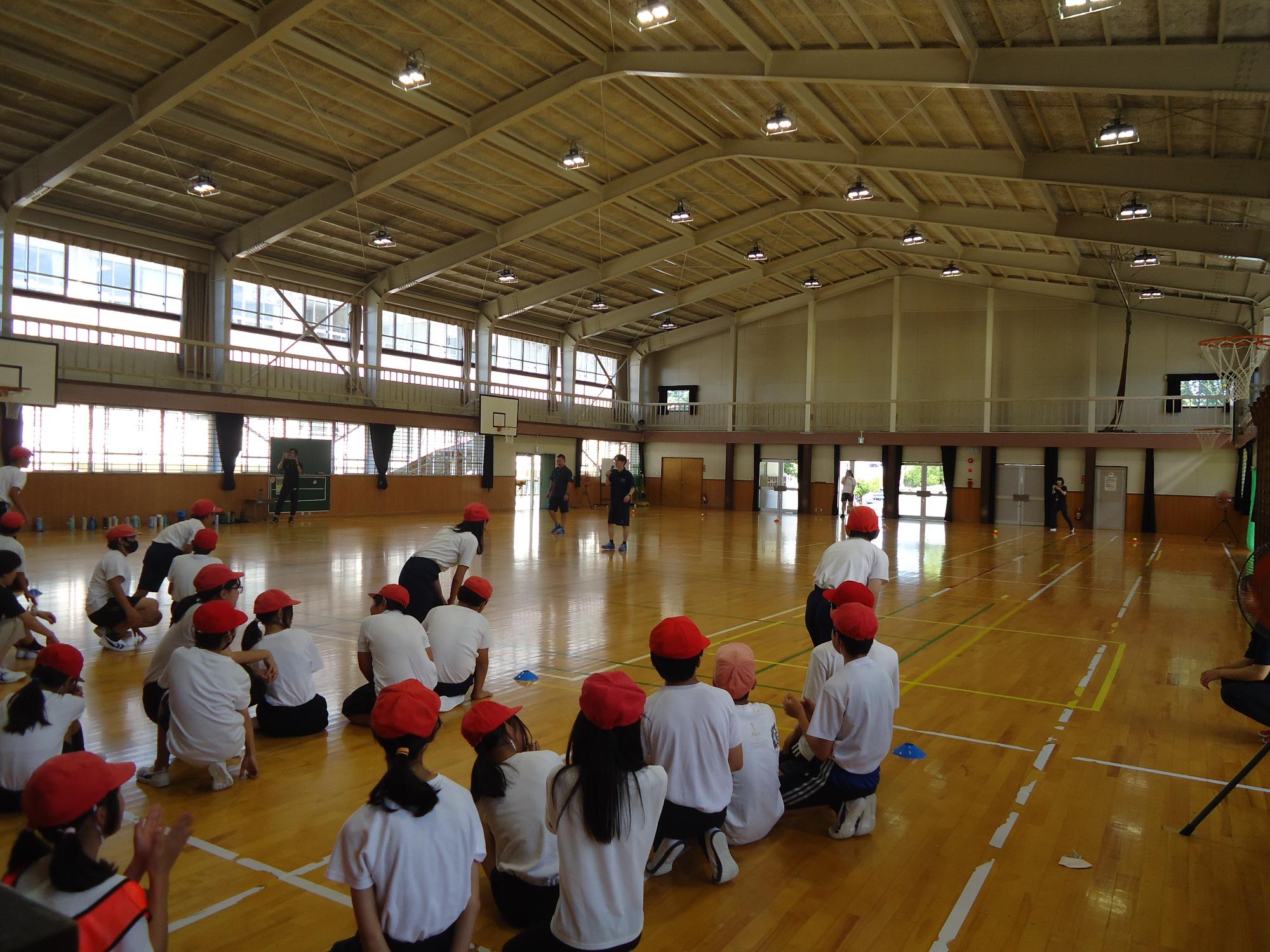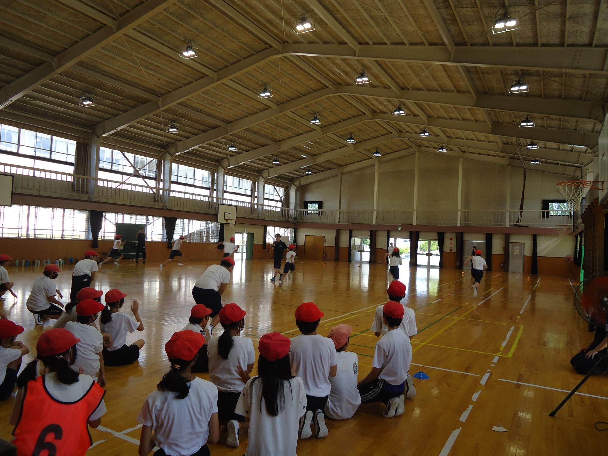 ACPを行いました 更新日:2025年09月18日 16日、6年生を対象にACPの授業を行いました。中京学院大学の学生さん4名が講師となり、楽しく運動することを目的として授業を行いました。楽しみながら体力向上につなげられることに期待しています。