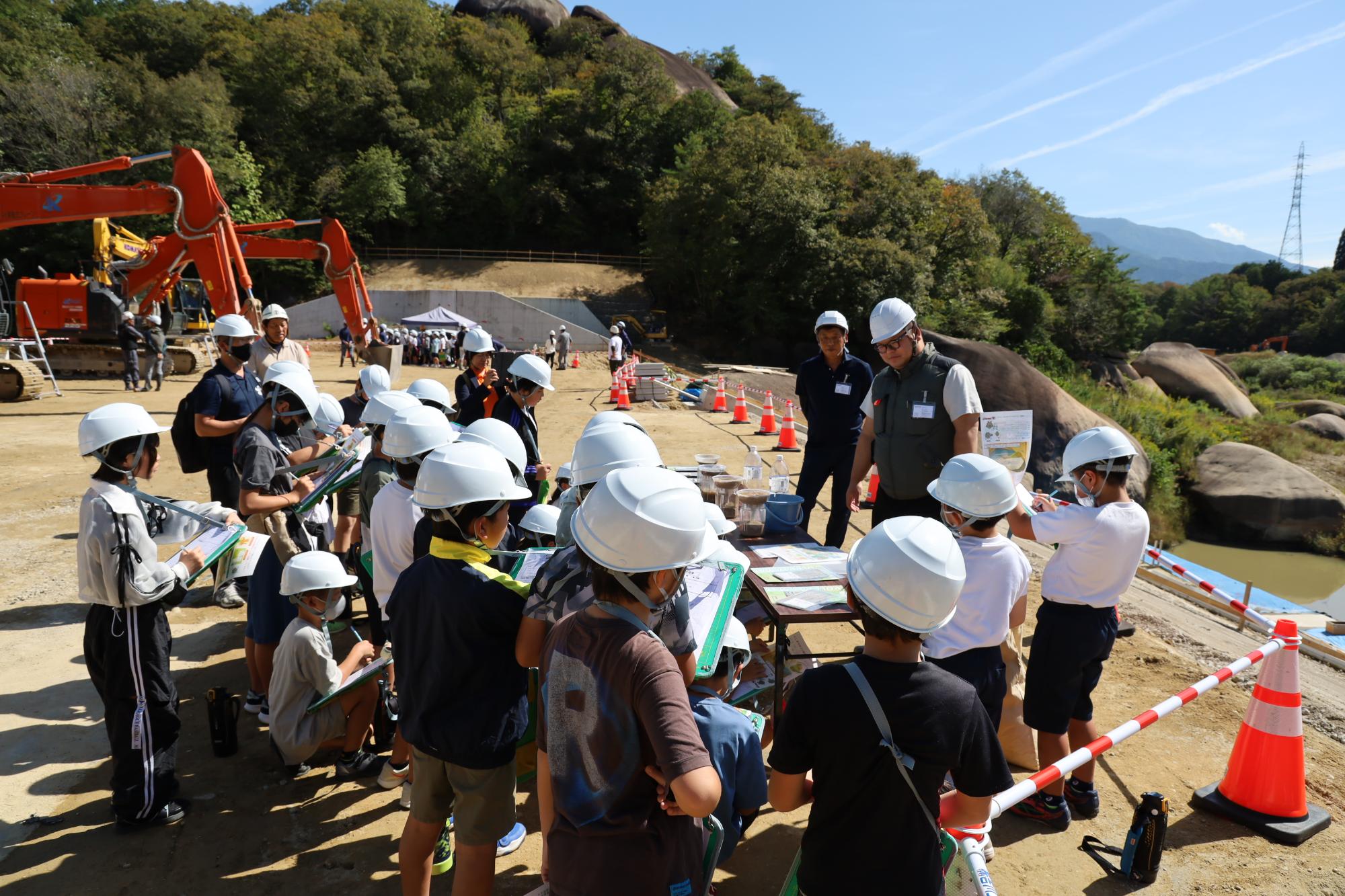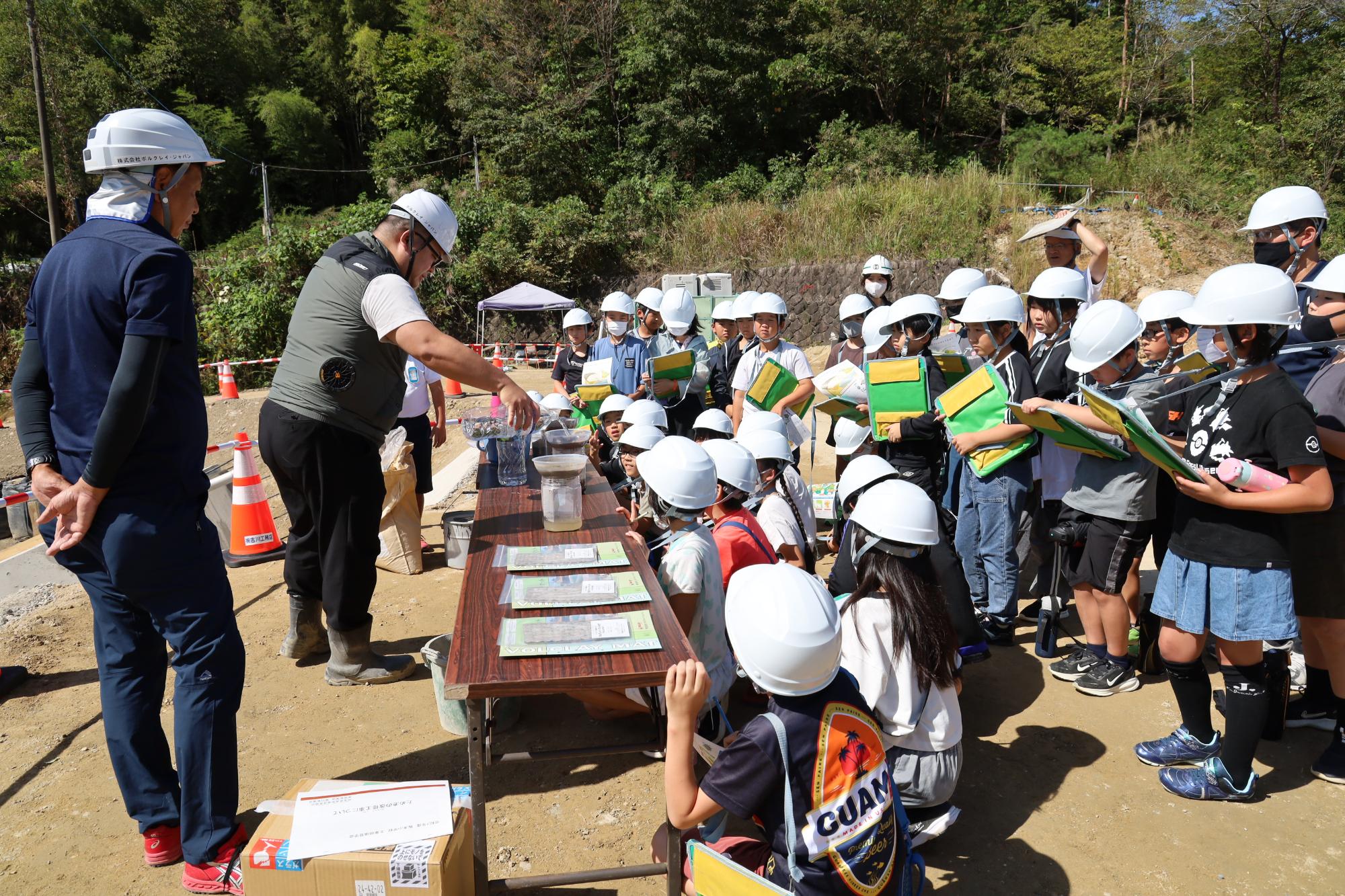 4年生ため池見学 更新日:2025年10月09日 10月2日に4年生が「新溜池」の改修工事の様子を見学に行きました。ため池の役割や水のないため池の底の様子、重機の説明など貴重な機会となりました。岐阜県恵那農林事務所の皆様、中津川市役所農林部の皆様にはお世話になりました。ありがとうございました。