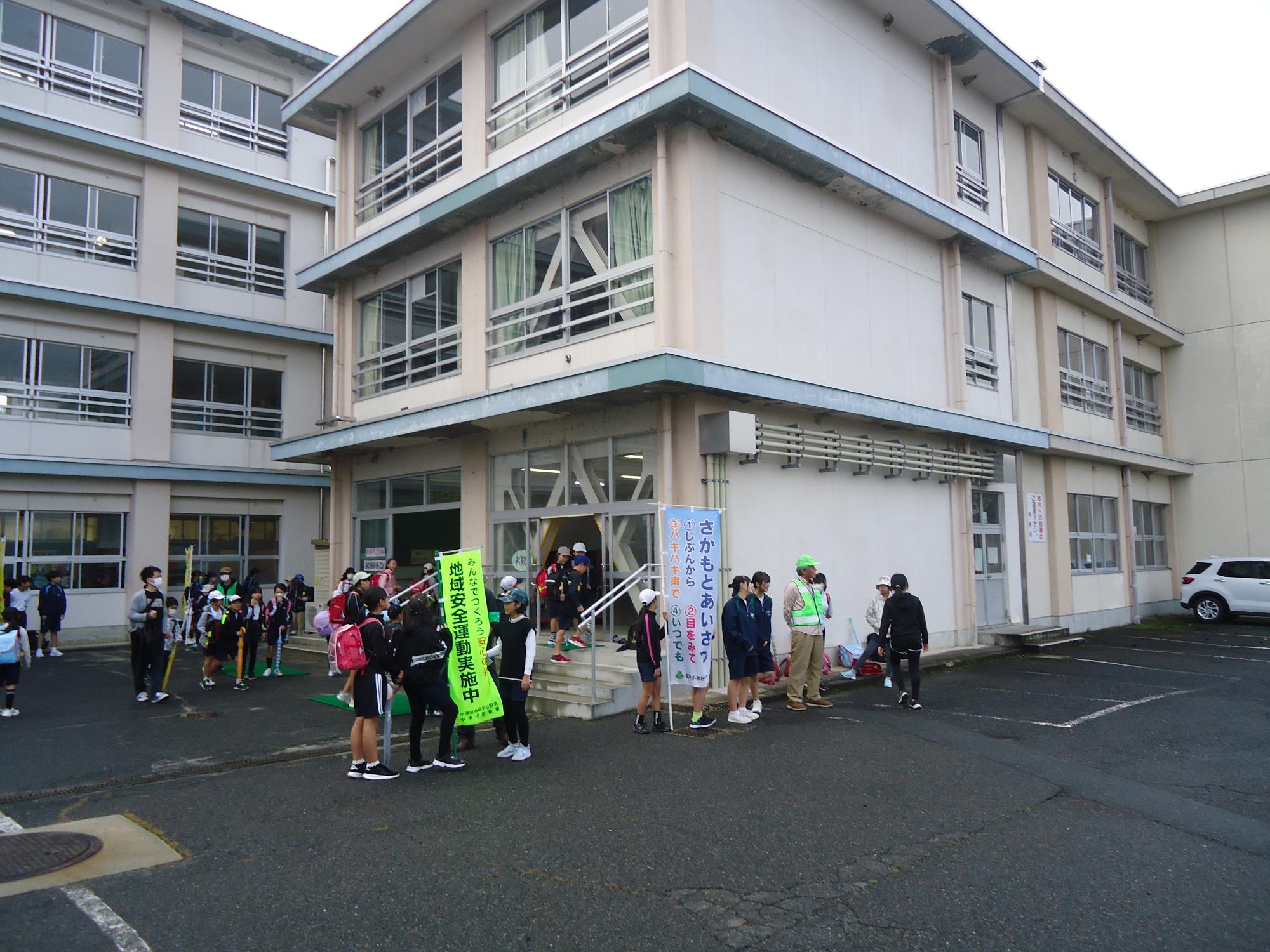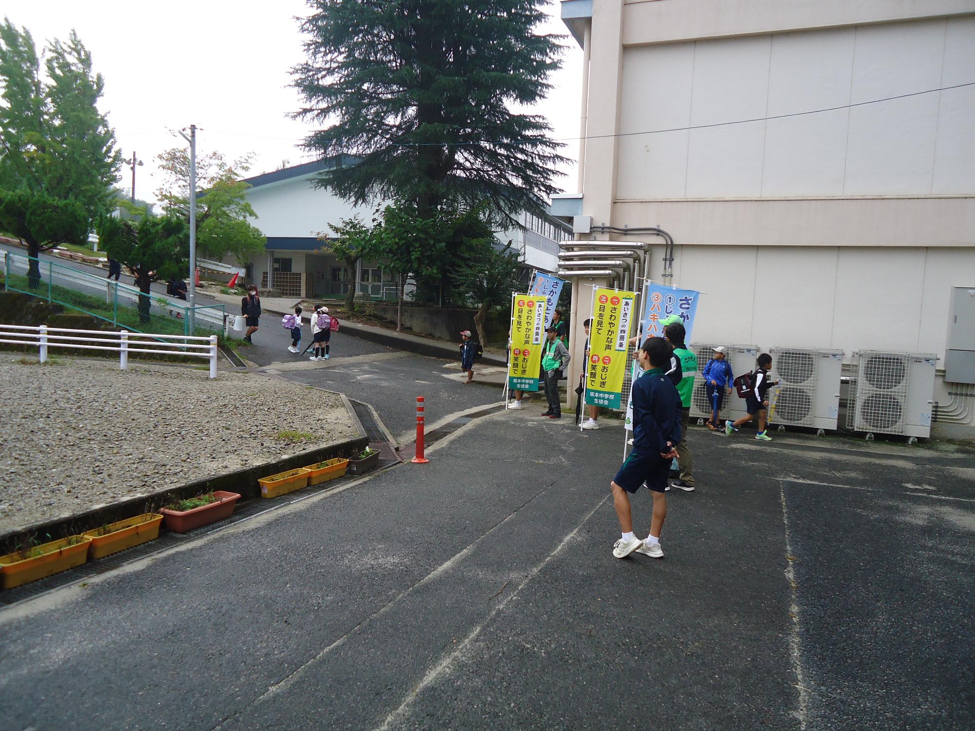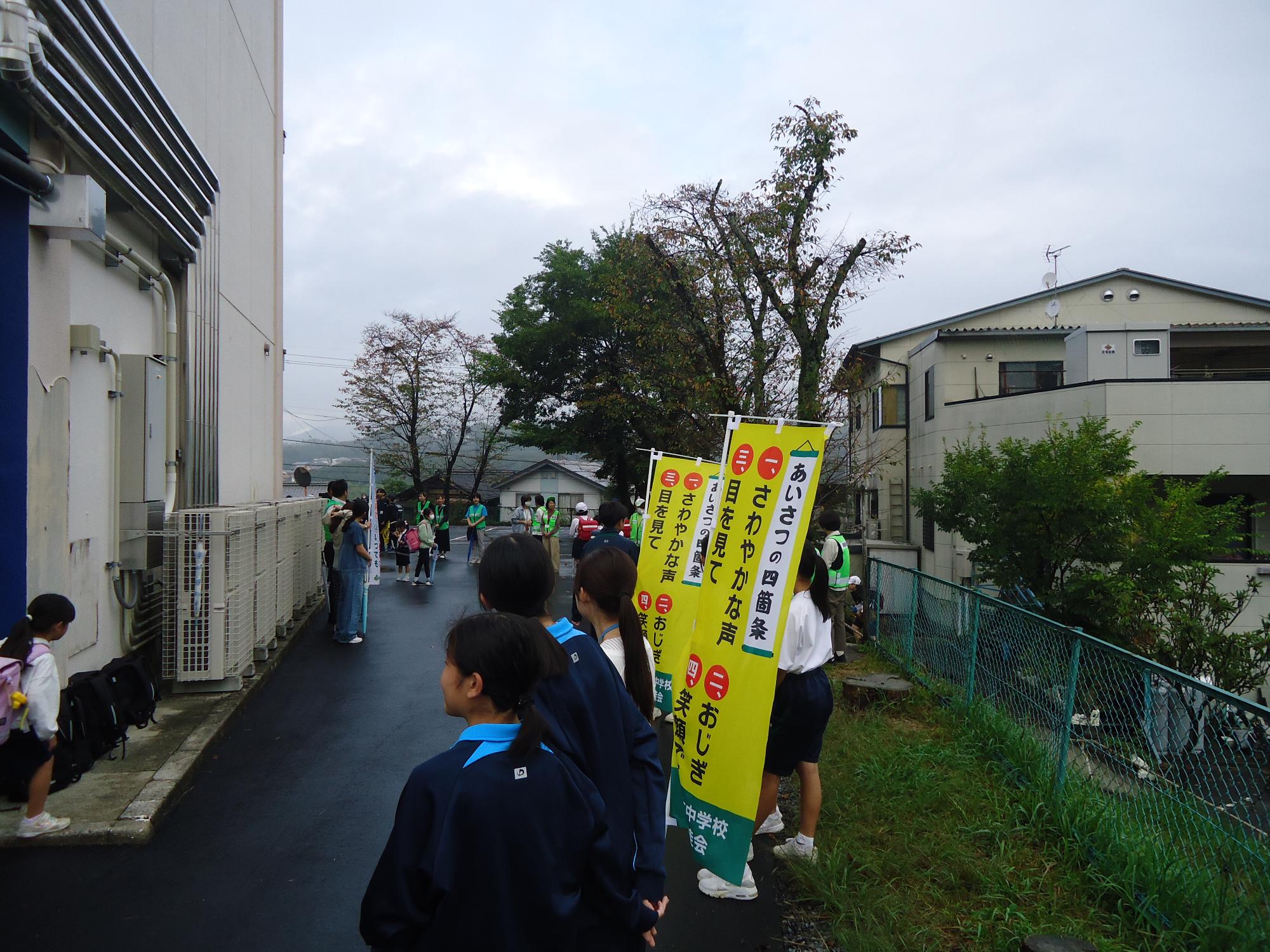 地域や警察の方と挨拶活動 更新日:2025年10月16日 今朝、地域、警察署、PTA役員の皆様と一緒に、小中合同挨拶活動を行いました。中津川警察署長さん、生活安全課、地域安全指導員、PTA役員の皆様にはお世話になりありがとうございました。児童会役員だけでなく、多くの子が挨拶に立ち盛り上げてくれました。