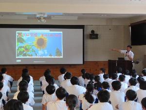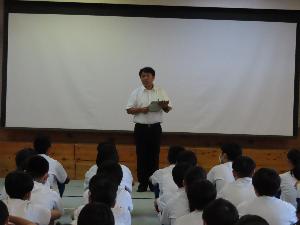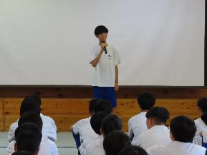 夏休み明け集会 更新日:2025年08月28日 8月28日(木曜日)、夏休みが明けて生徒が登校しました。久しぶりに会う仲間と笑顔で話をする生徒の顔が見られました。全校で夏休み明け集会を行い、生徒会長、生徒指導主事、学校長の話がありましたが、落ち着いて話を聞くことができました。また、夏休み中に活躍した生徒の表彰を行い、がんばりをたたえ合いました。