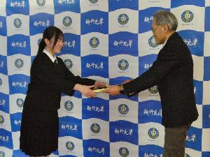 9年間皆勤賞(美濃坂下ライオンズクラブ様より) 更新日:2026年03月05日 3月5日(木曜日)、美濃坂下ライオンズクラブ様より、3名の生徒が「9年間皆勤賞」を授与されました。心身ともに健康に過ごしてきた証であり、一日一日が積み重なったすばらしい記録です。