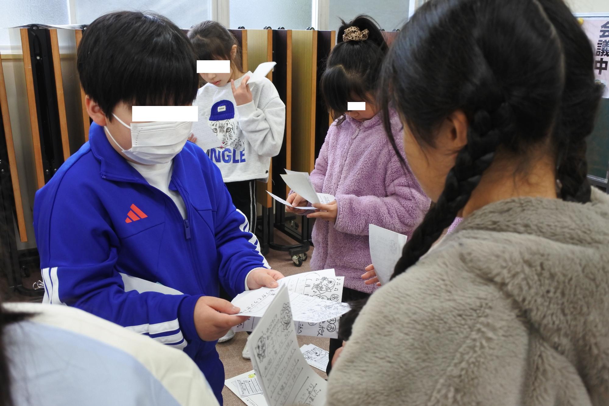 集会では、そのカードをお互いに渡し合いました。カードを受け取った子はもちろん、笑顔いっぱい。しかし、それだけではありません。渡した子も「喜んでもらえた!」という気持ちで、また笑顔になるのです。笑顔が笑顔を呼び、温かい雰囲気に包まれた時間となりました。