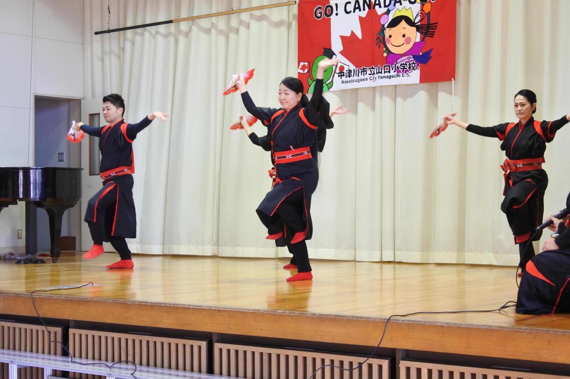 沖縄歌舞劇団「美(ちゅら)」の皆様による琉球舞踊の公演が、近日、本校体育館で行われます。この公演は、舞台上の舞踏家と子どもたちが一緒に踊る参加型の公演です。