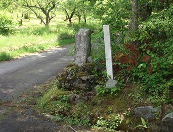 この道祖神は、通称「こでの木」といわれる、中山道から脇街道の苗木道への分岐点に、文化13(1816)年3月、藤四郎、長蔵両名により建立されたものです。男女別々の頭部をもち、肩から足元にかけて一体となっています。 |